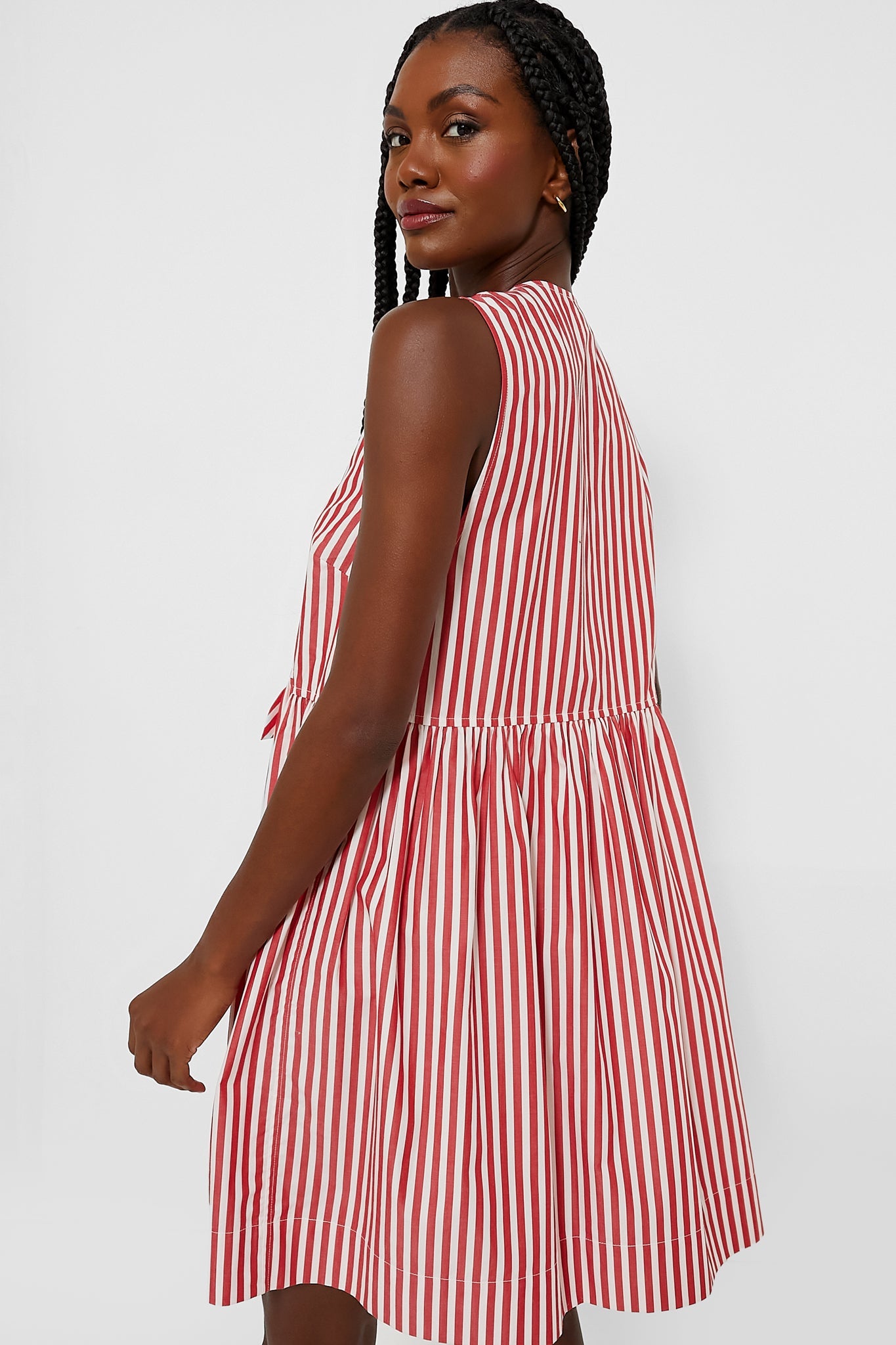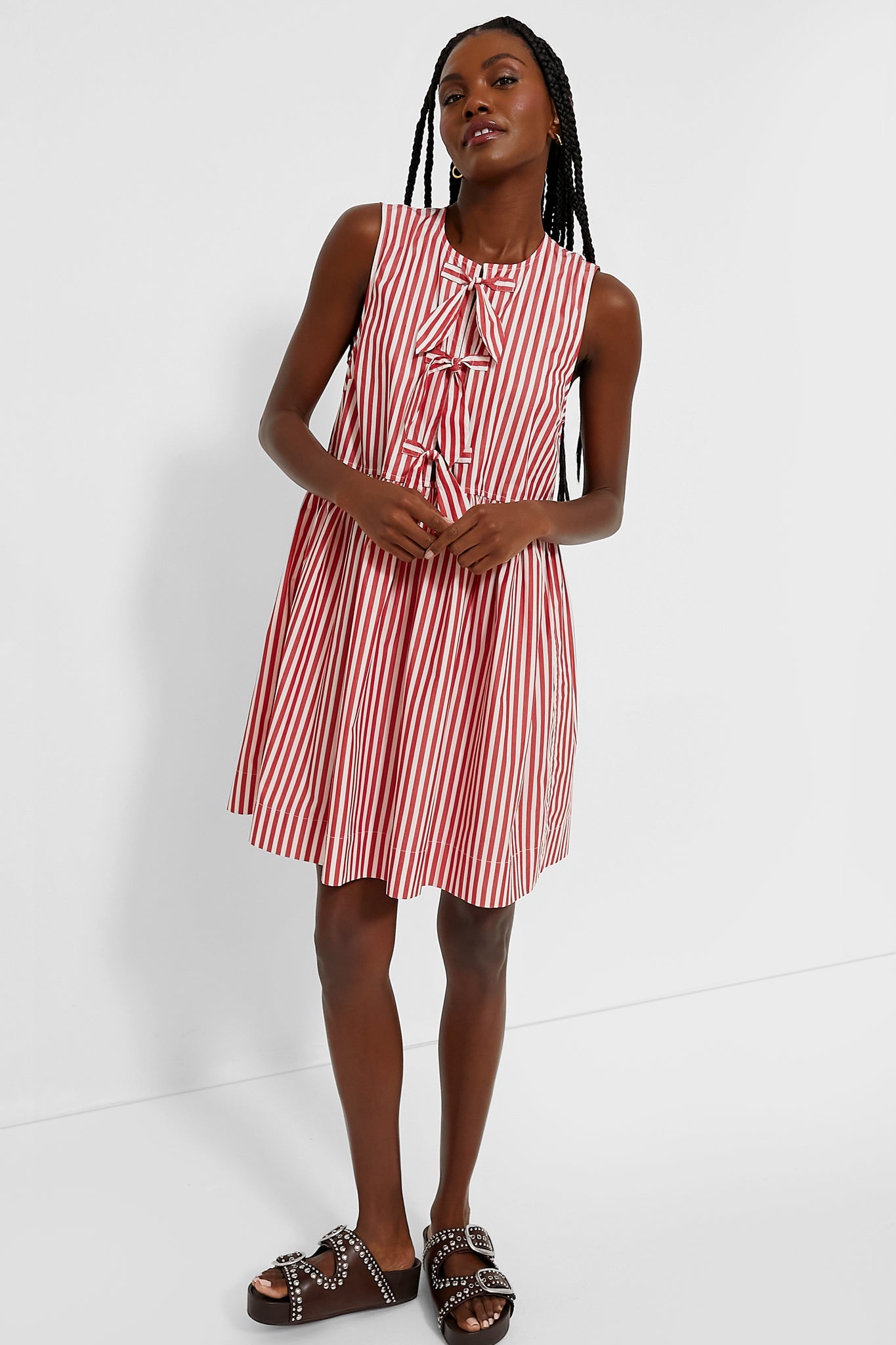 Barbados Cherry Stripe Cotton Mini Bow Tie Dress
