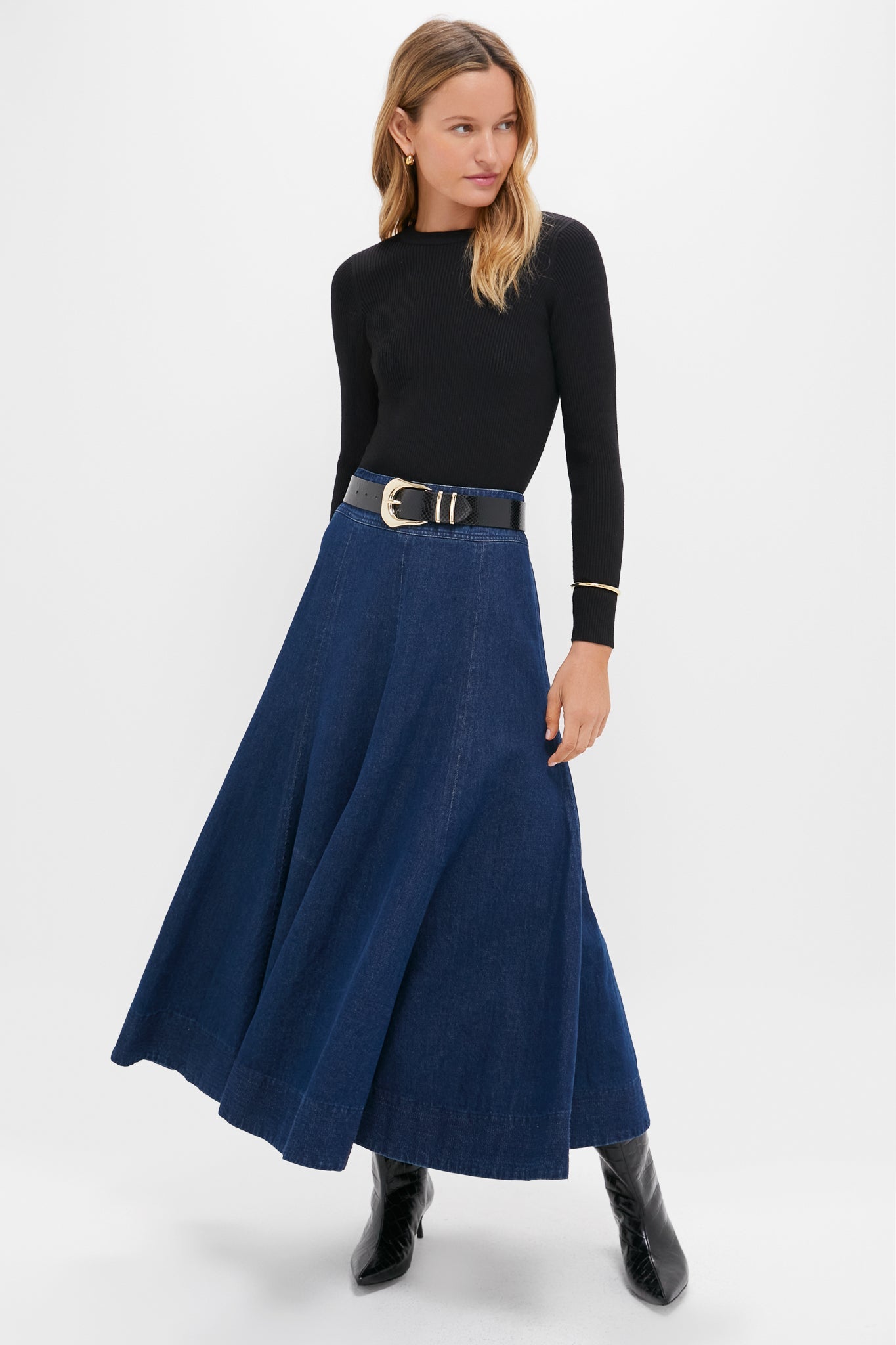 A do-it-all silhouette, the Black Alden Crewneck plays just as well as a top as it does a base layer on chilly days. Skimming the body enough to style under a sweater or a blazer, or tuck into a silk skirt or denim, this ribbed classic will quickly become a hero style in your closet.