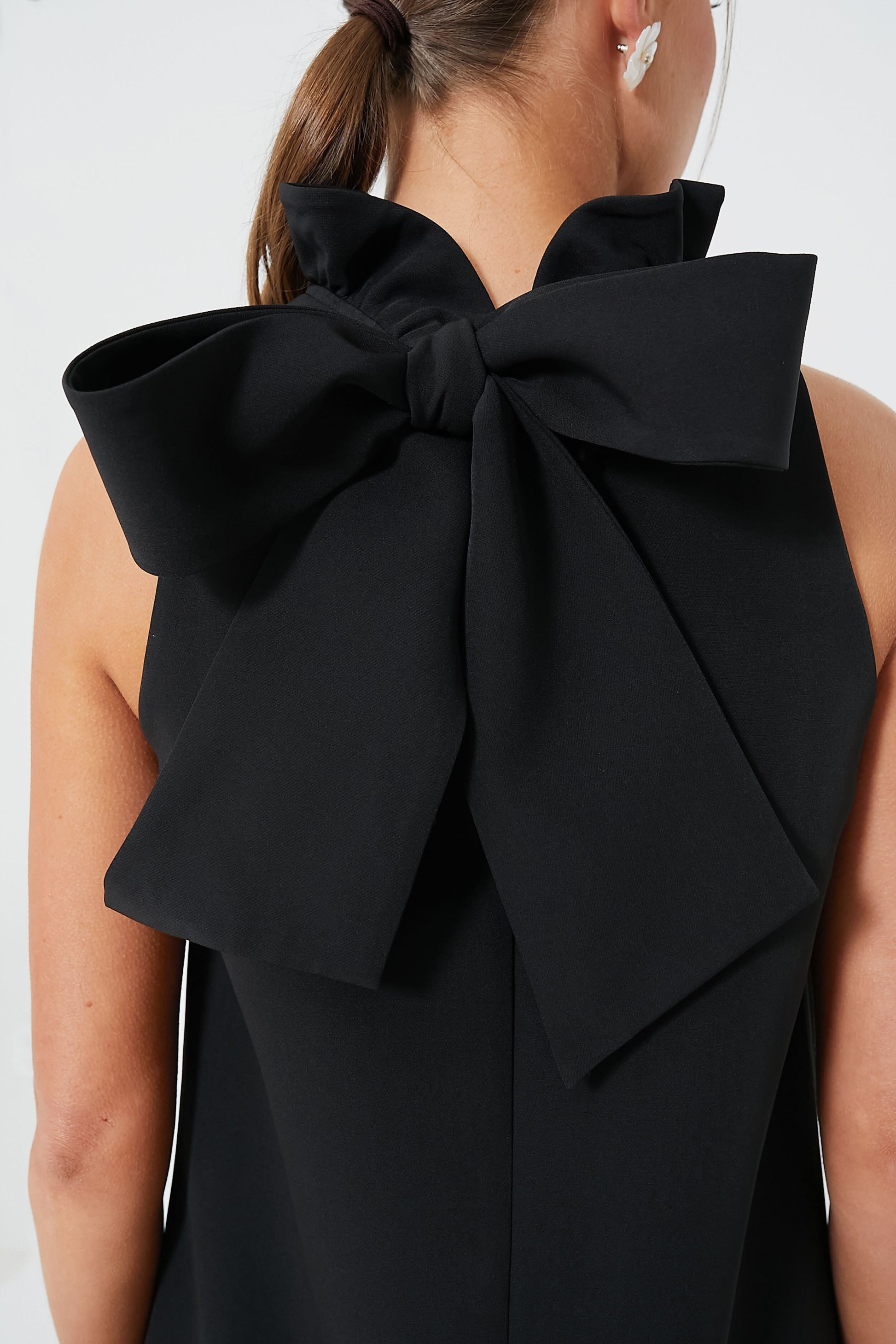 Tried-and-true, this mighty mini is a best seller thoughtfully made just for you. Our design team spent months testing our signature stand collar to get it just right, making sure it looks good from dusk 'til dawn. Updated in a beautiful stretch crepe fabric, this swing shape mini dress reminds us of our favorite mod dresses from the 60s and 70s. Ready for al fresco dinners with family, cocktail parties with friends, and every social event on your calendar, the occasions are endless for this bow tie-back dress!