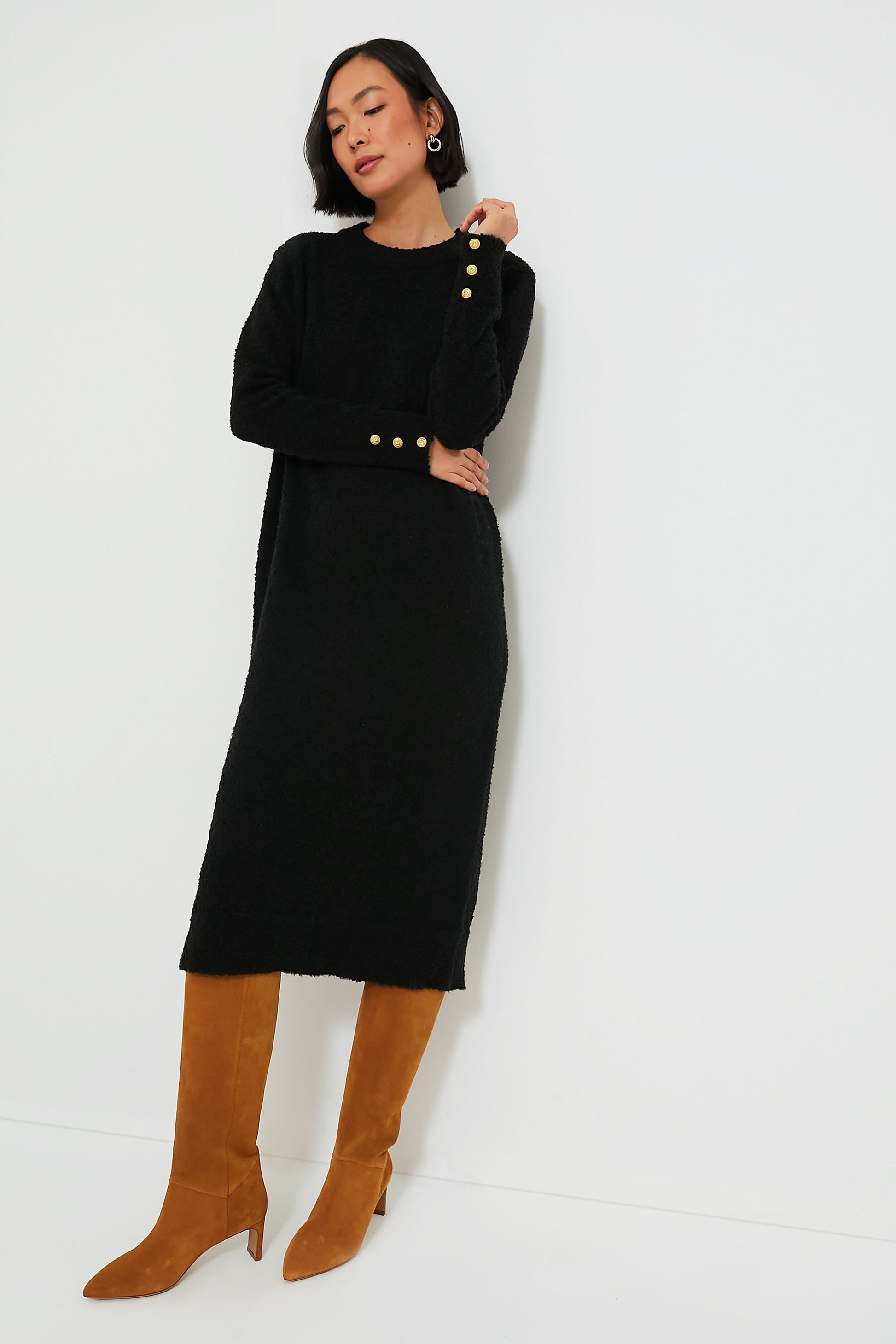 As cozy as a sweater as it is a chic dress, the Black Speckled Knit Nelle Dress will take you from clocking hours at the office to holiday cocktail parties with a quick switch of accessories. Crafted from a subtlety sparkled knit with gold buttons detailed on the cuffs, this minimalistic maxi is ready to be dressed up or down. With a relaxed fit that is as comfortable as it is flattering, we are wearing this with boots and gold accessories for a timeless chic look.