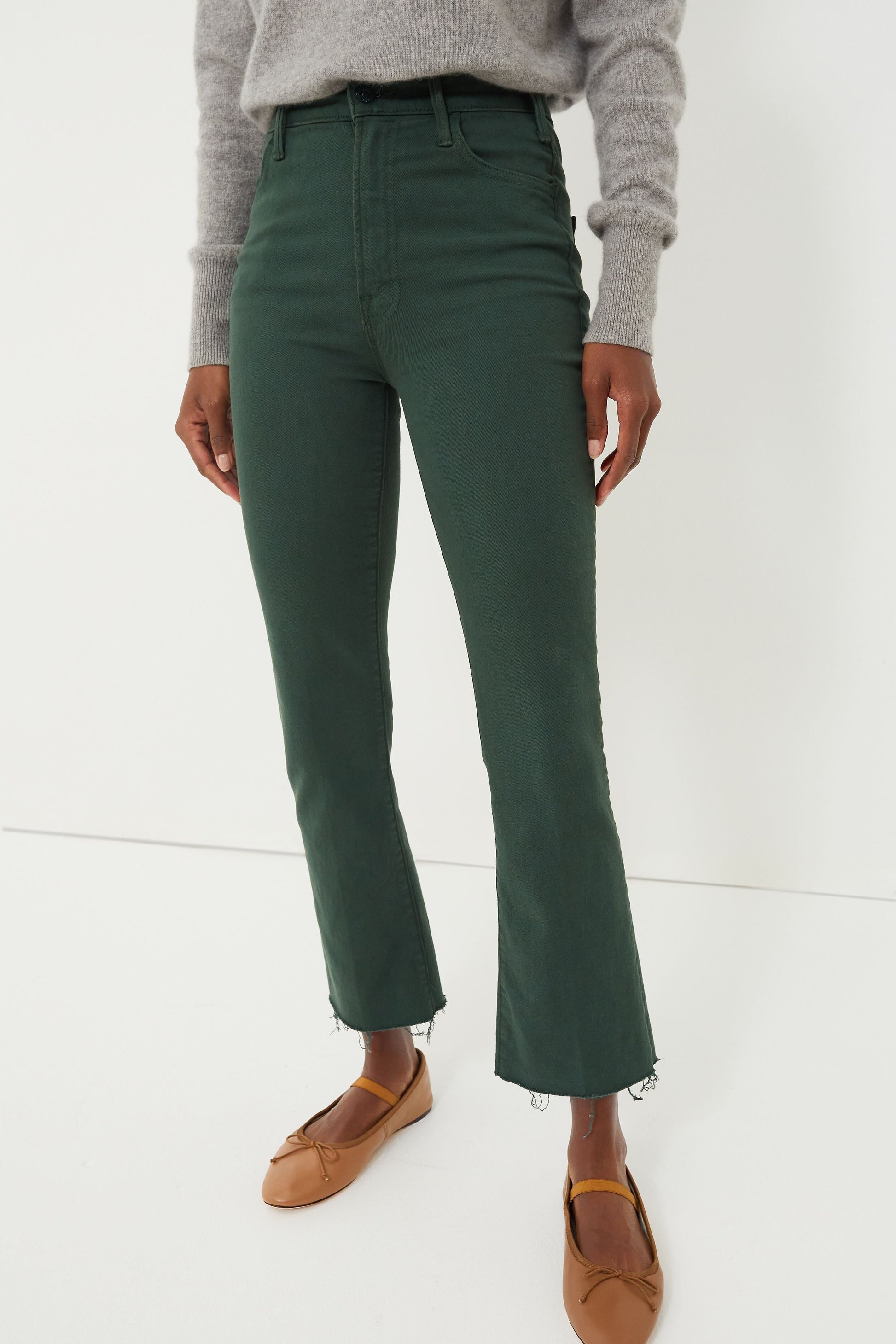 One of the brand's most classic and best-selling styles here in a fresh new colorway, the Black Forest The Hustler Ankle Fray is well-loved for a reason. These green kick flares have a touch of stretch for a comfortable fit and a flattering high rise — not to mention that cropped ankle length inseam that is made for pairing with heels and booties alike. Style these beautiful bottoms with cozy sweaters, tailored blazers, and graphic tees for a cool-girl chic look that's perfect for any occasion.