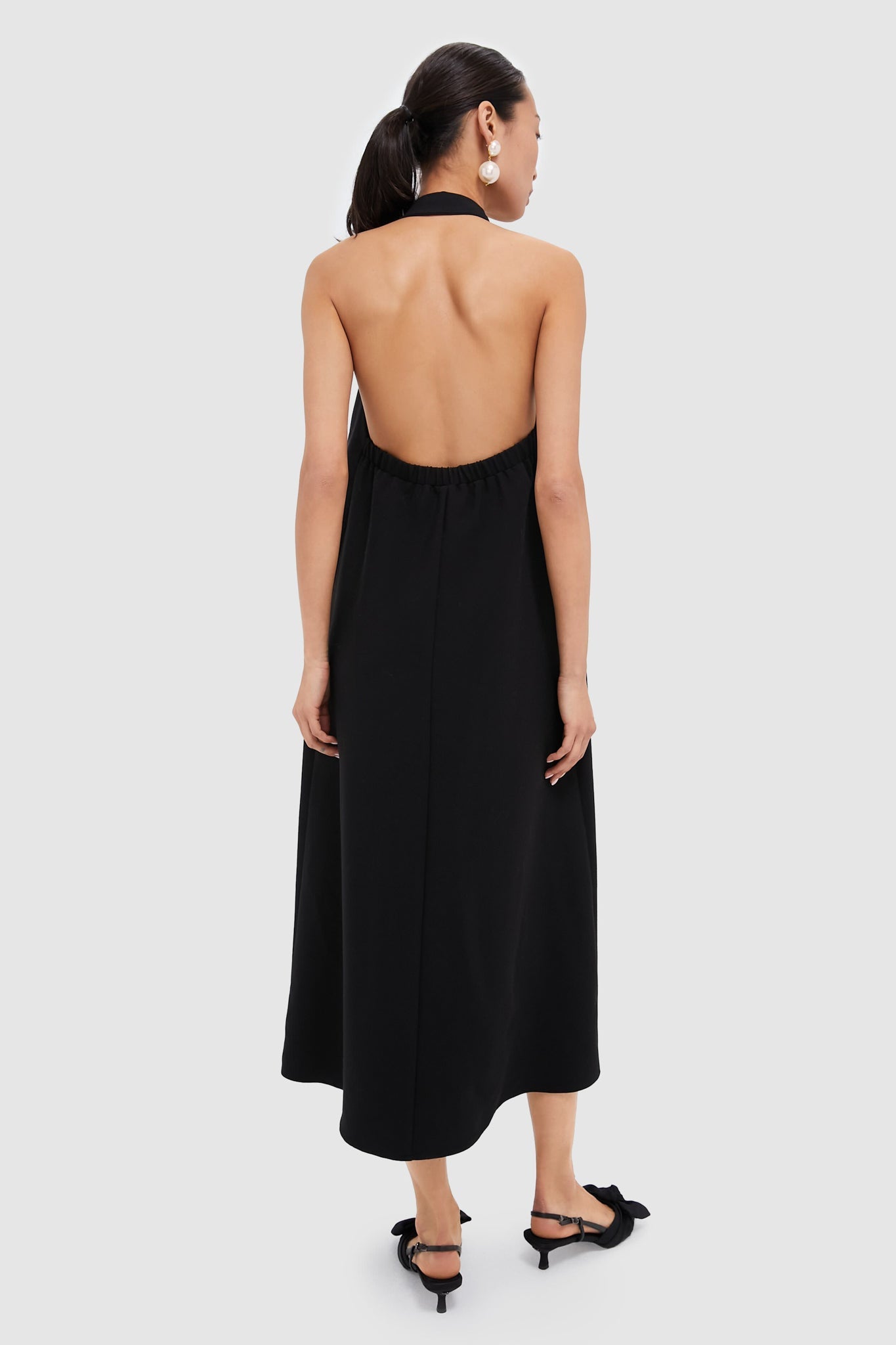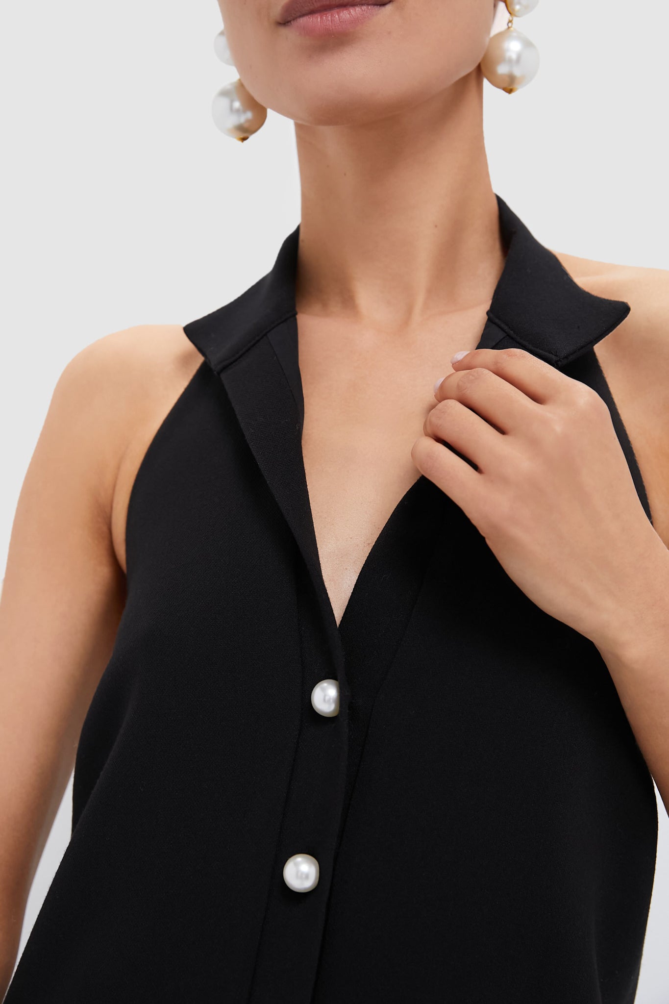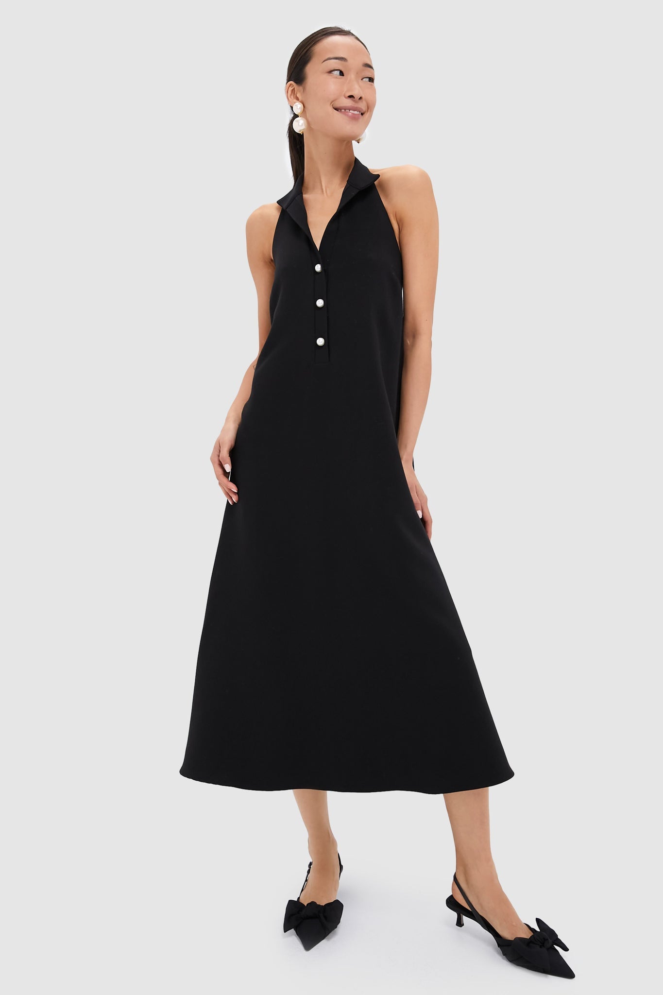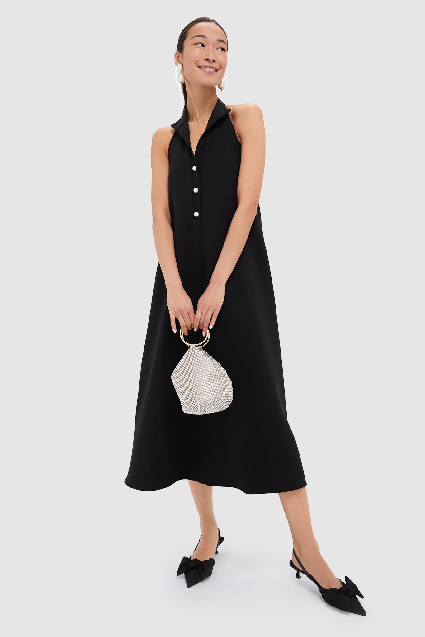 A shape made to flatter all silhouettes, this easy midi has an elegant stand collar with a halter neckline, and gorgeous pearl buttons which instantly make us love it more. Simply add heels and a statement making clutch for a jaw-dropping look that'll have you ready in five minutes flat.