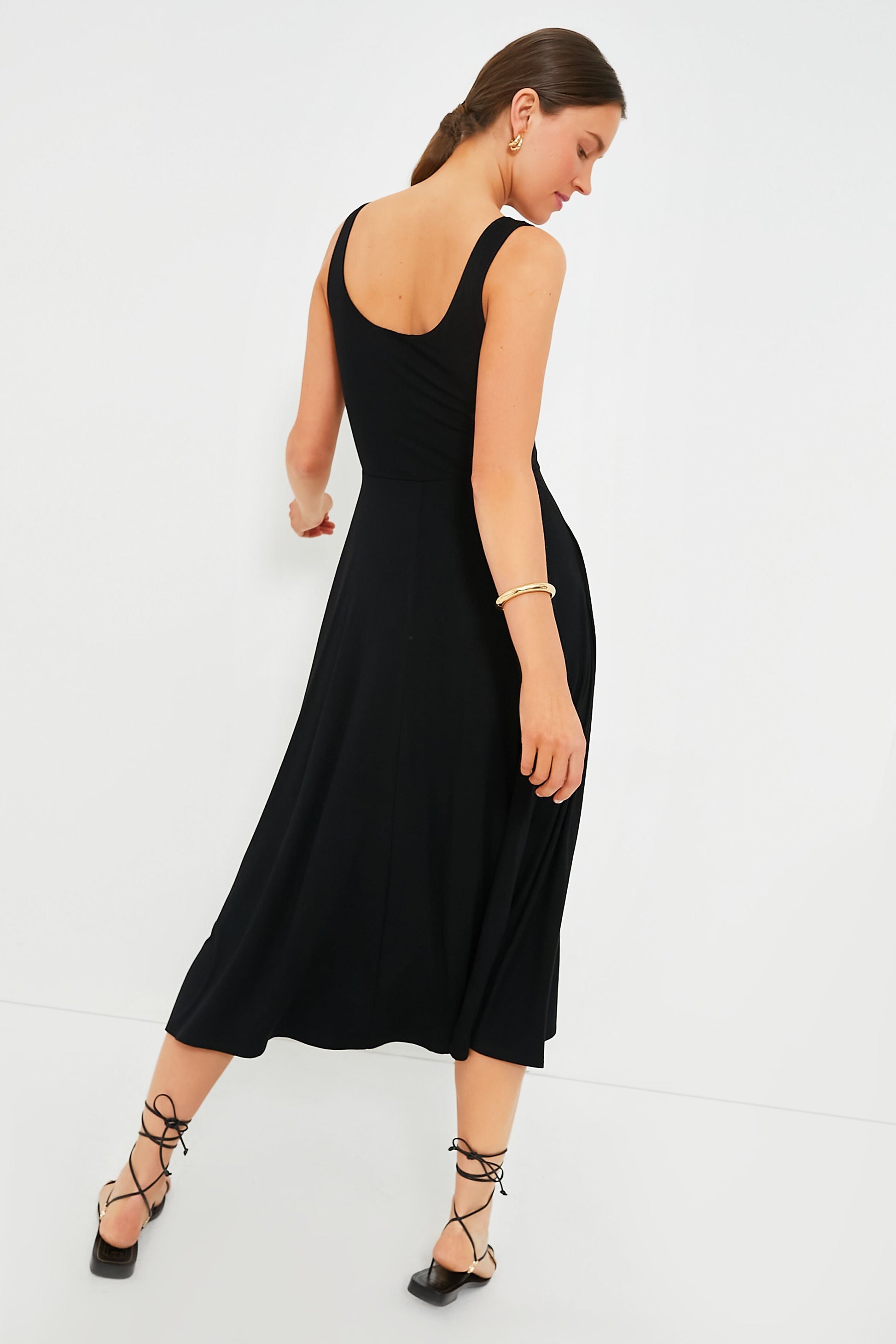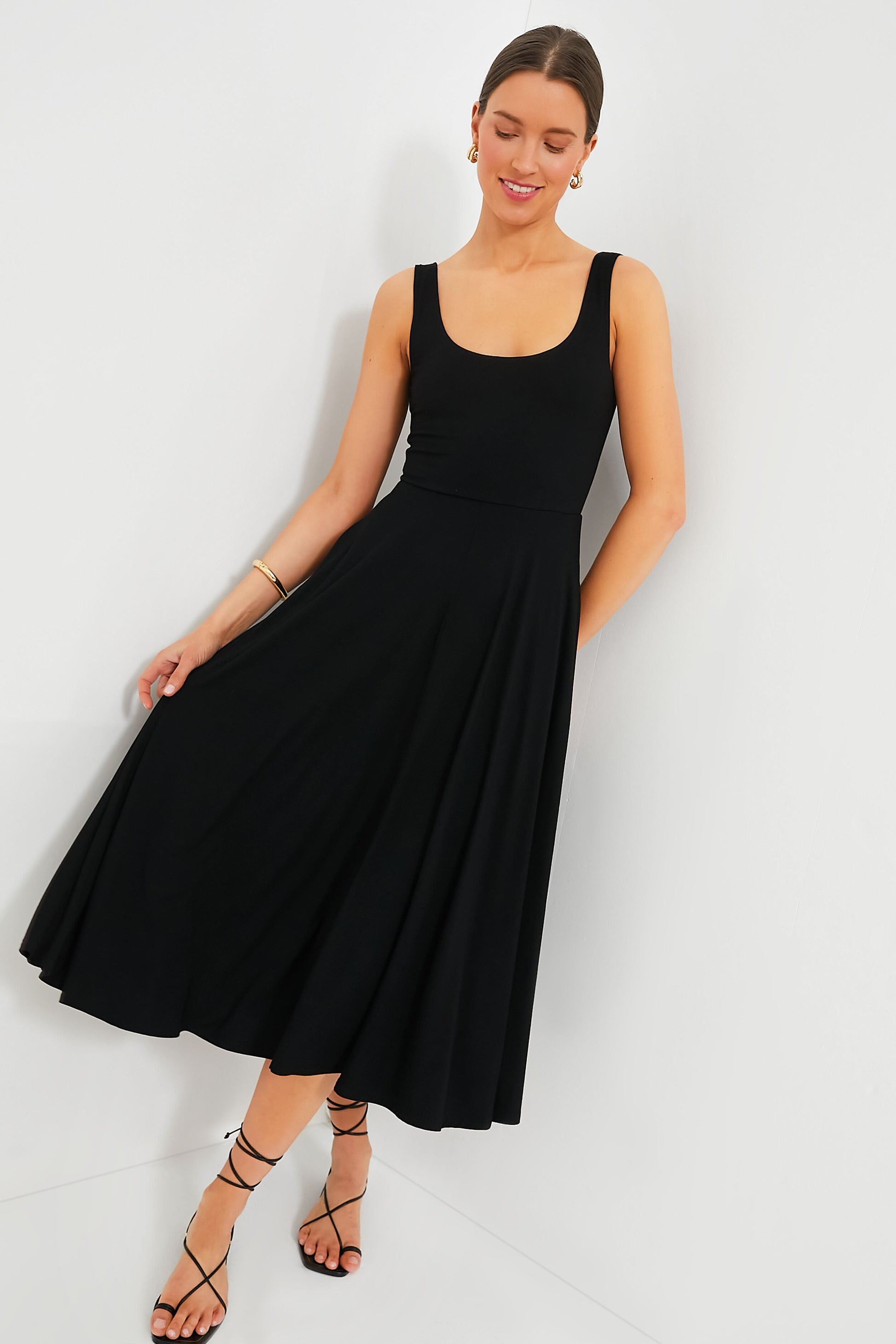 The Black Leon Dress should be in every woman's closet. Made with a slim-fitting bodice and full A-line skirt, this chic midi is oh-so-elegant. Pair with pearls and heels for an elevated ensemble, or with ballet flats and a shoulder bag.