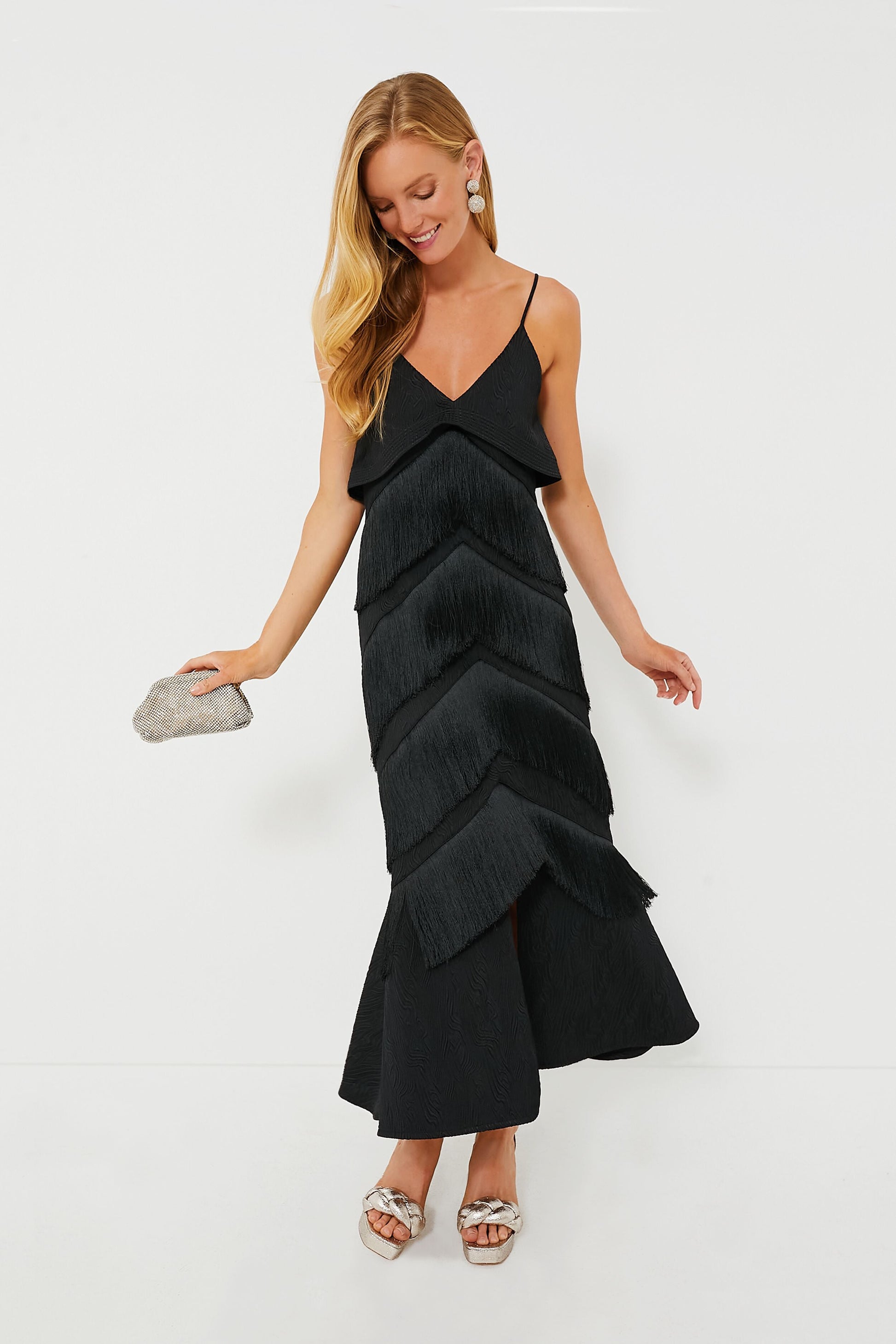 The Nadinee Dress is the epitome of timeless charm and style. Boasting a fit to flare silhouette, this midi features a textured fabric and A-line fringe details cascading gracefully, lending to a beautiful movement. The front slit adds a stylish element while still maintaining a sophisticated look for formal events, evening galas, or romantic occasions. Pair it with minimal jewelry for a classic, refined look, or add statement gold jewelry and a clutch to steal the spotlight.