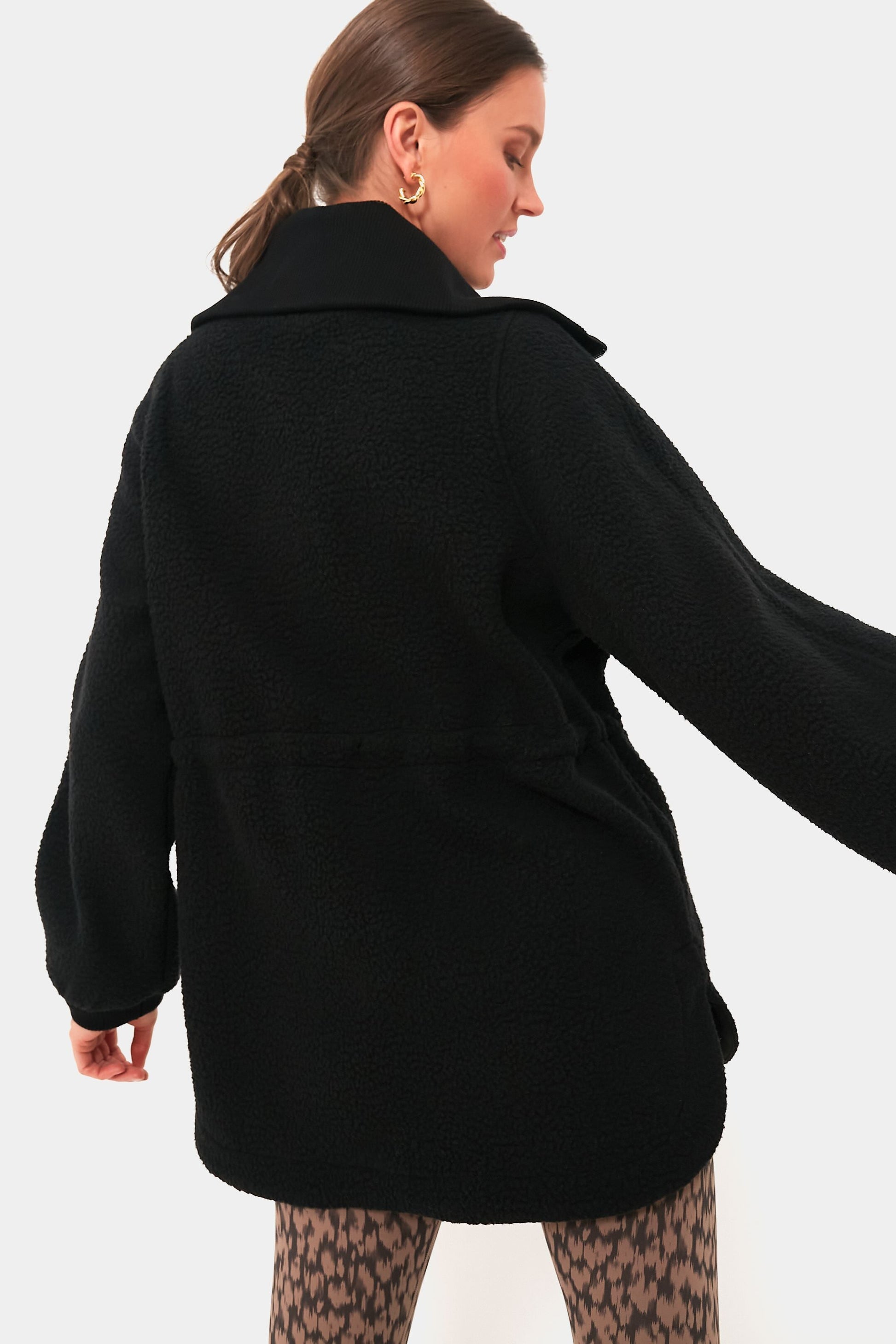 Meet the Black Parnel Half Zip Fleece: the ultimate in Alpine loungewear, effortlessly designed for layering over your base layers. Made from Varley's soft and insulating Plush Borg Fleece, this half-zip pullover is longline and oversized. Its adjustable toggle waist allows for a customized fit, complemented by the elegance of a sateen-trimmed half-zip and ribbed cuffs. Pair with leggings and boots for the ultimate cozy ensemble!