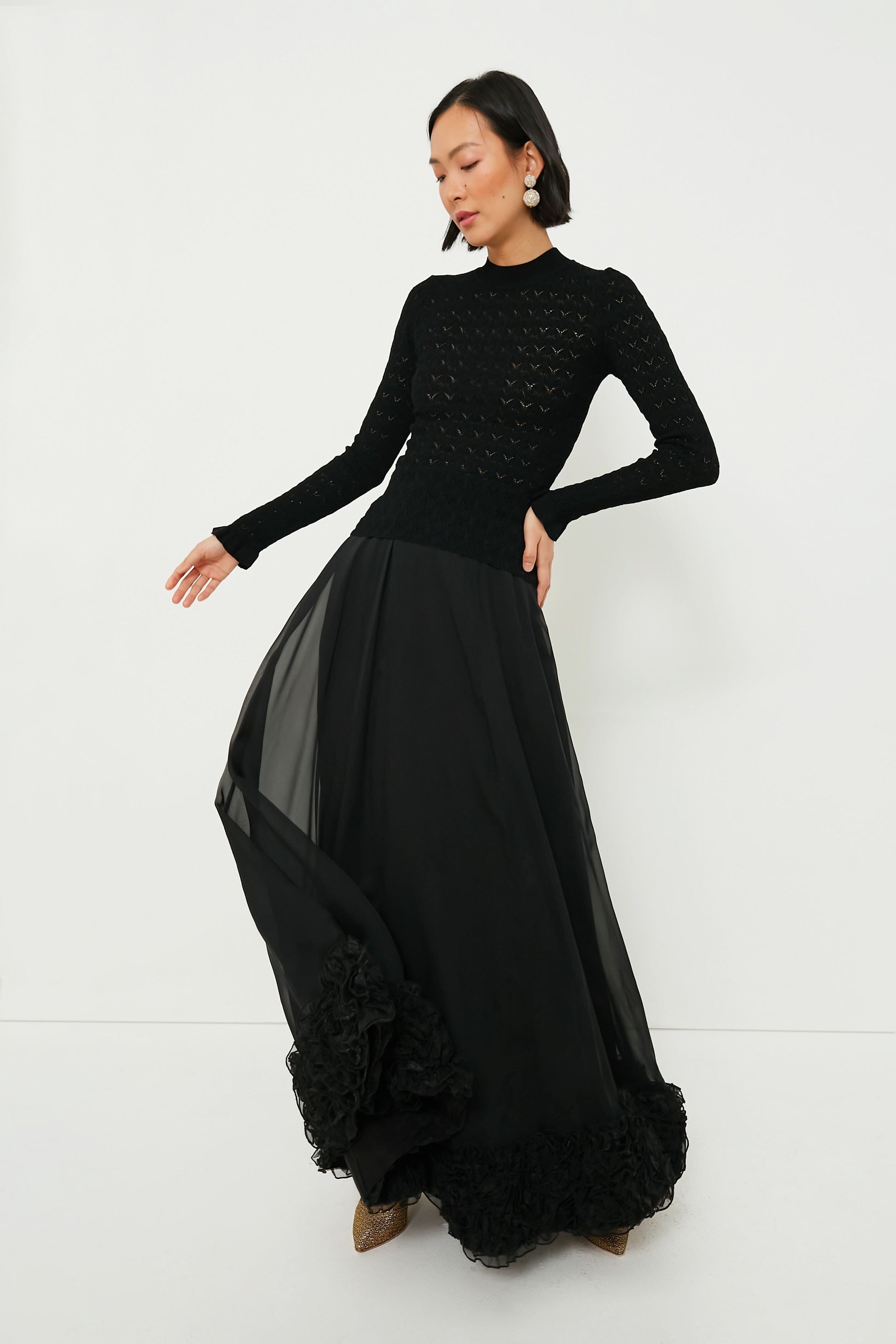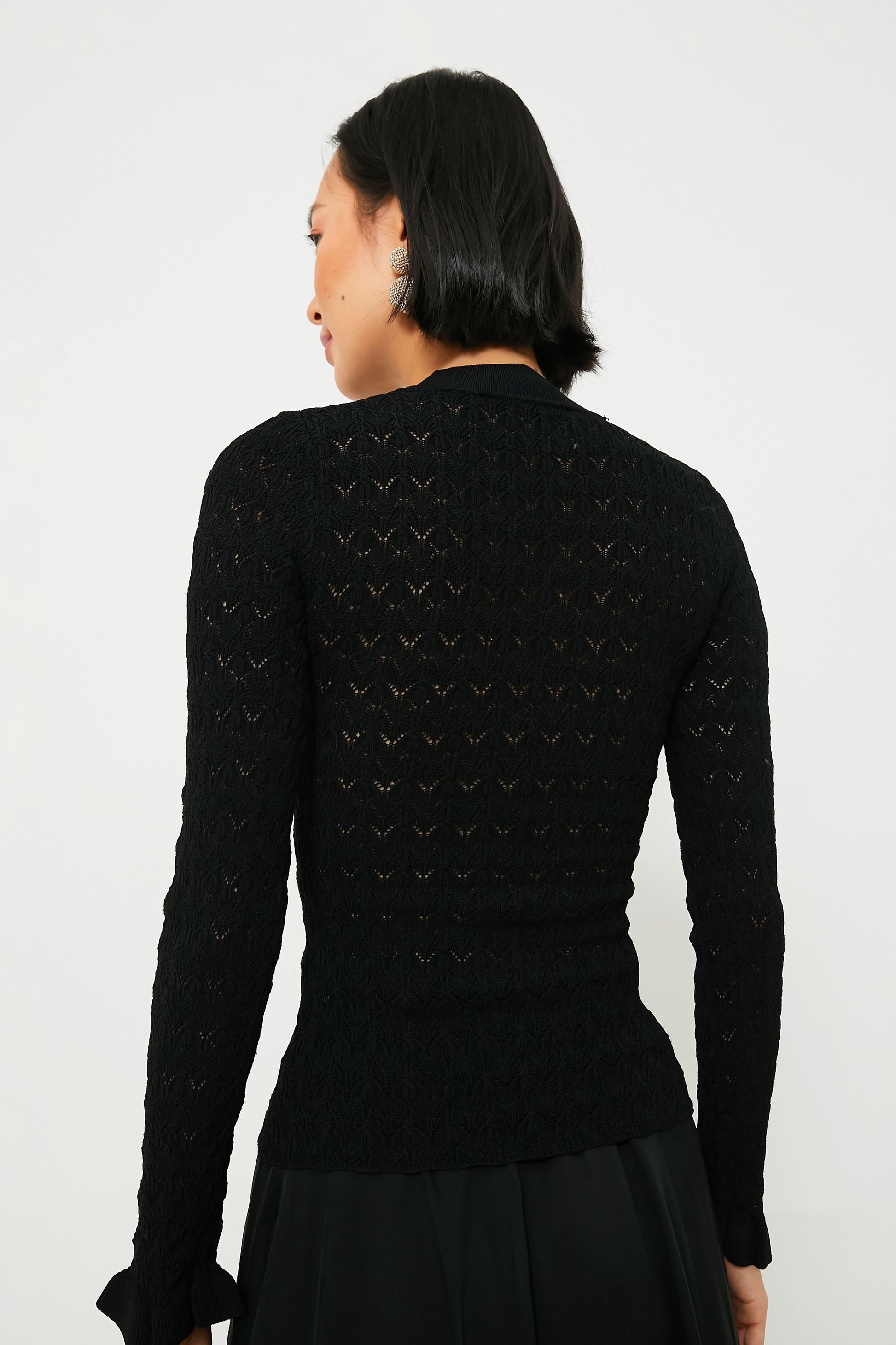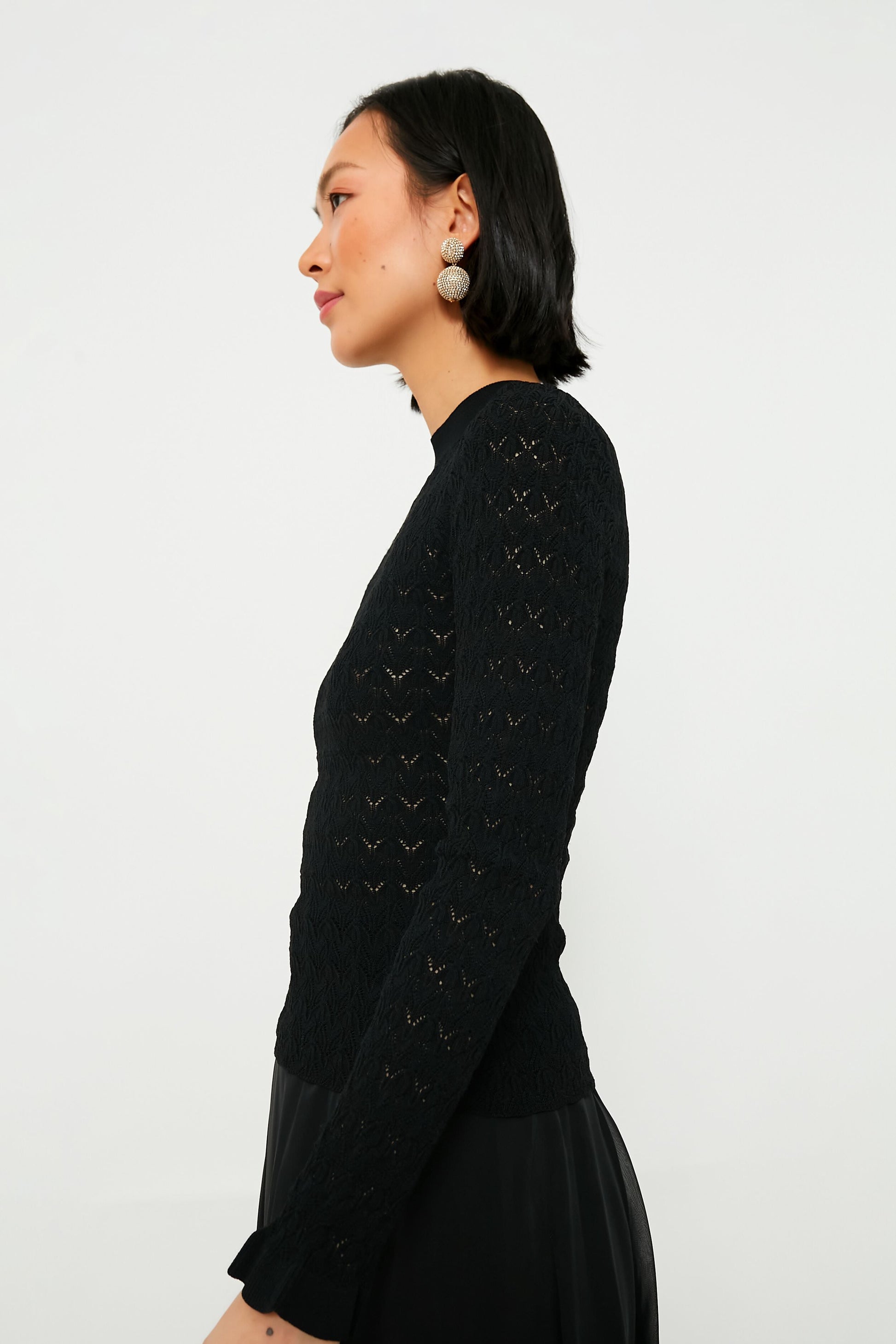 The Black Rue Fine Knit Gauge High Neck Sweater is perfect for wearing on its own or layering under sweaters and jackets. Complete with a high neckline, ruffle cuffs, and a slightly sheer knit design, this top is delicate and feminine. Pair with a mini skirt and boots or with denim and flats for the perfect balletic outfit.