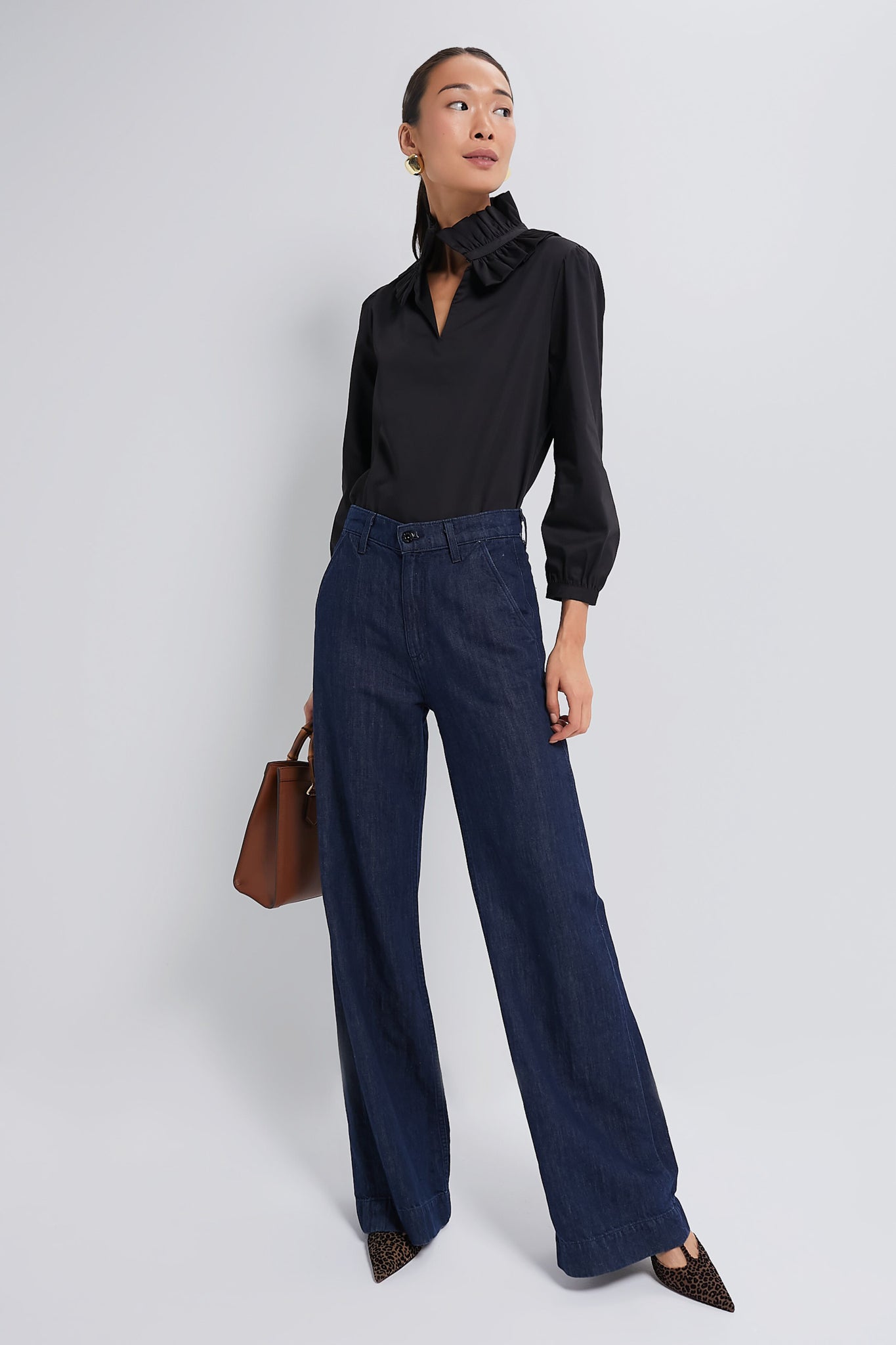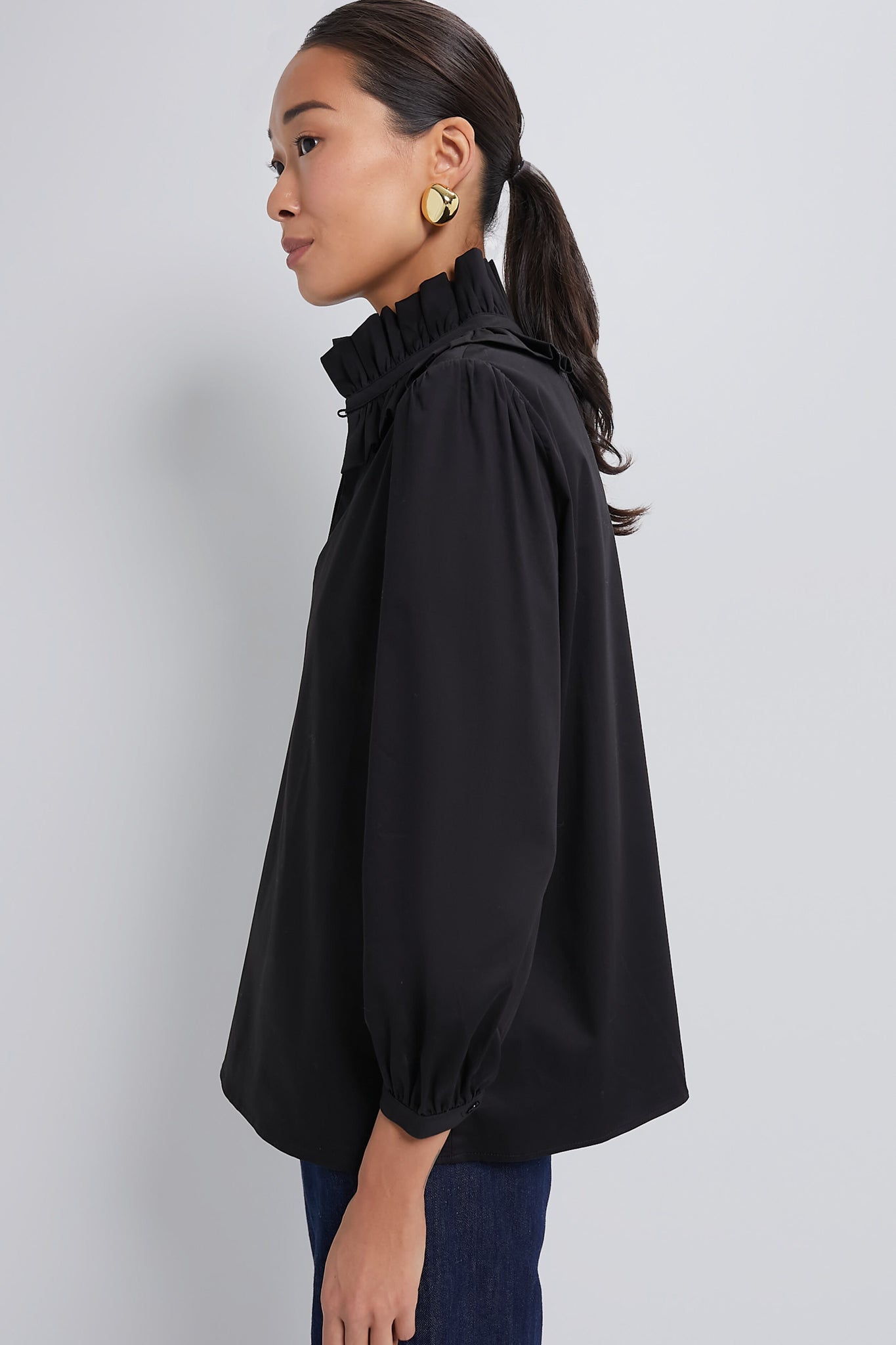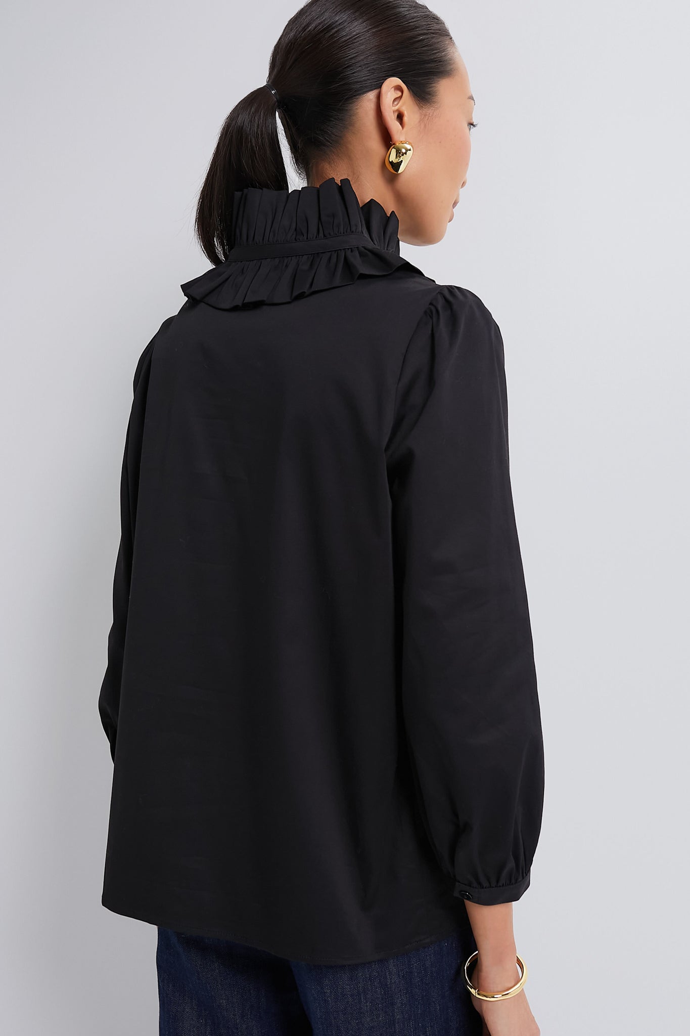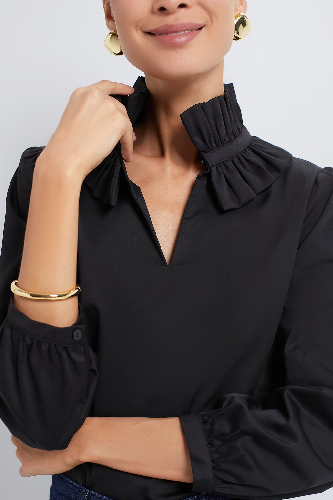 The Black Ruffle Neck Bouvier Blouse is the perfect combination of femininity and sophistication. Equally appropriate at the office or cocktails with friends, it’s no wonder this silhouette is a Tuckernuck favorite. We especially love this number because it leaves room for accessorizing, so add a colorful clutch and bold accessories for a truly you look!