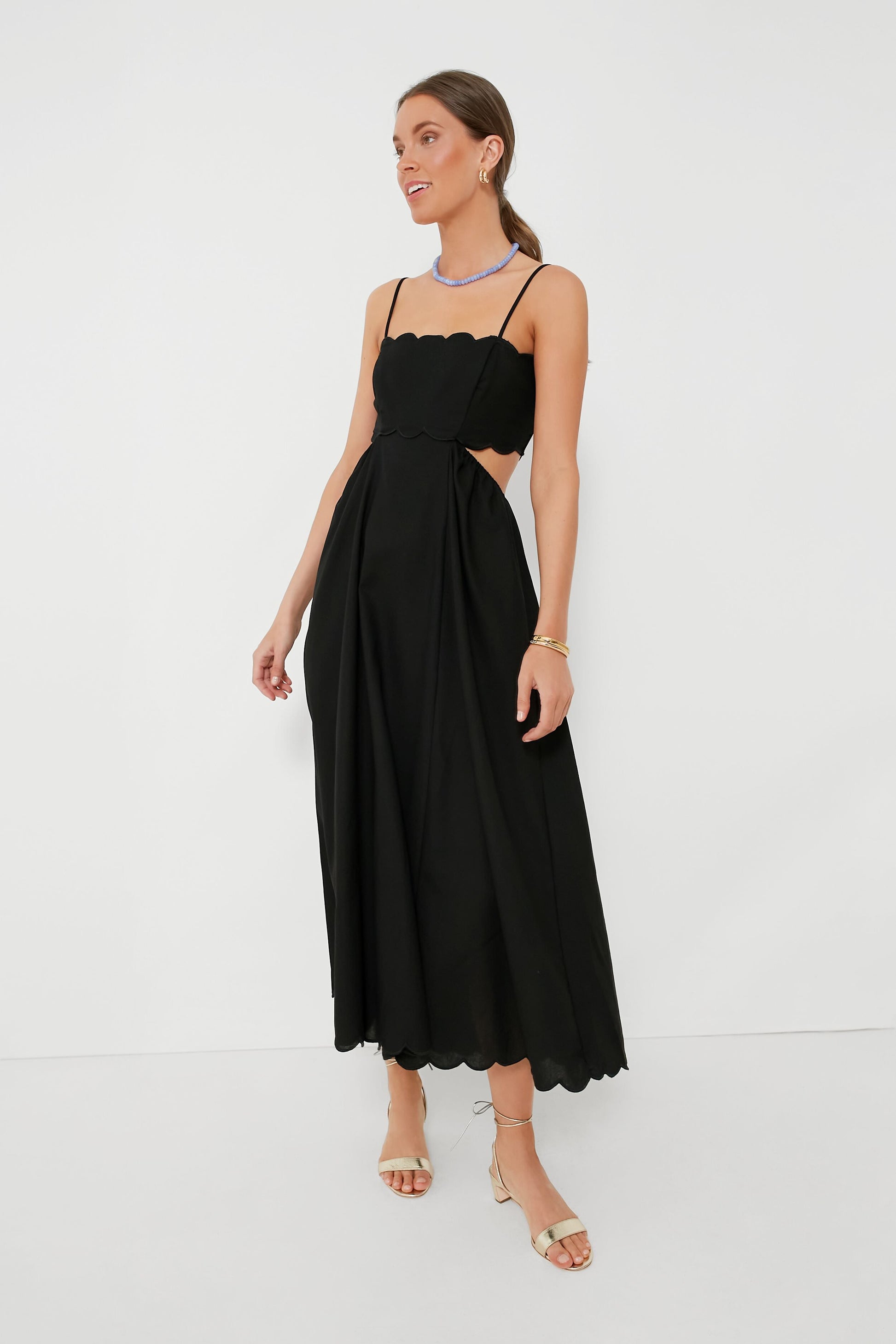 Equal parts sexy and sleek, the Black Hem Dress is simply understated. Dainty scallop trim is contrasted by chic side cutouts to create a striking silhouette that we always looking for. From cocktail parties to vacation date night, we love this LBD with gold heels and accessories that add a pop of color.