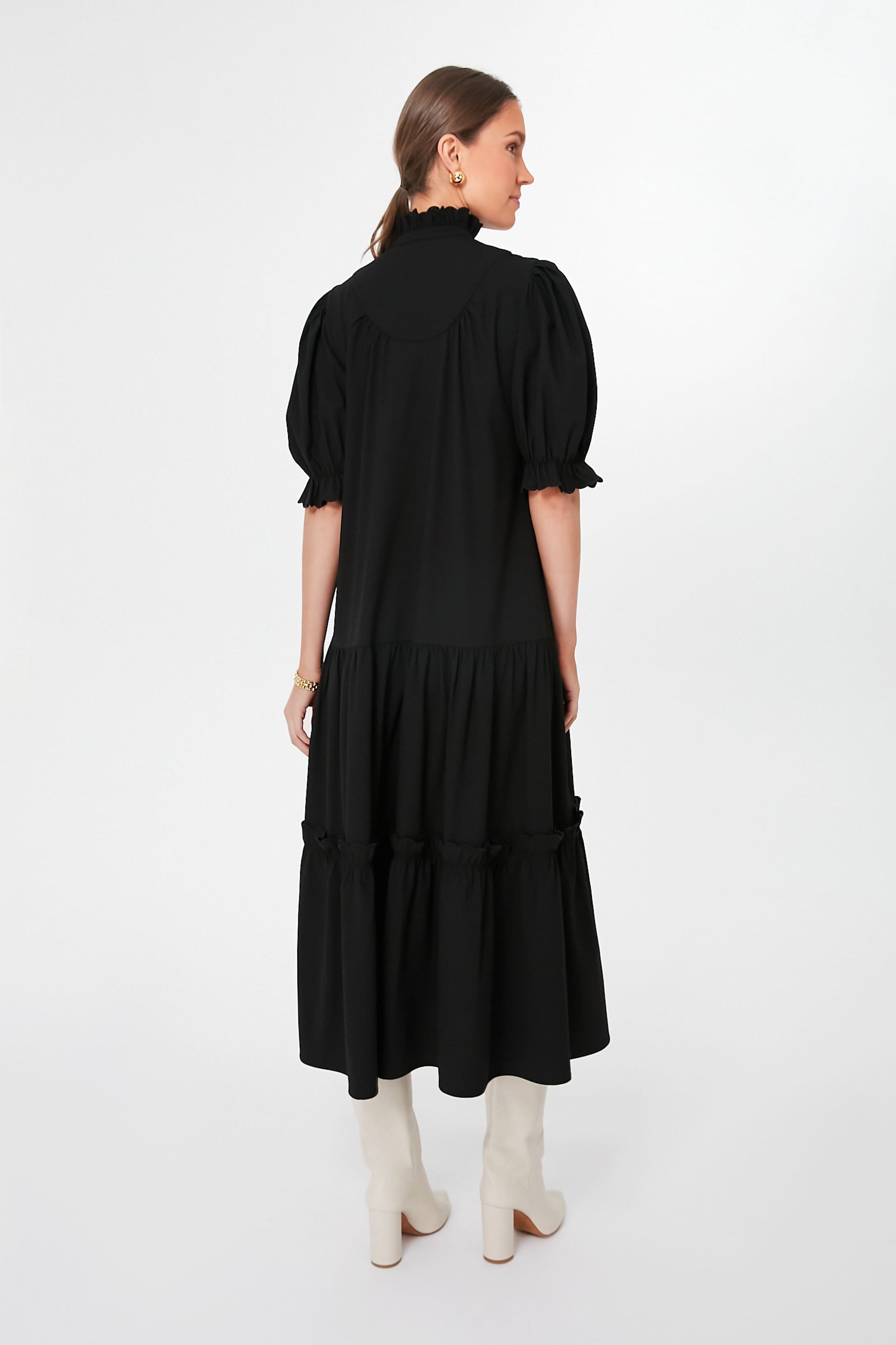 Modeled off of one of our favorite blouses, the Selena Maxi Dress is sure to be your new number from brunch, to girls night, to busy weekends, and everything else in between. Full of romantic details like a ruffle stand collar, quarter length front placket with covered buttons, and flutter detailing on the cuffs and skirt, this puff sleeve piece is fun and feminine. The styling options are endless - boots, flats, heels, sneakers...must we continue? This day to night stunner does it all!