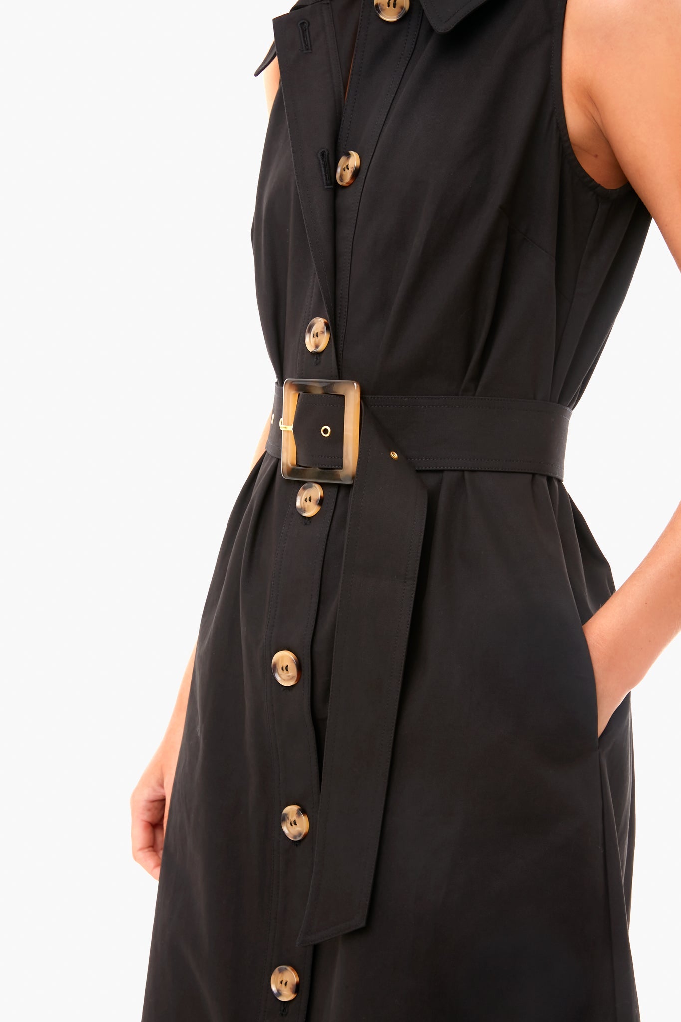 Elegant but effortless, the Chamberlin Dress combines timeless details with a seasonless silhouette to hit the mark for multiple occasions. Featuring a polished collar and a tortoise button-down front that's cinched together with a coordinating belt buckle, this black structured shirtdress will take you from desk to drinks in a New York minute!