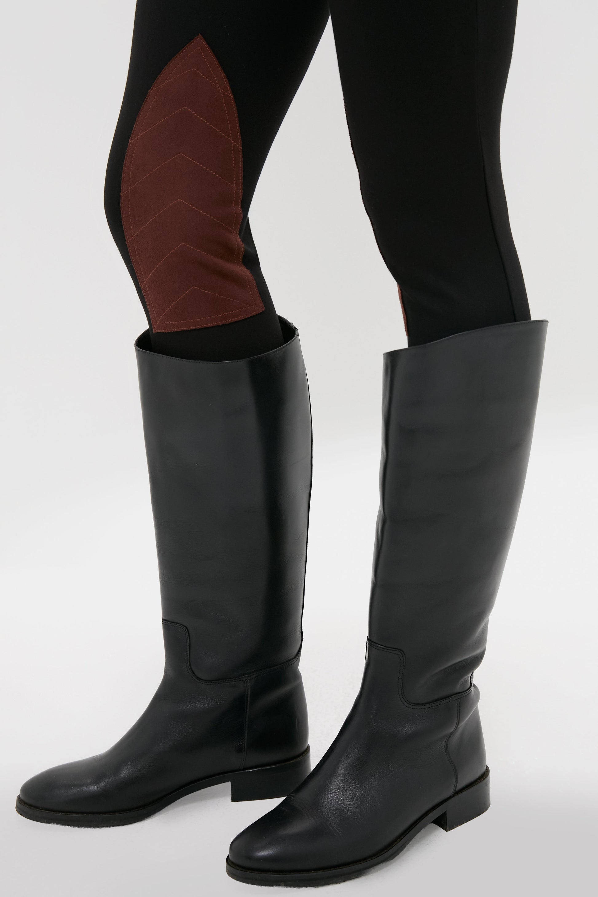 The Hughes Riding Legging features a slim fit, with an elastic waistband and a suede patch inside the leg. These vintage inspired, classic leggings, add a bit of elegance to the typical legging. Pair with a chunky knit sweater and riding boots for equestrian inspired style.