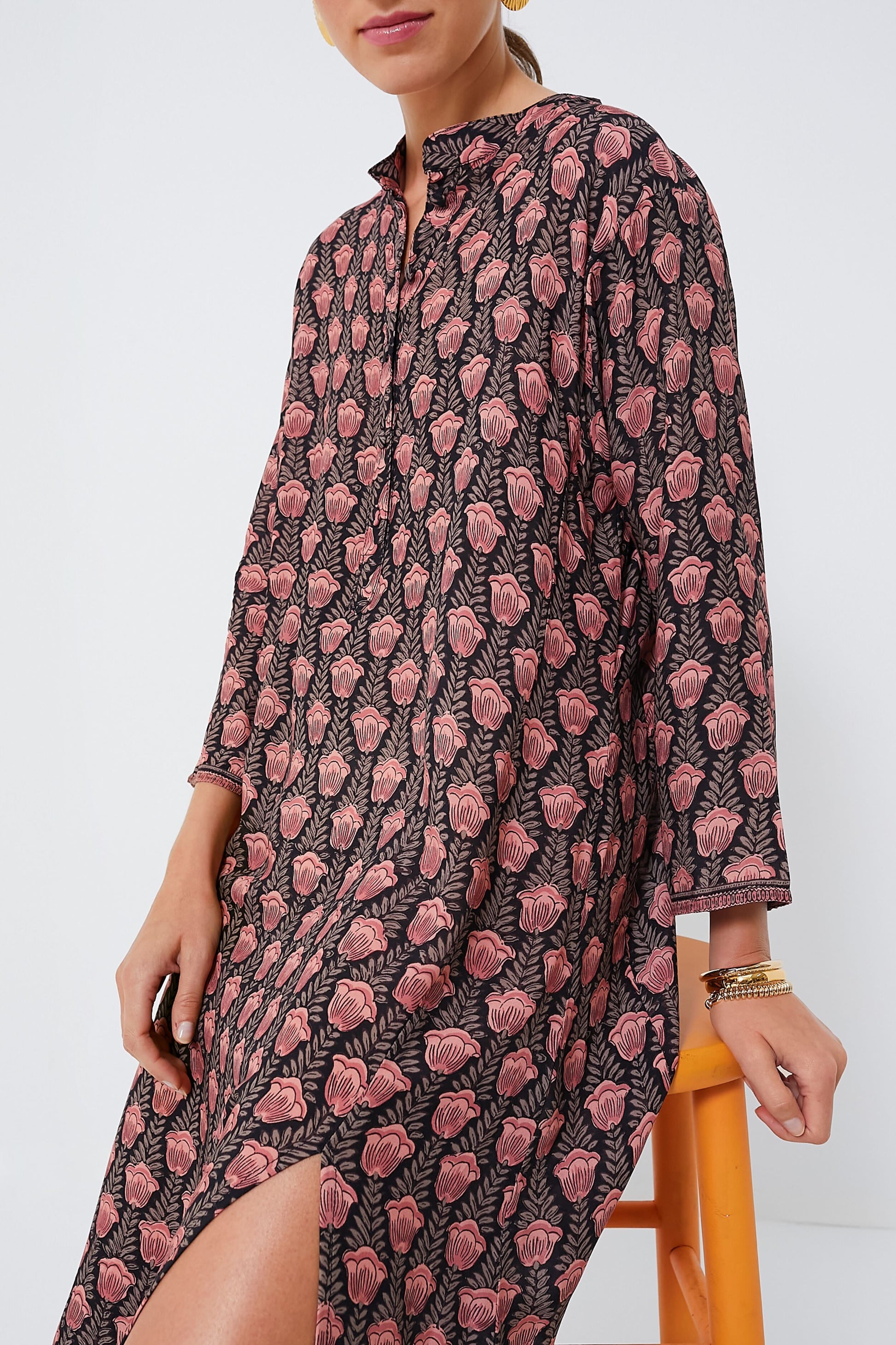 The Black Tulip Print Kamari Block Isobel Dress is beautifully crafted from light and airy rayon, making it one of our favorites for warm weather and sunny days. Handmade in Bali, this one-of-a-kind piece features a deep notched neckline with covered buttons, three-quarter sleeves, and side slits at the hem to promote easy movement. Perfect for wearing everyday and on-the-go, style this sleek silhouette with gold hoops and sandals for chicest results!
