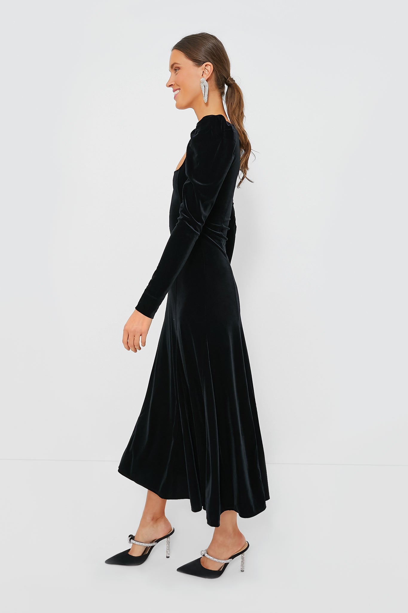 Black Velvet Jersey Puff Sleeve Maxi Dress
