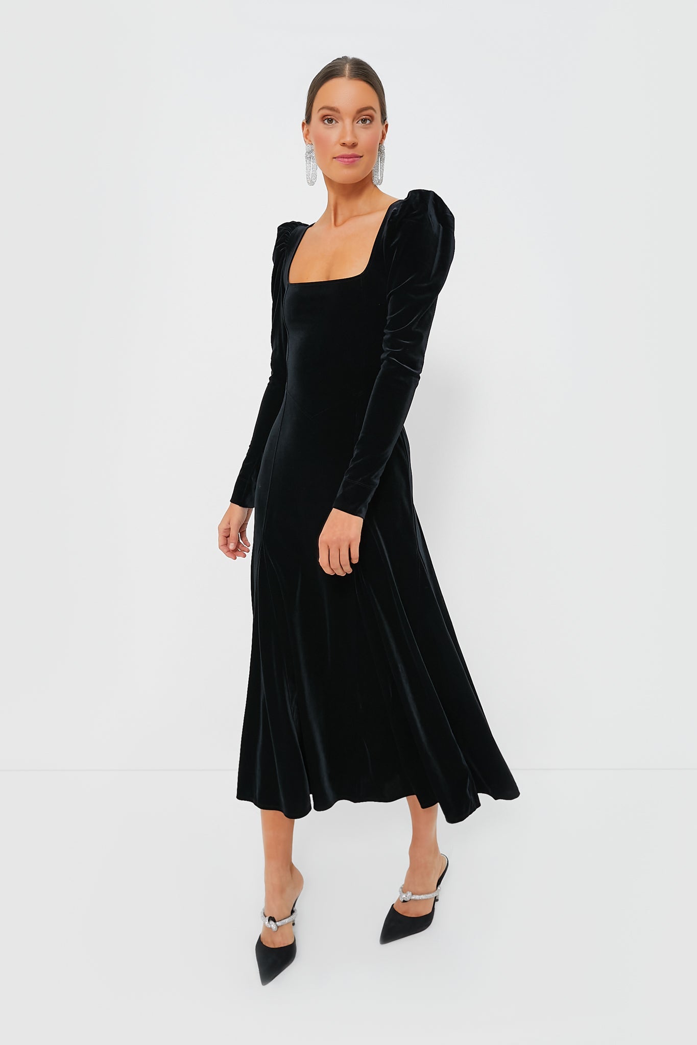Lovely and ladylike, this Black Jersey Dress is an effortless LBD that will live in your closet for years to come. Crafted from a medium-weight, super-soft velvet, this slinky maxi is finished with square neckline, long puff sleeves and a fluttery skirt that will move with you. This style is your solution to fall and winter weddings, holiday parties, and so much more — just style with shimmering heels and statement jewelry for events and occasions ahead!