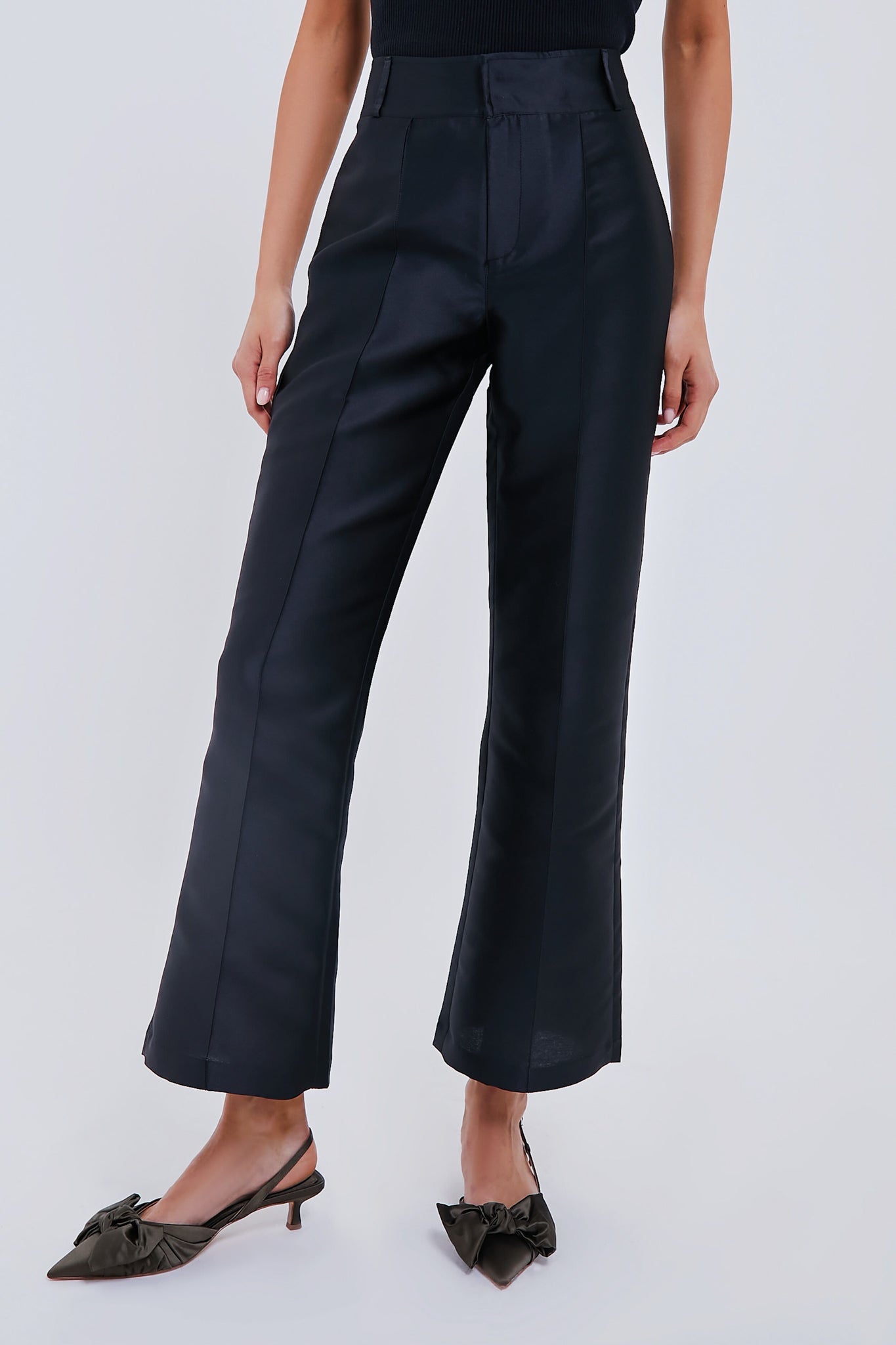 The Black Yoshitomo Smart Pants are a fun and chic twist on the classic dress pant. Featuring a satin like finish, cropped length, and slash side pockets, this piece can replace any formal dress. Style with the Black Amoako Smart Jacket for a fashionable matching set or with a fitted blouse and kitten heels for a formal work event.