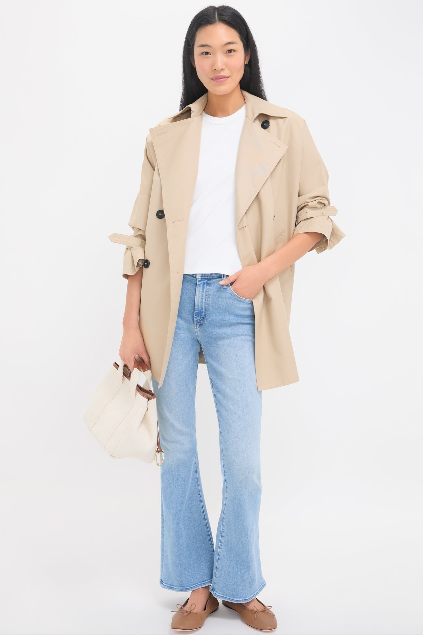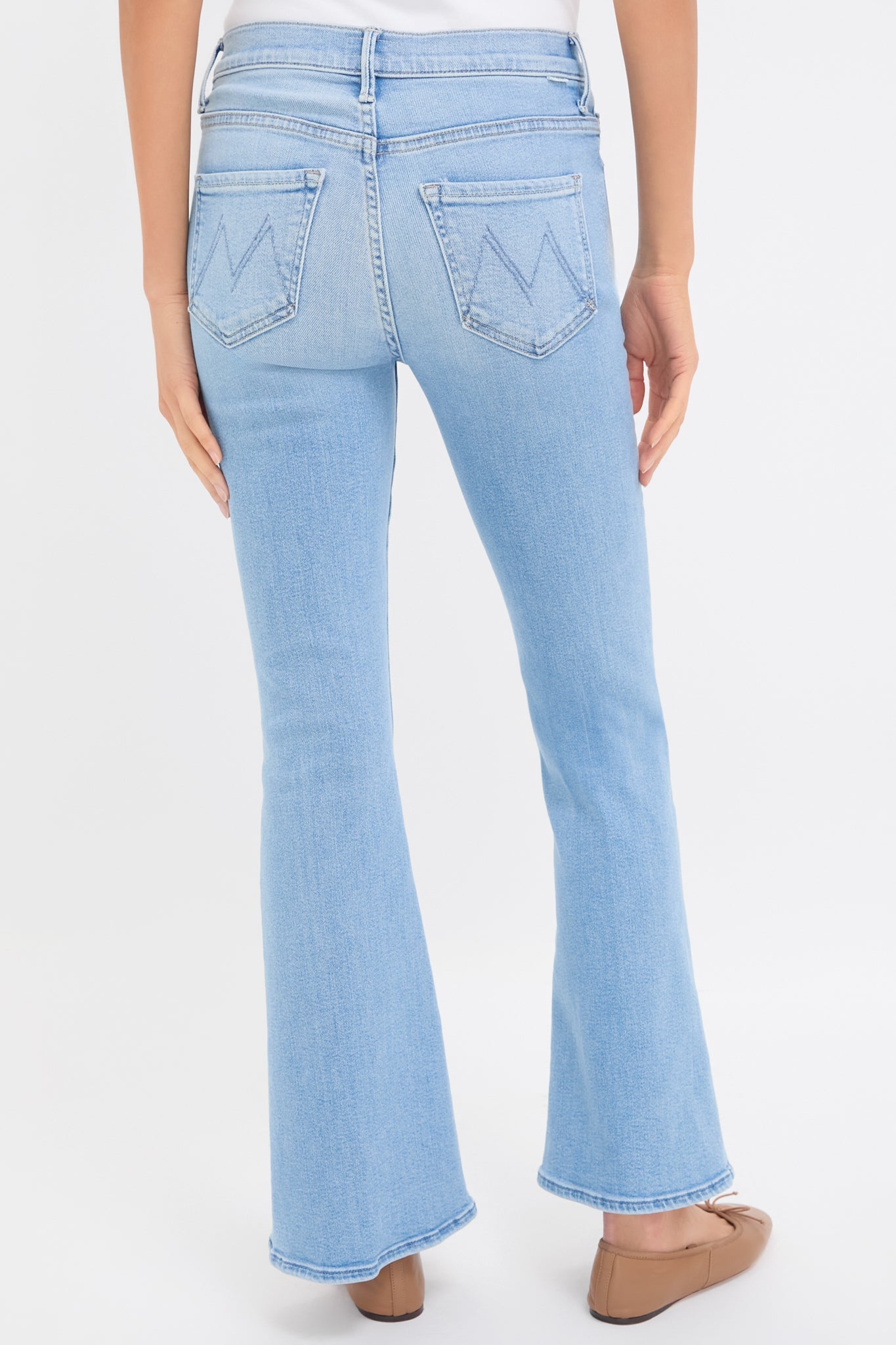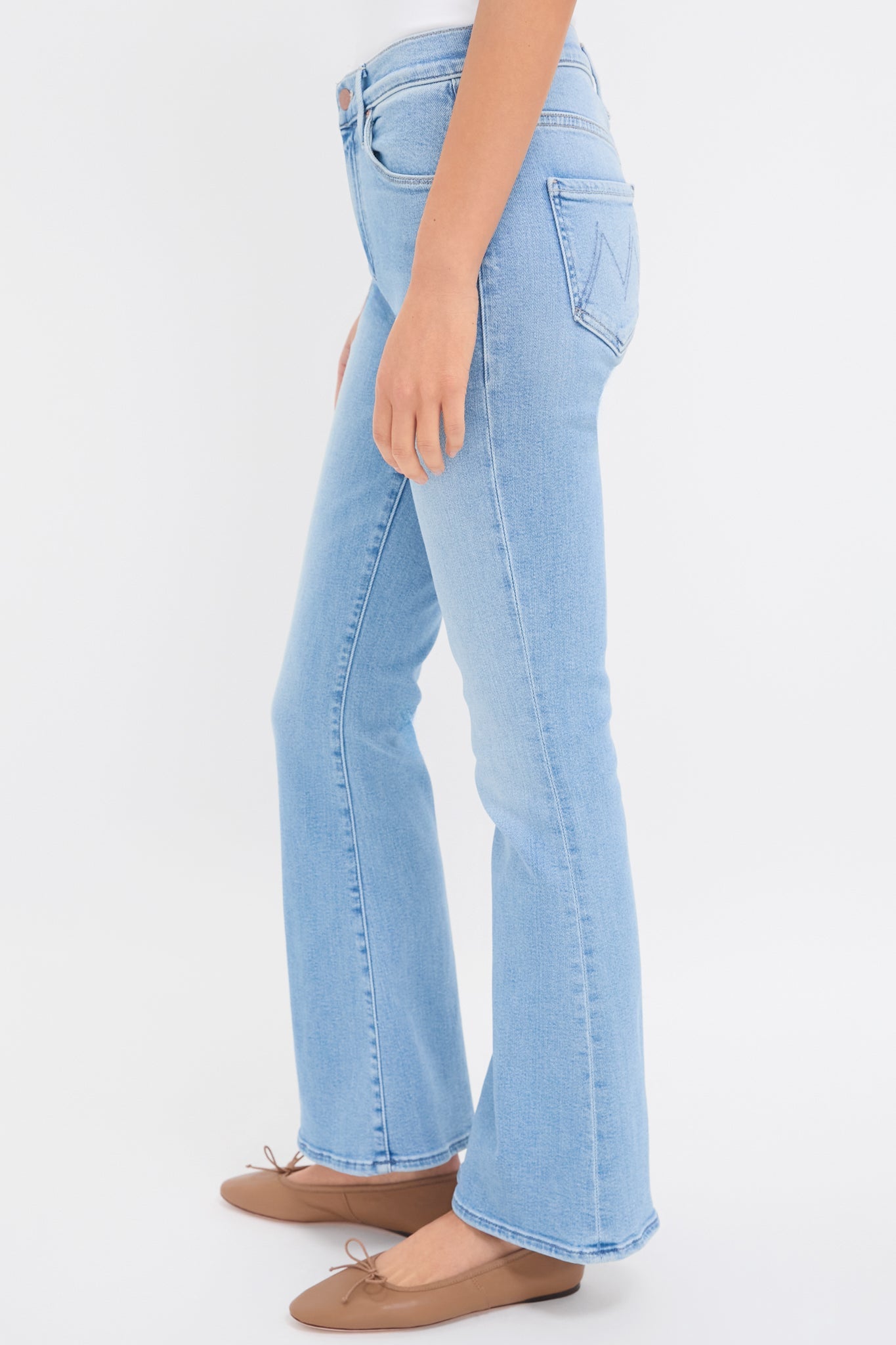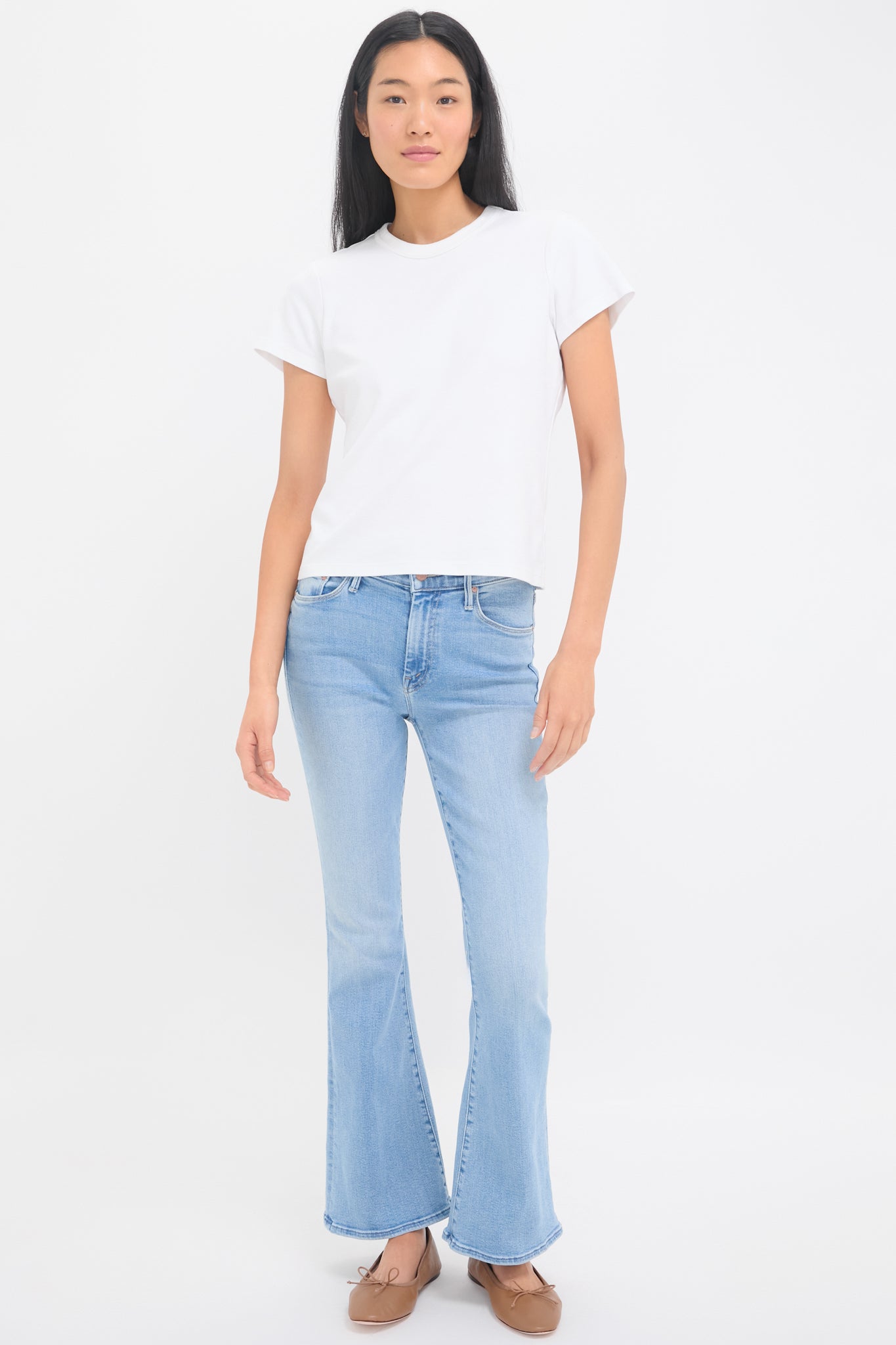 The Blessing In Disguise The Weekender jean features a flare silhouette, mid rise, and a clean hem. Cut from stretch denim, this mid blue jean has subtle whiskering and fading at the knees. Pair with a tee, sweater, and tote for easy everyday wear, or a button down and flats or heels for more sophisticated styling!