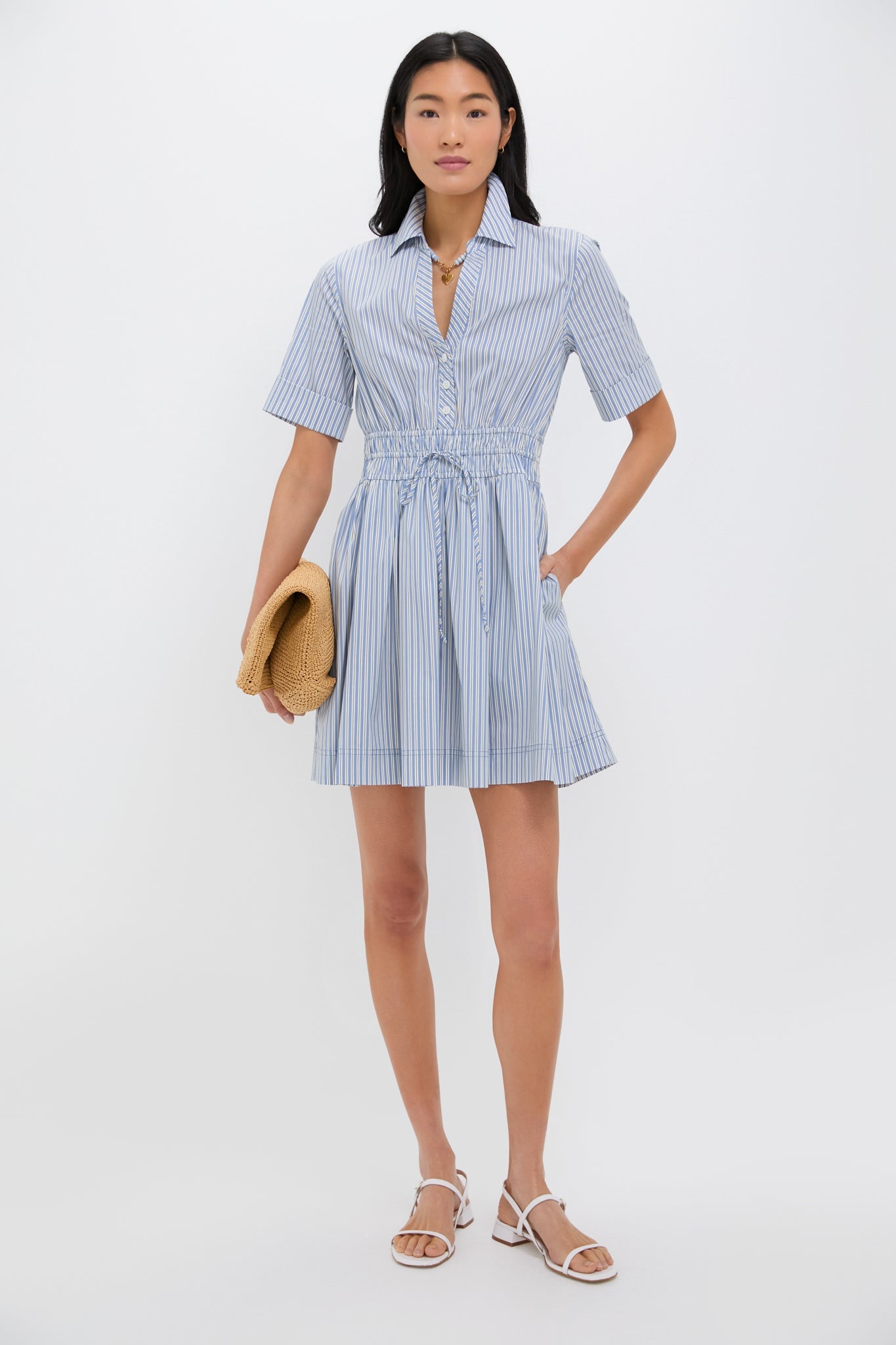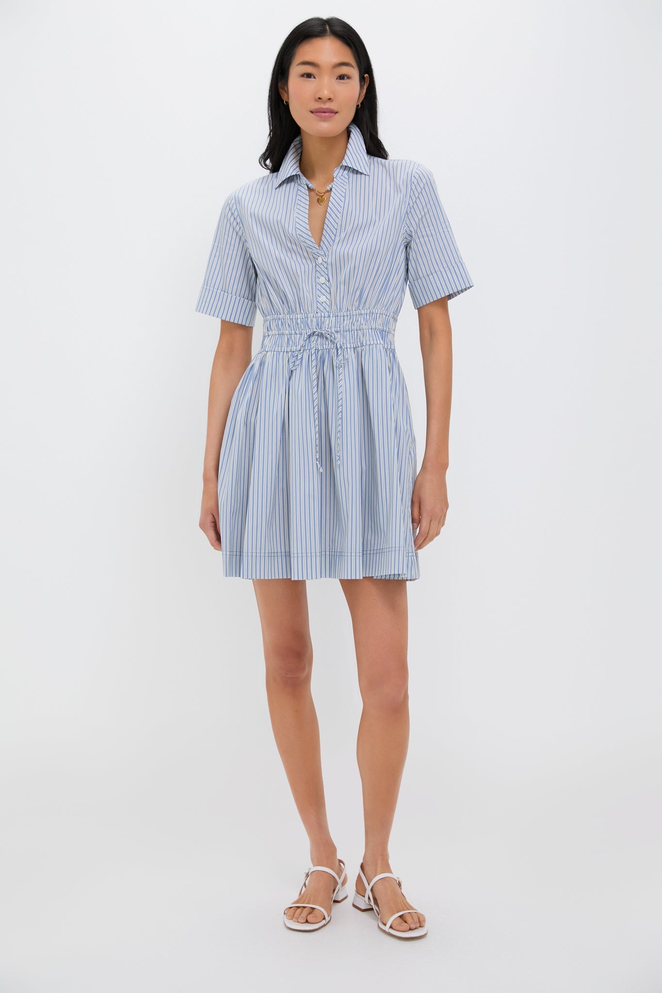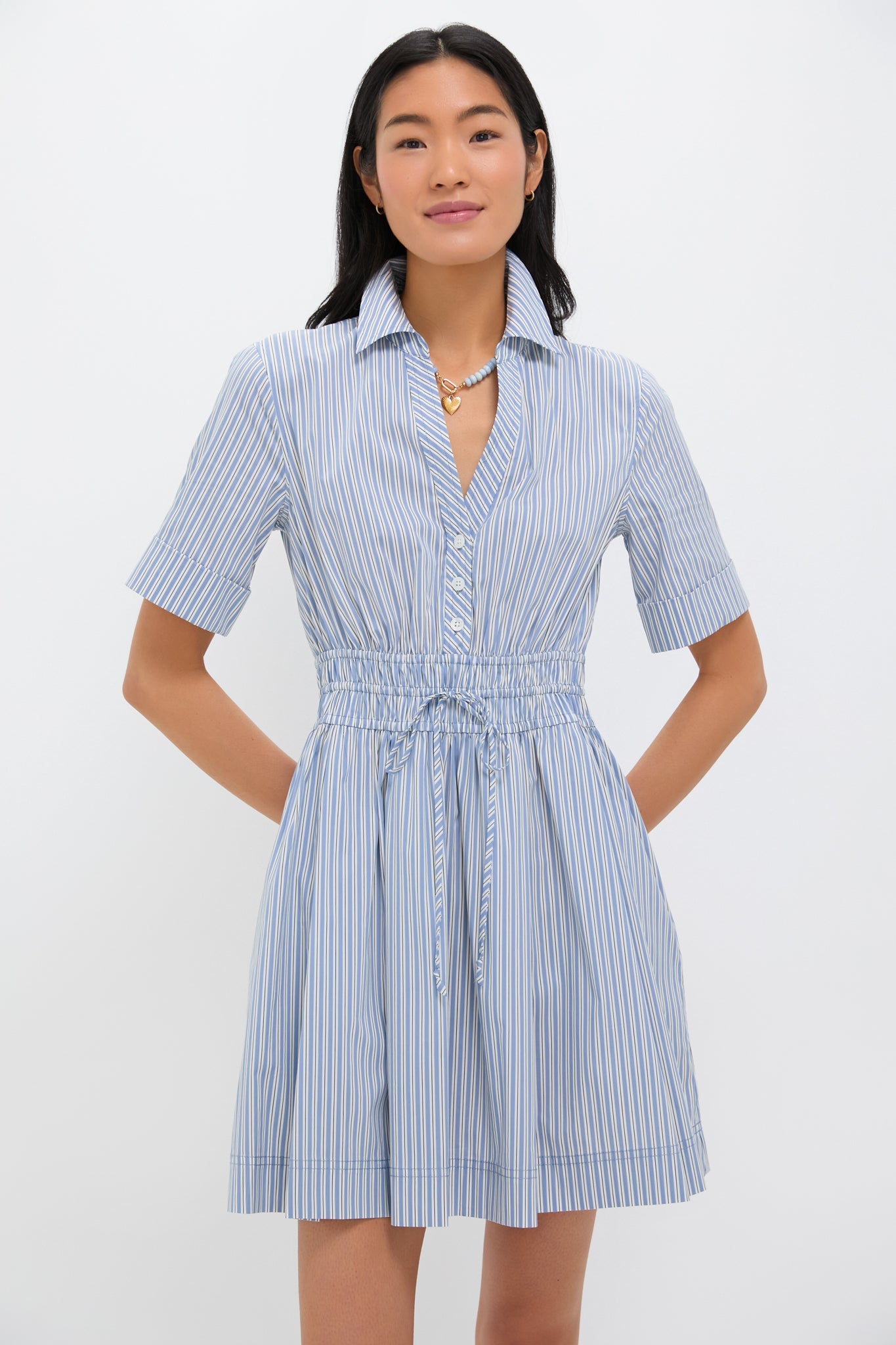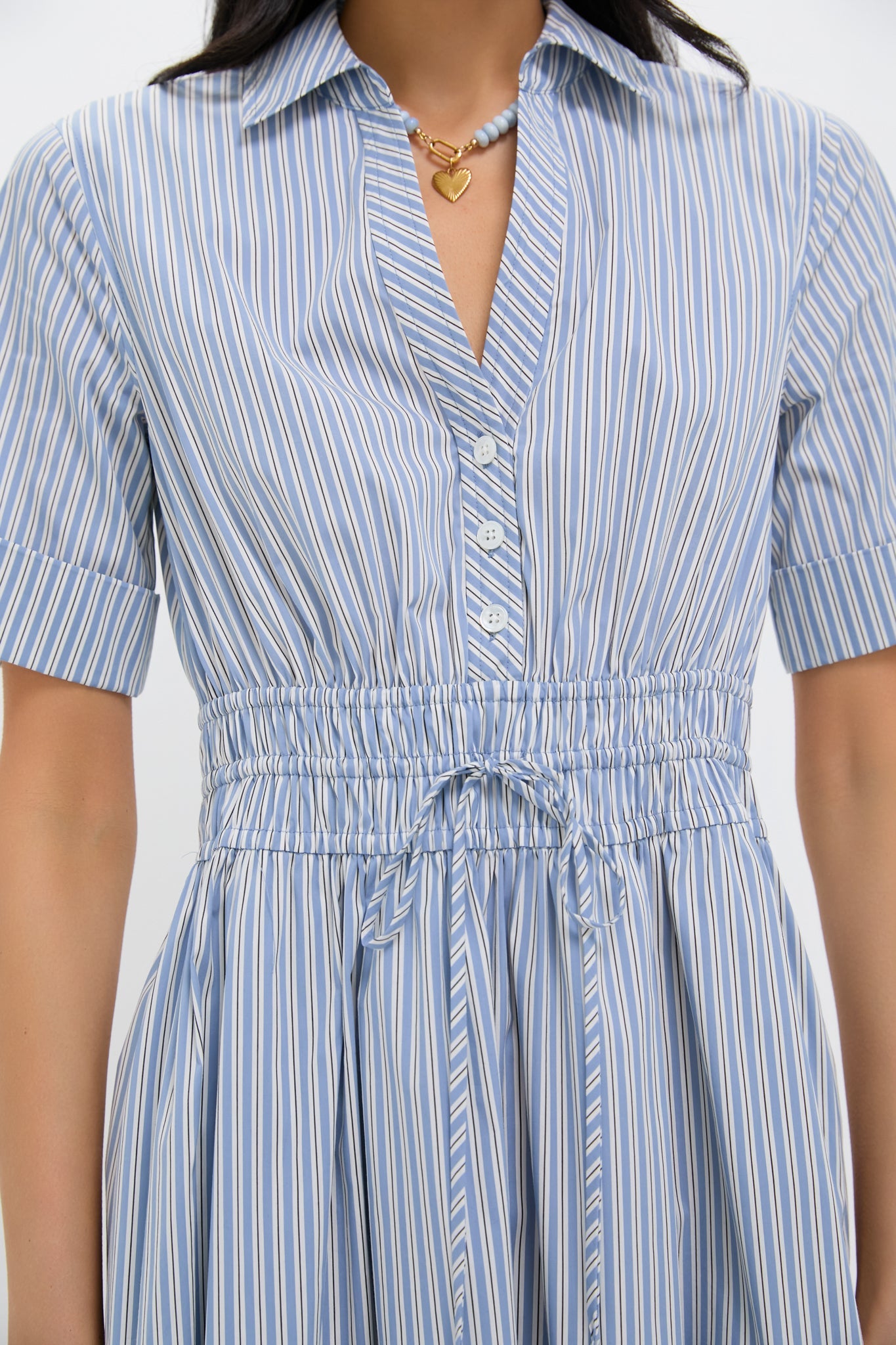 The Blue and Multi Susan Dress is crisp, classic, and effortlessly flattering with its fit-and-flare shape, collared V-neck, and timeless blue-and-white stripes. Made from soft stretch cotton with an adjustable drawstring waist, it’s tailored for comfort and movement. Throw on sneakers for errands or swap in heels for brunch or casual dinners—it's your new go-to.