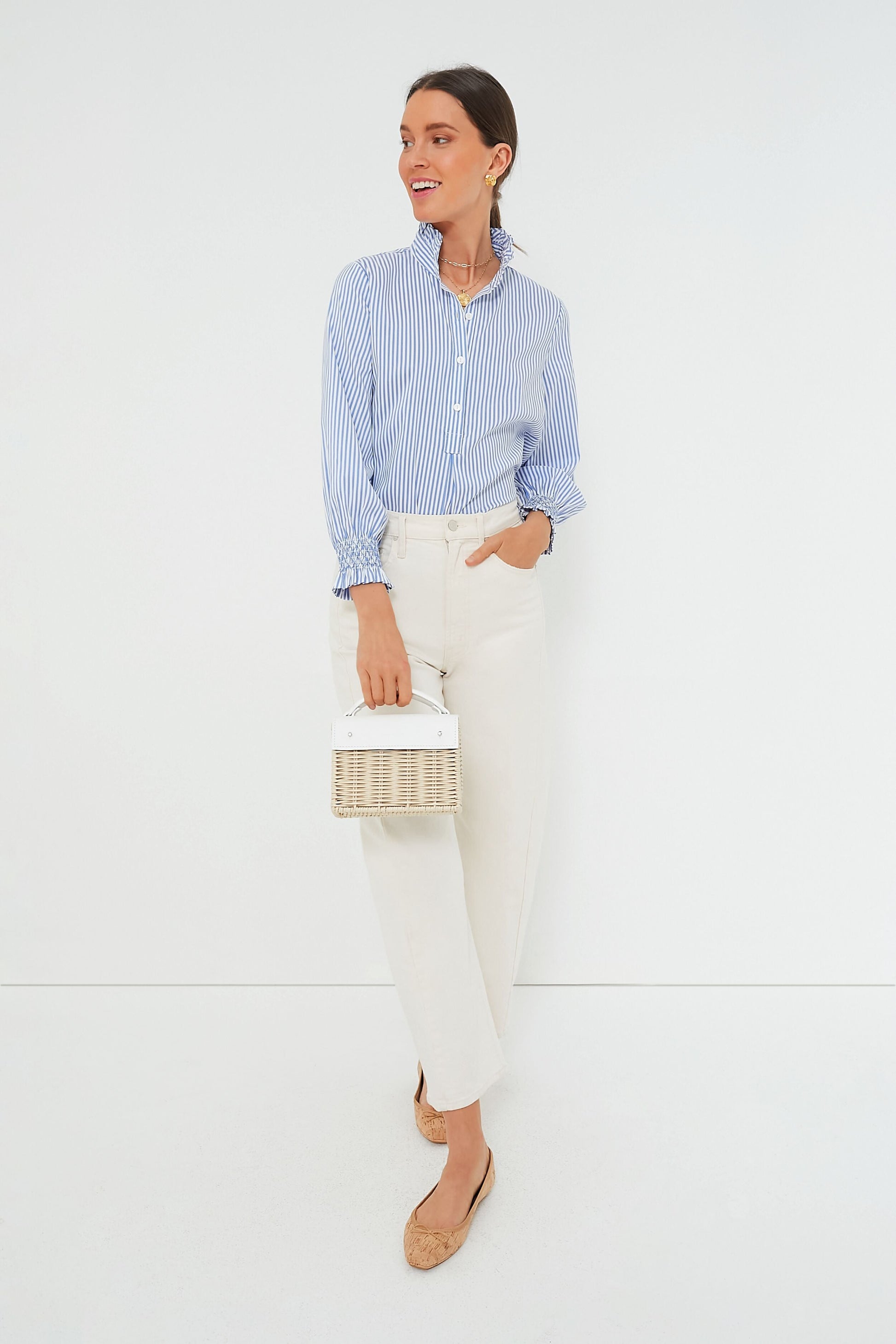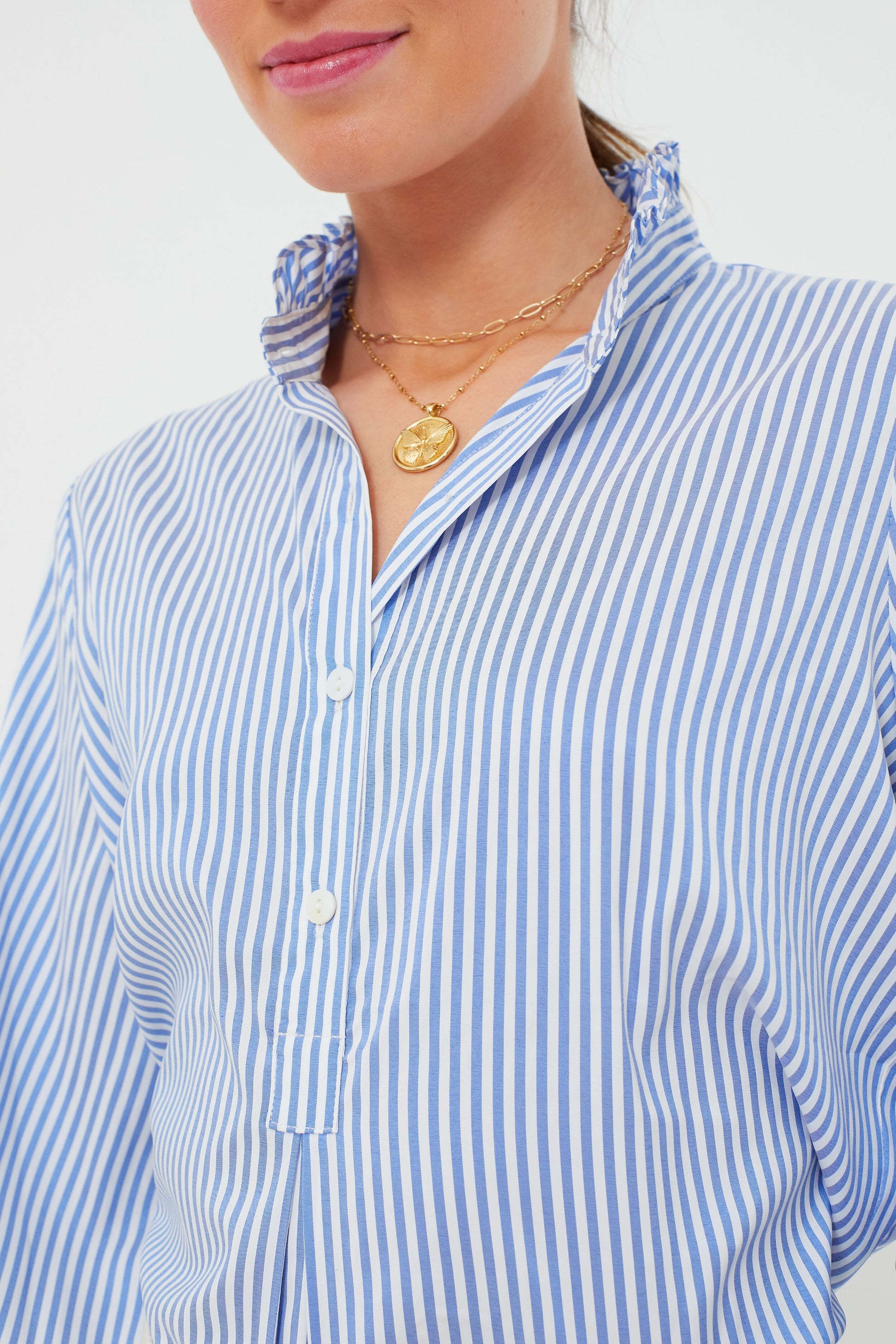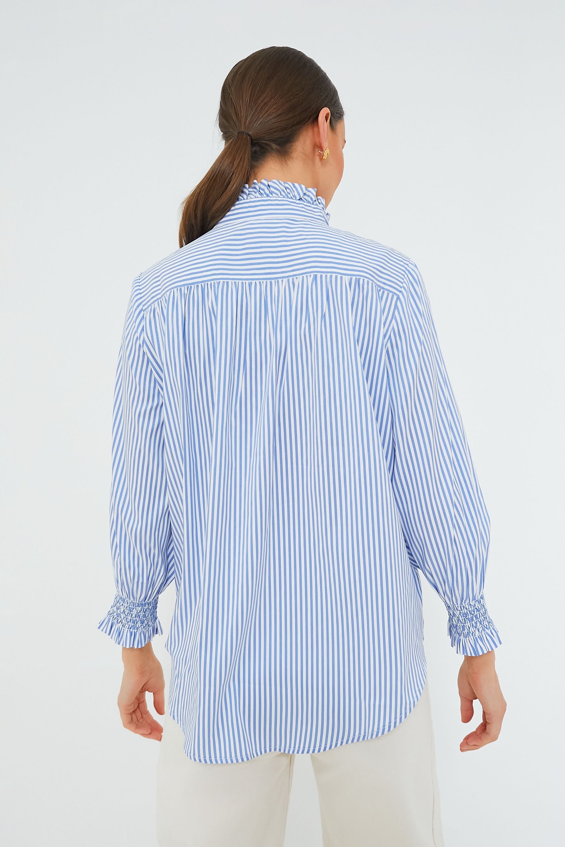Blue and White Stripe Teagan Popover Top
