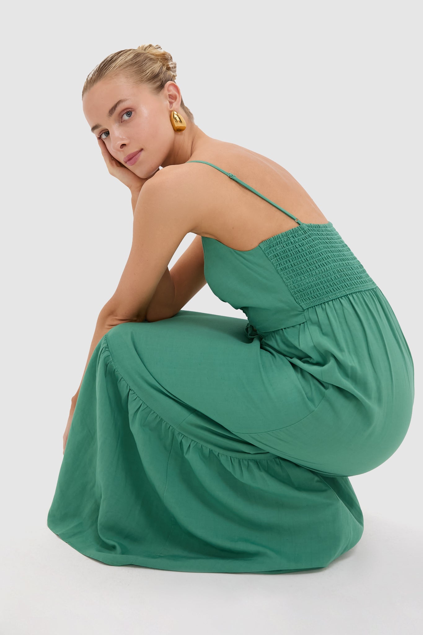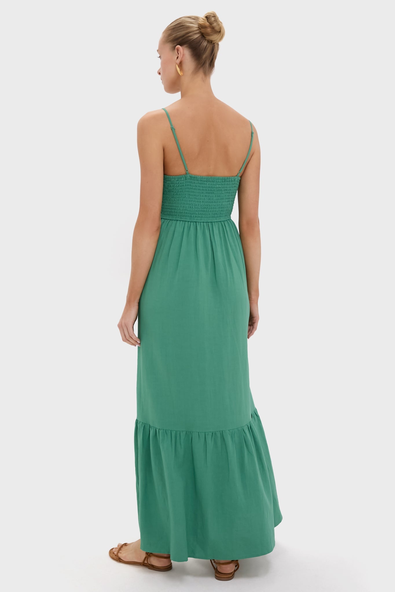 Light and breezy, the Botanical Green Winslet Maxi Dress features adjustable spaghetti straps and a playful front cutout with a tie detail. Made with airy rayon linen fabric, it’s perfect for sun-soaked days and effortless styling. Pair with sandals or espadrilles for an easy day-to-night look!