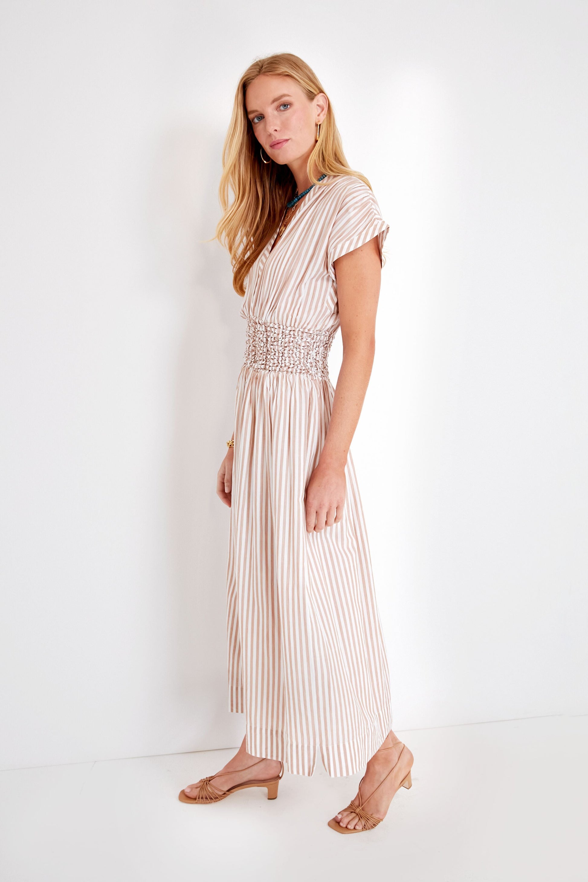 In neutral stripes that are wearable yet fun, the Bronze Granada Dress is oh-so-pretty. Subtle details like a short batwing sleeve and a textured elastic waistband make this a silhouette you will want to keep on hand for both casual and elevated styling. Comfortable, breathable, and adorable in crisp cotton, it’s easy to accessorize whether you want to keep things simple with classic wedges and a clutch, or go for something punchier with statement jewelry.