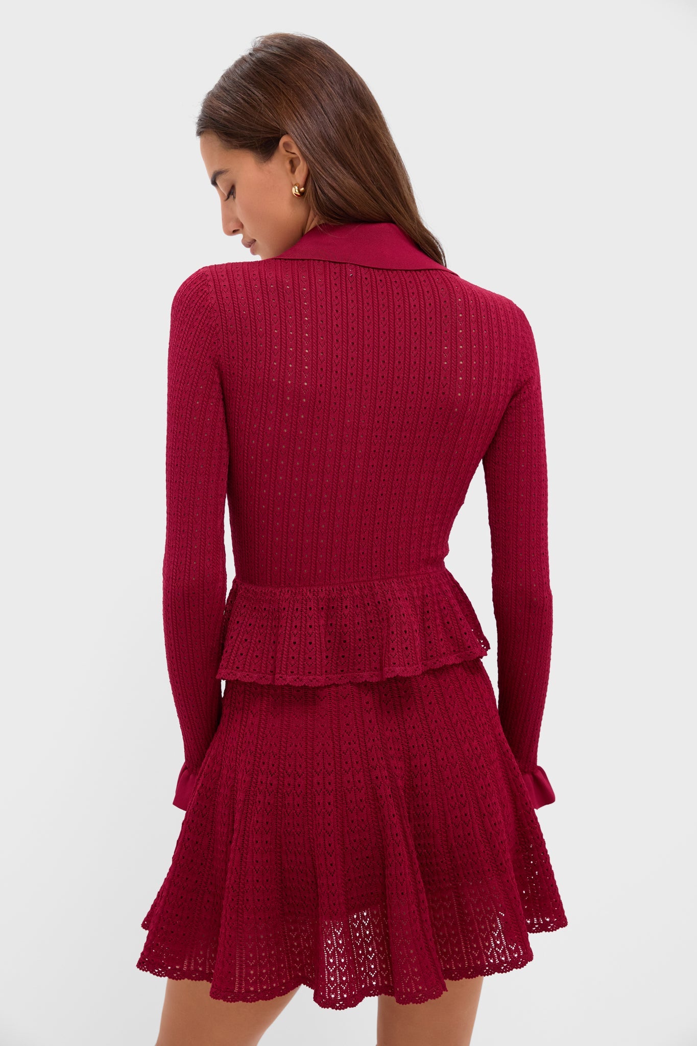 Burgundy Pointelle Knit Mini Dress