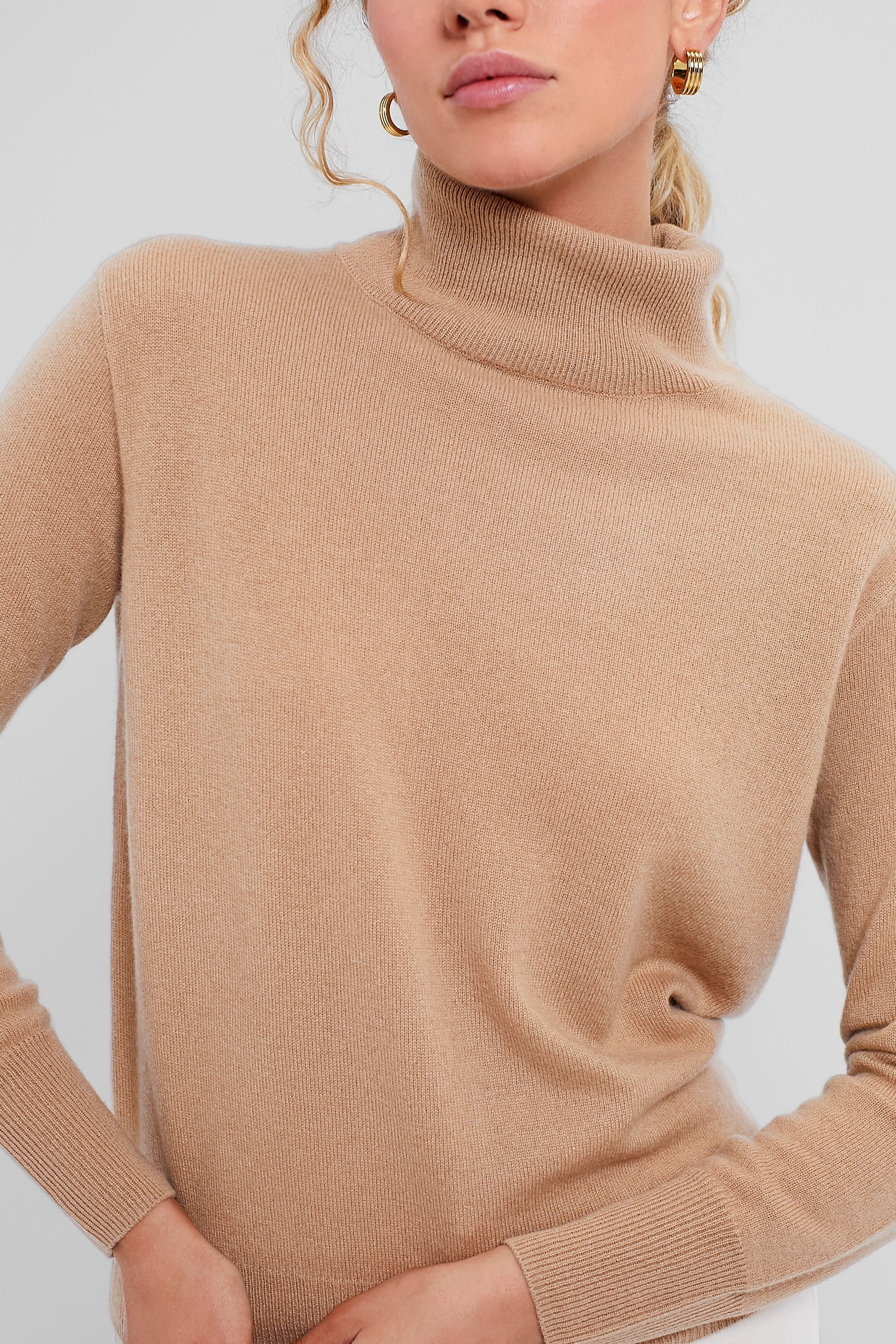 Camel Cashmere Turtleneck Sweater