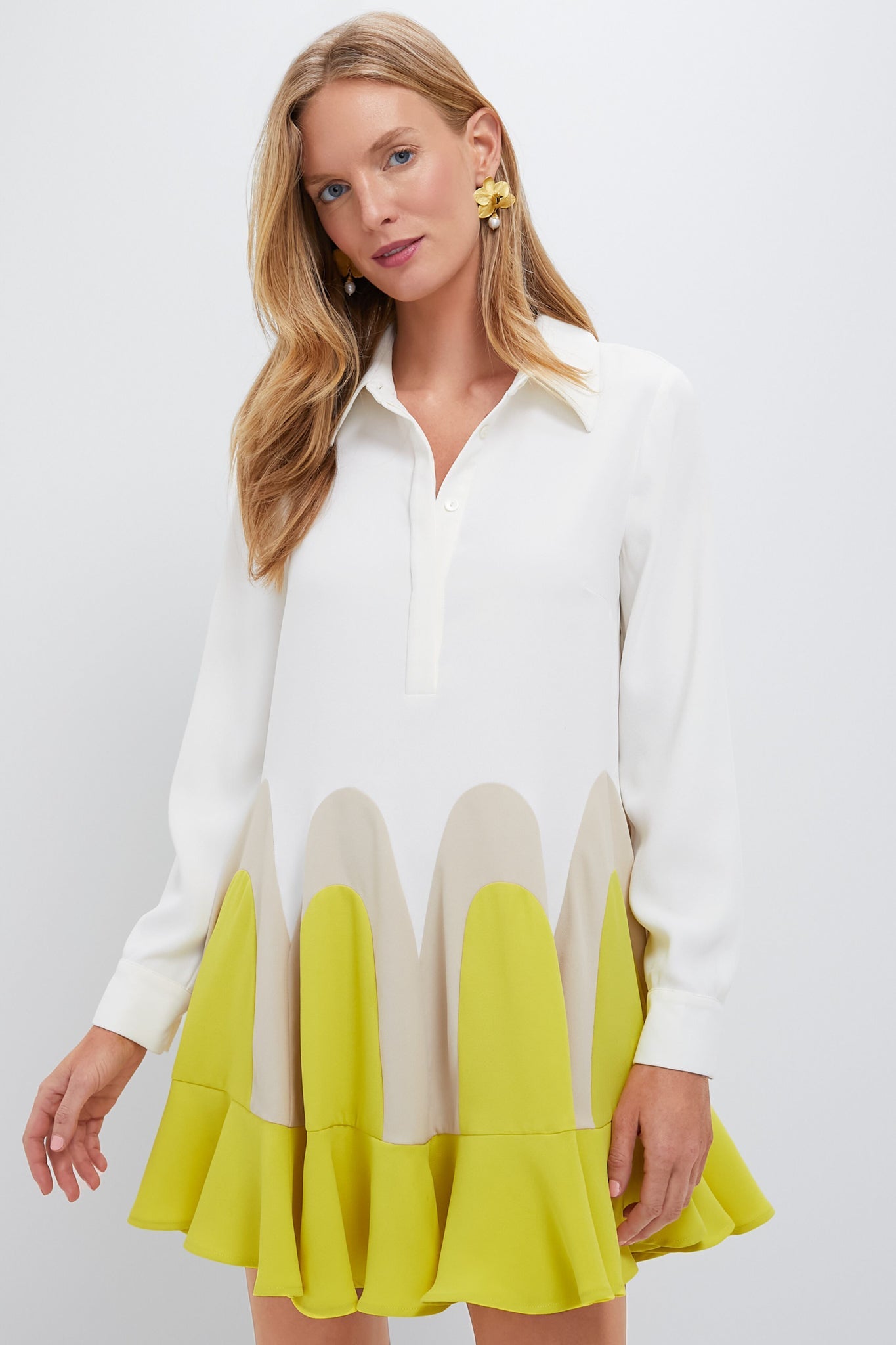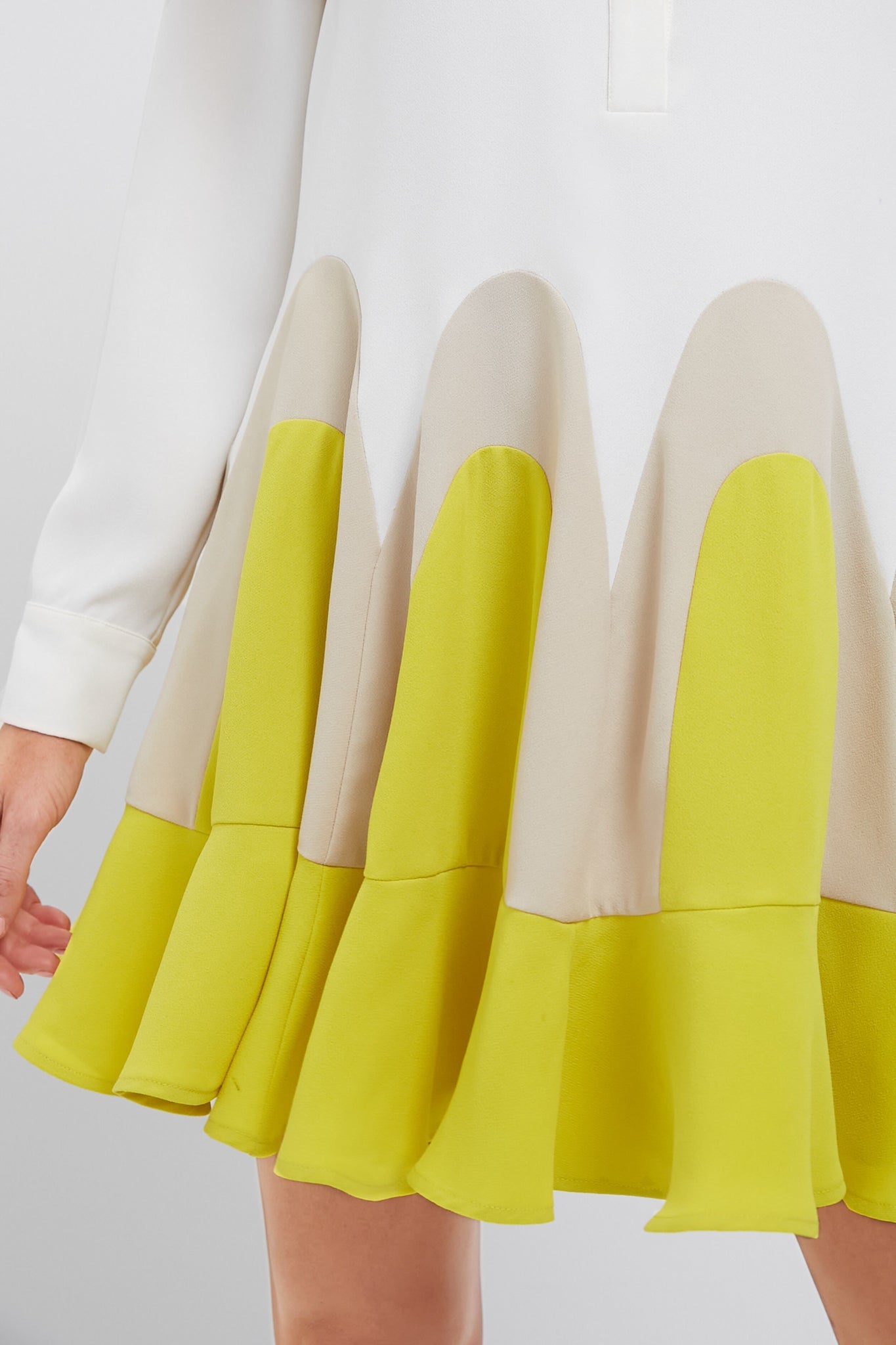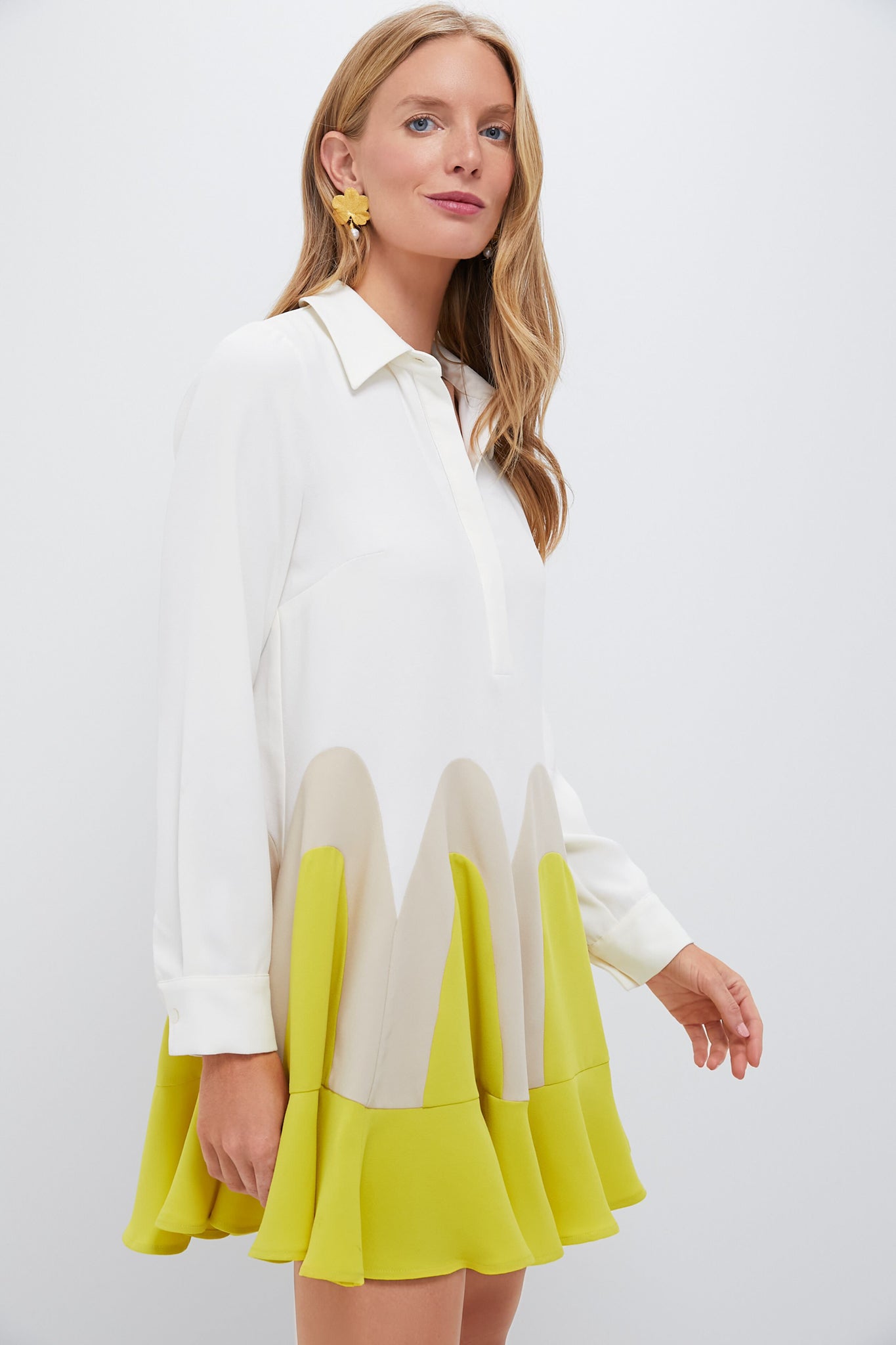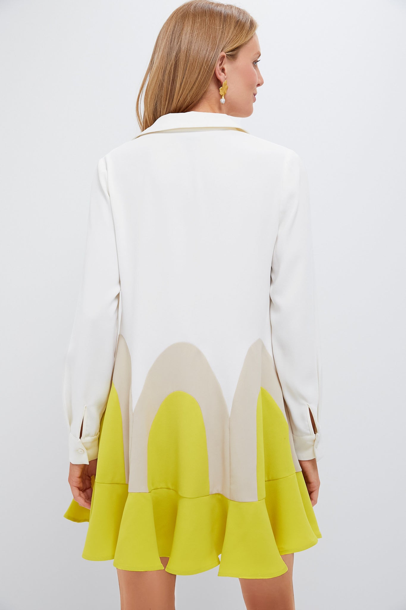 A playful-yet-feminine mix of neutrals and color, the Nadia dress makes a bright impression. With a swing silhouette, mini length, and collared neckline, it's a dress you'll wear to a day at the office, lunch with friends, or an afternoon of exploring. Pair with sandals or wedges, a handbag, and sunnies, for a put-together look.