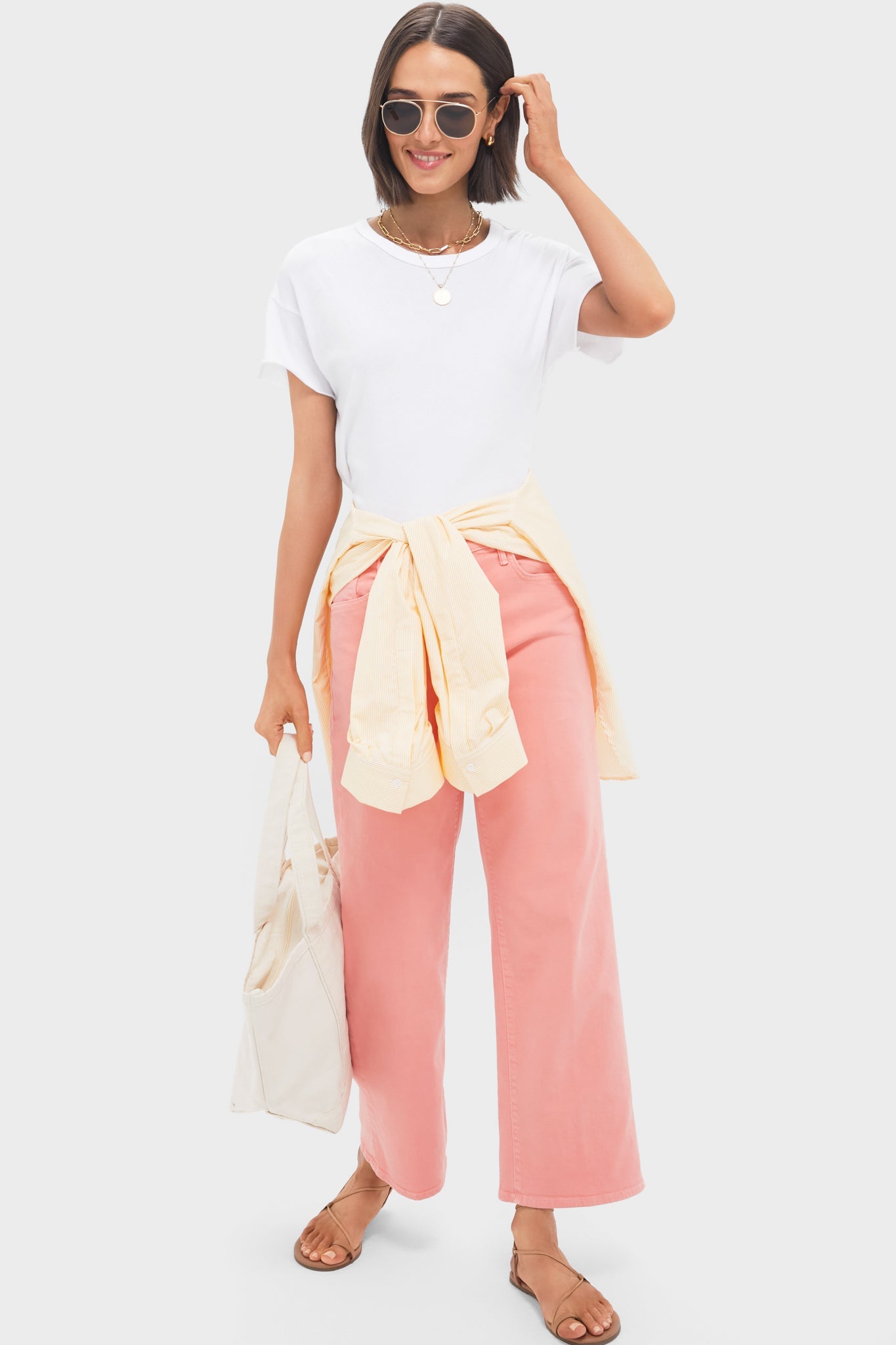 The Cats and Dogs Peach Amber Mid Rise Maven Ankle will brighten up your closet! Featuring a loose fit, mid-rise, wide leg, and clean hem, these pants have stretch and are ready for whatever your day brings! Style it with a white tank, cashmere sweater over the shoulders, a tote and sandals!