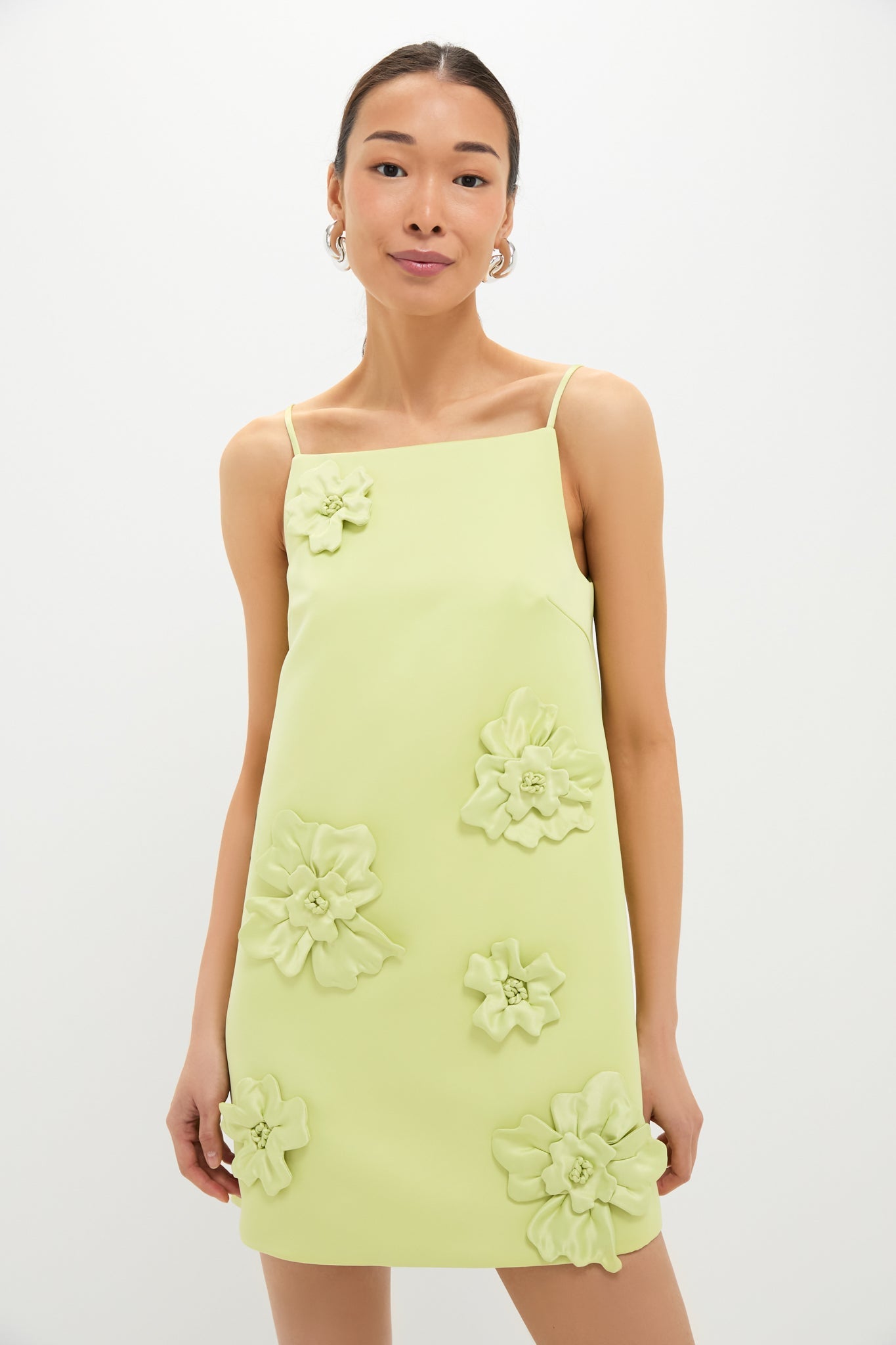 The Chartreuse Leia Petal Mini Dress is a striking mini dress in a bright chartreuse hue. With a flattering square neckline, A-line silhouette, and 3D floral embellishments, this mini is sure to please. We styled it with heels, a clutch, and chunky earrings for a fun and flirty look!