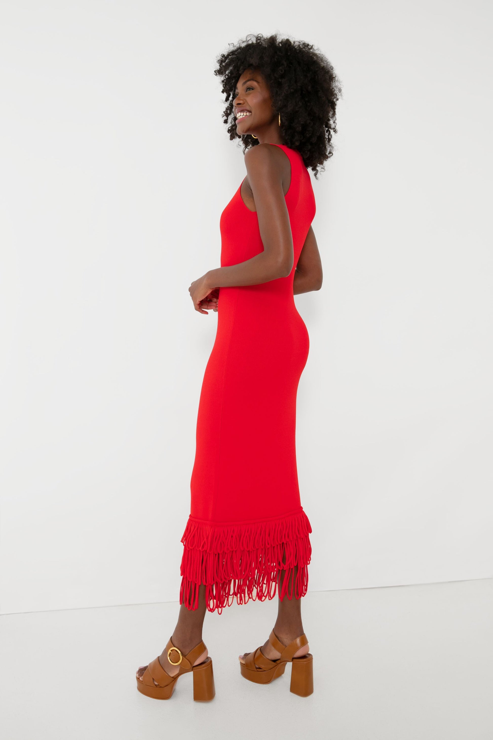 Combining a vibrant red colorway with intriguing texture, we love the uniqueness of the Cherry Albers Dress. With an on-trend midi length, as well as a layered loop fringed hem that provides some swishy movement and plenty of drama, this silhouette is super cool while feeling effortless. Style this fun and funky number with heels and a clutch for outdoor events and sunny celebrations, or try it with sandals and chunky jewelry for date night.