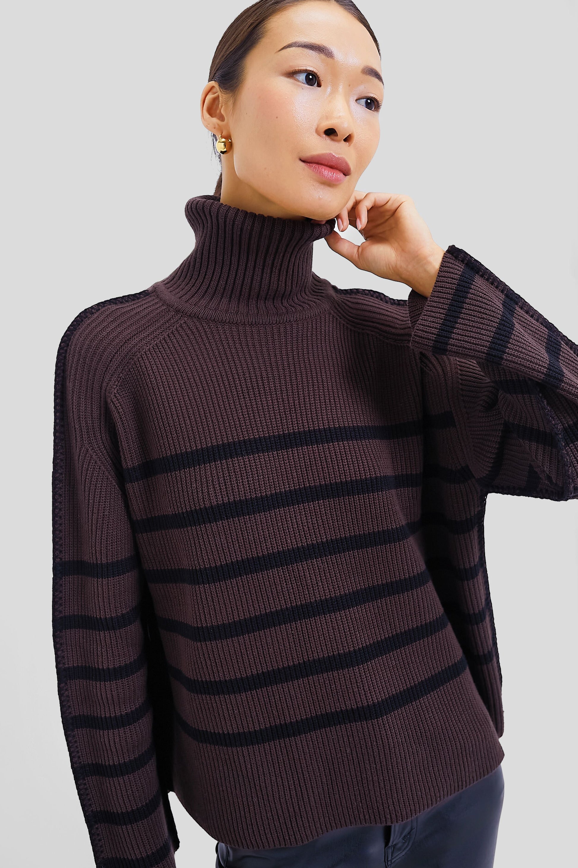 Chocolate & Black Striped Emsley Turtleneck
