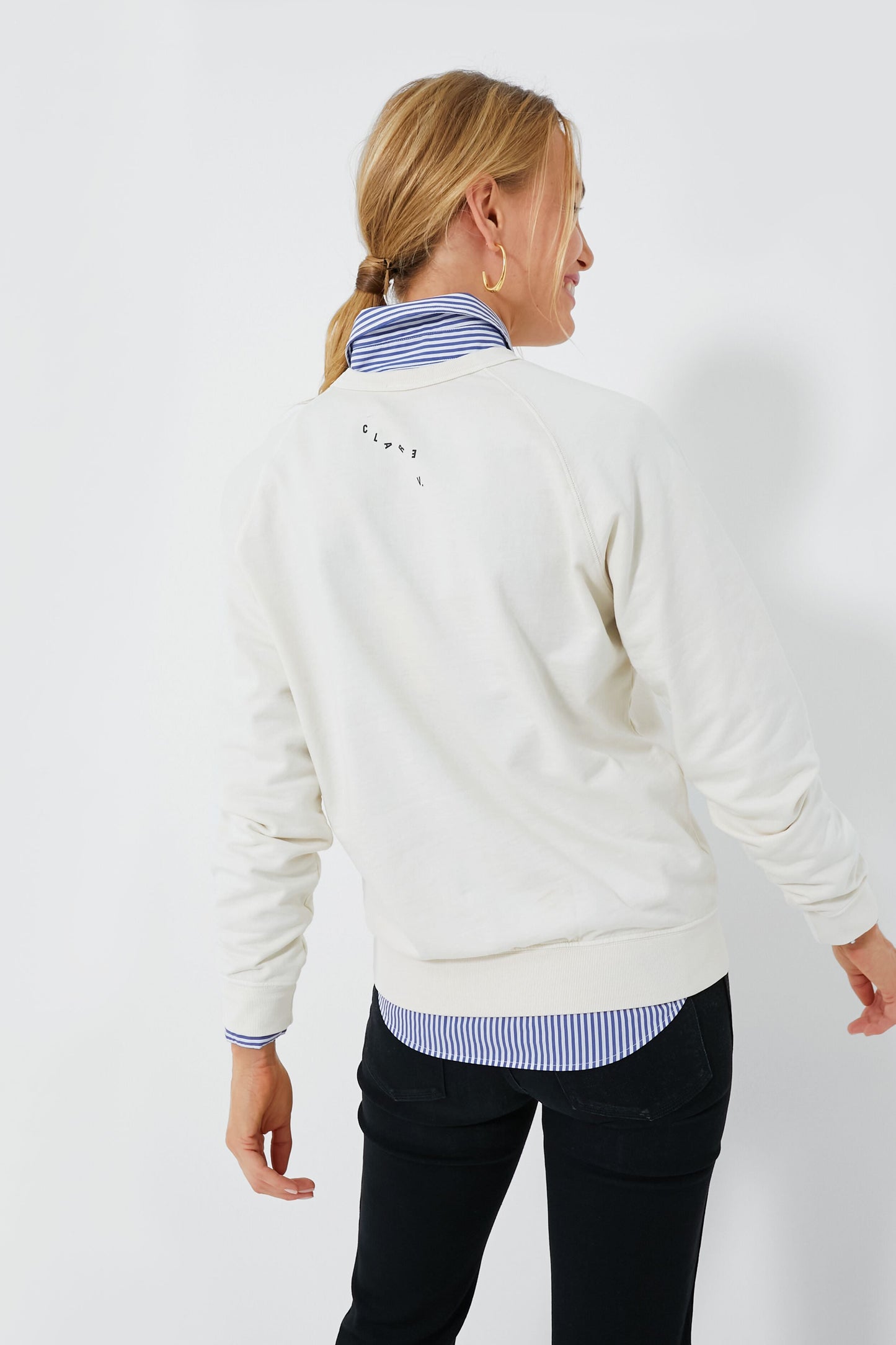 Calling all wine lovers! The Cream with Black Sweatshirt is perfect for you. Featuring the names of all those well-loved Loire Valley wines, this lightweight top is crafted from a soft cotton and is oh-so-cozy. A great addition to your closet, this layering piece has a subtle touch of fun and personality that you won't find elsewhere. Style over a button down with denim, or layer it with a tennis dress on chilly mornings!