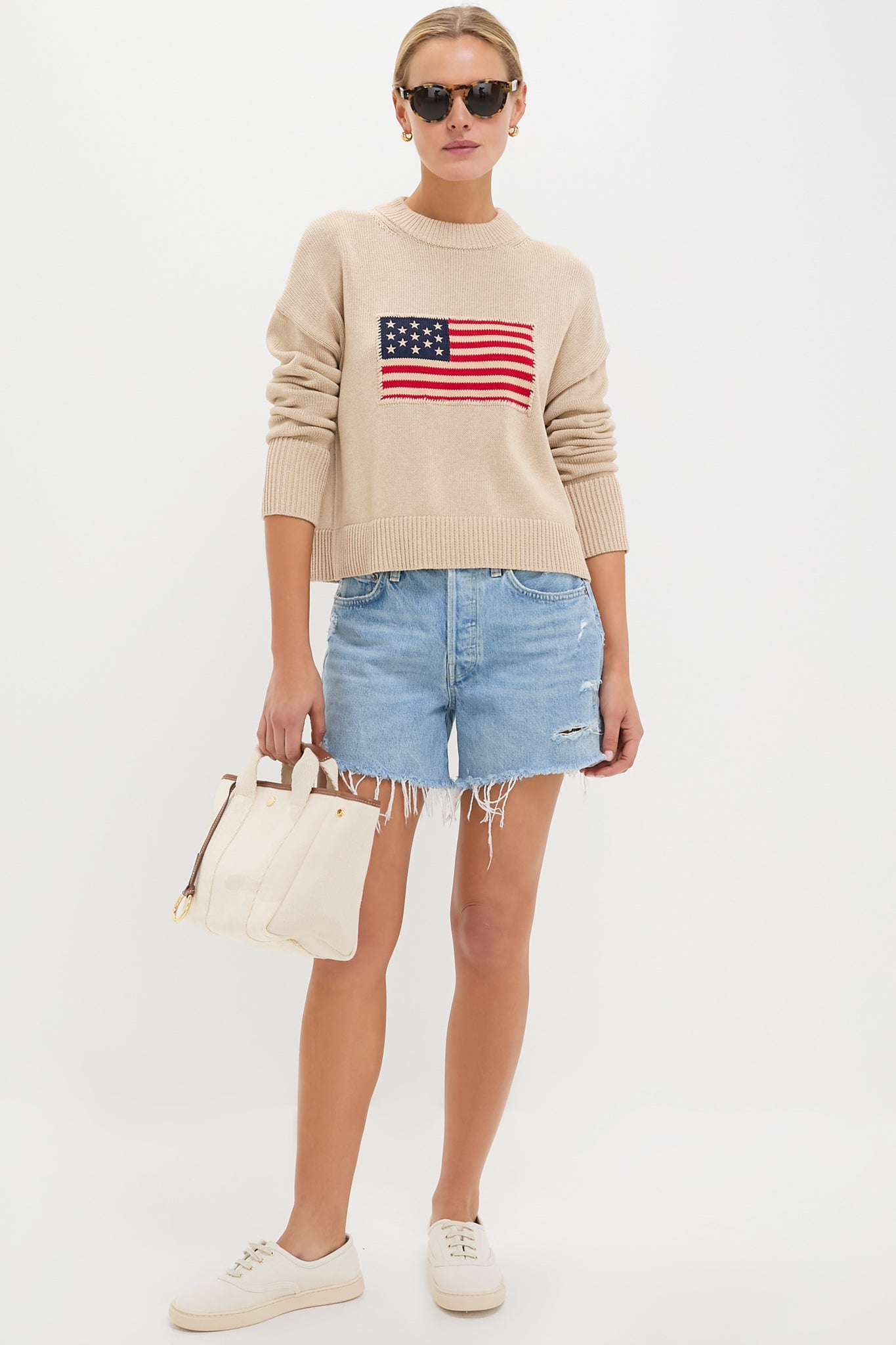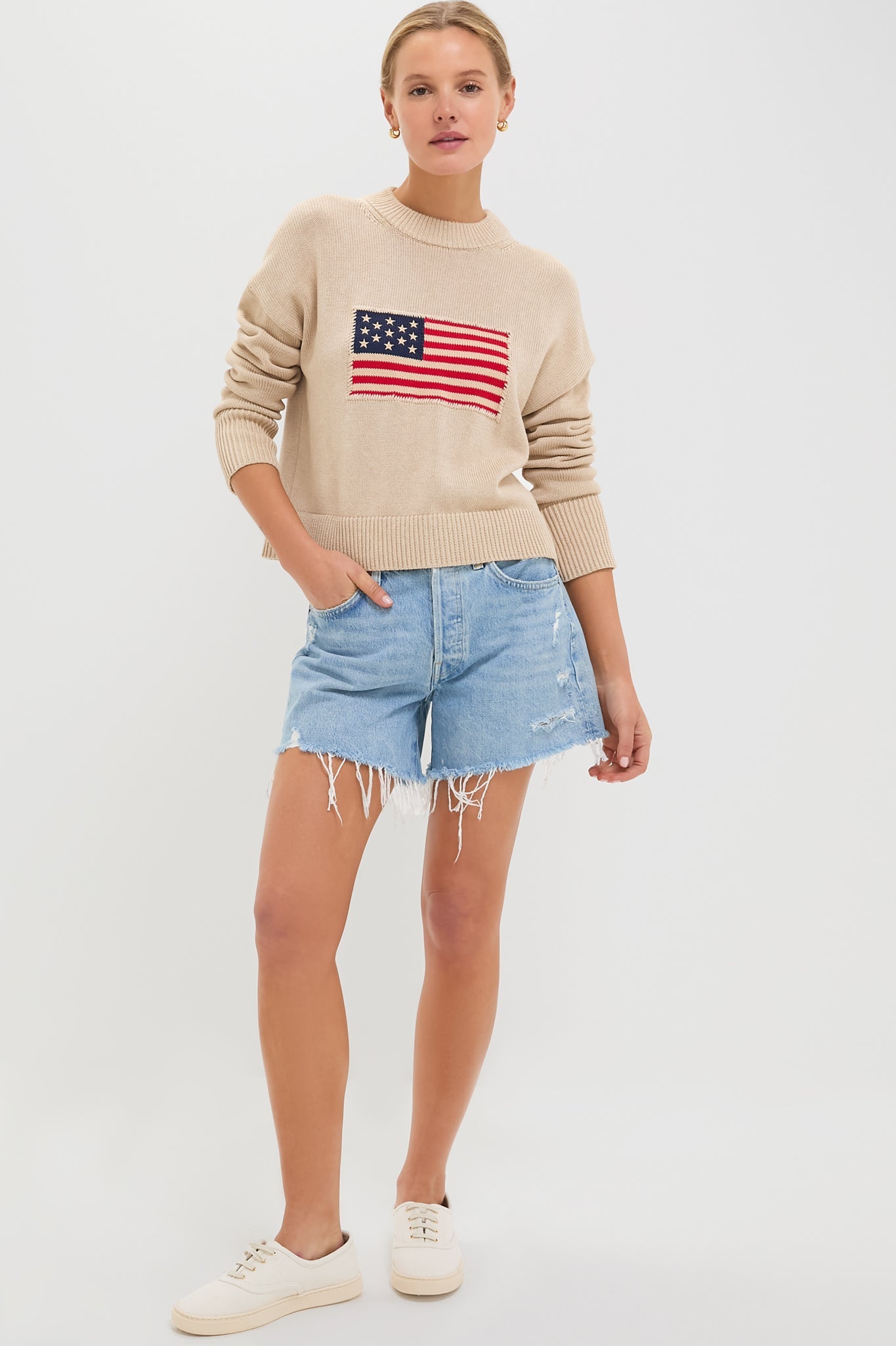A closet essential, the Cropped Americana Sweater evokes a nostalgic feeling while featuring modern design details for an updated take on the classic staple piece. This season-less, 100% cotton pullover will take you from backyard bonfires to apple picking with its boxy fit and intarsia flag front and center.