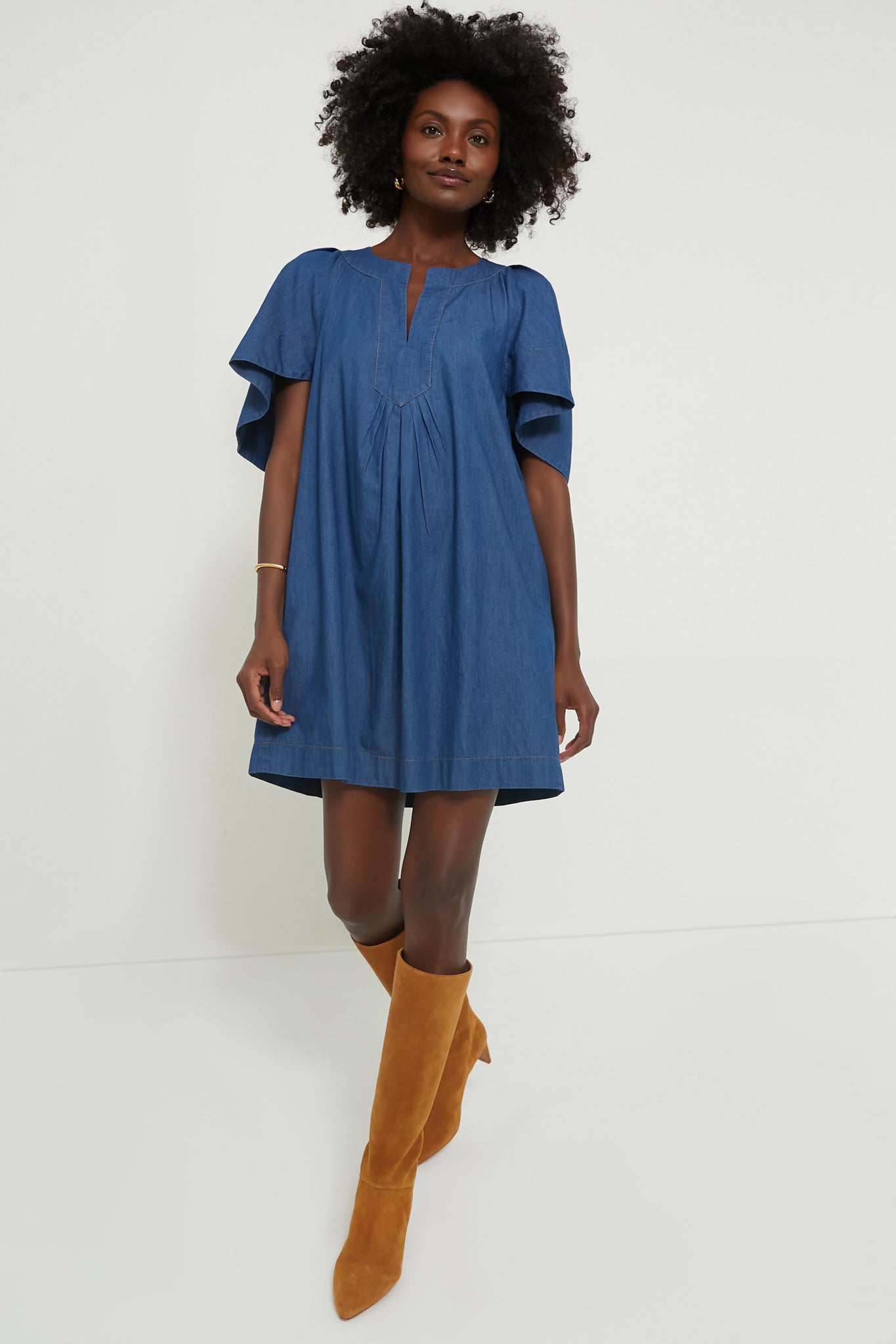 Our fan favorite flutter sleeve silhouette, updated in Denim...