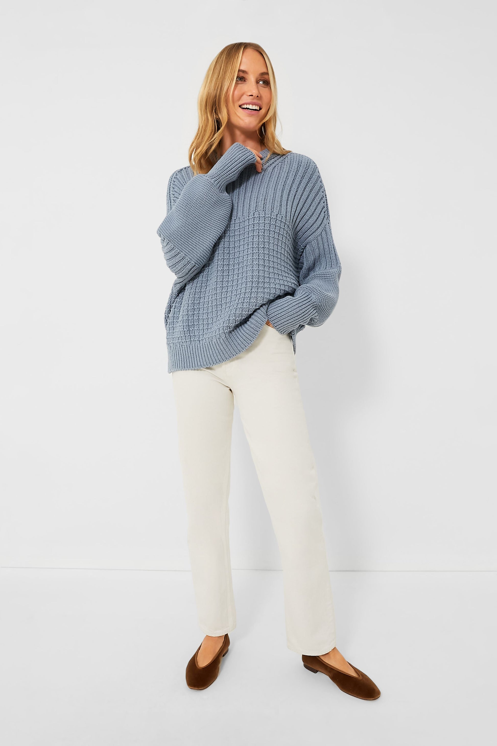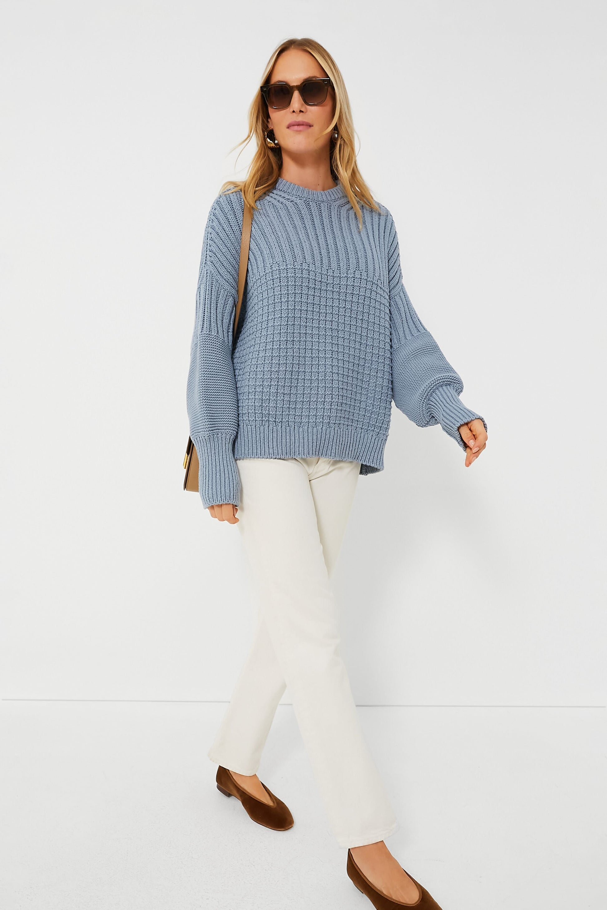 Specially made just for your closet, the Dusty Blue Delcia Sweater is crafted sustainably with care. We adore the unique half-and-half stitching that delivers the perfect touch of texture for a cozy feel. Style this fabulously boxy knit over a slip dress with boots for a dynamic desk to drinks look, or pair with your favorite denim and flats for a classic ensemble.