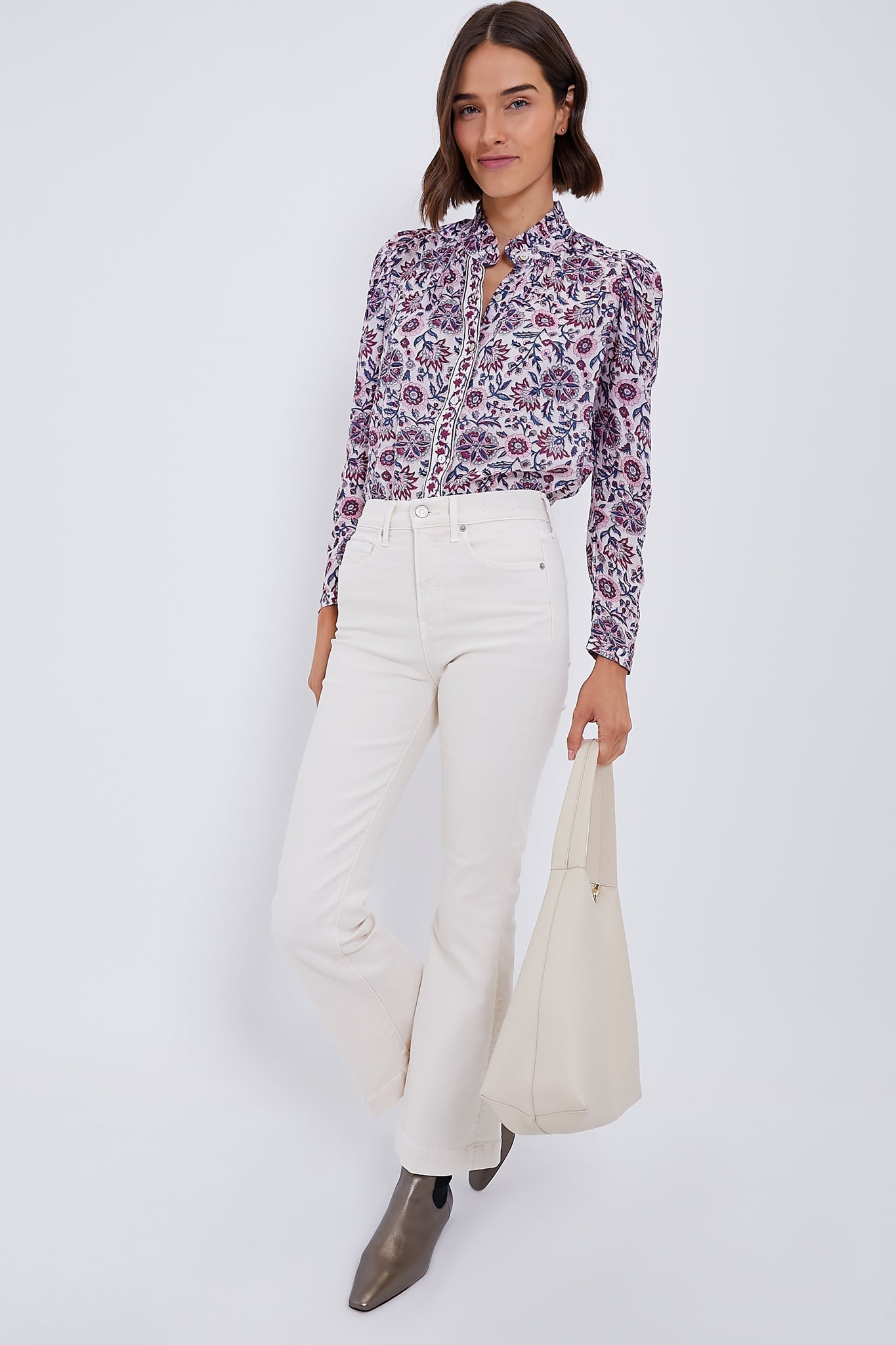 Cut from premium super-stretch Japanese denim, these flared bottoms offers an ecru denim wash and a high-rise fit for a fashion-forward finish. Pair this wear-forever jean with everything from tonal silk blouses to plain white tees for a chic and easy look.