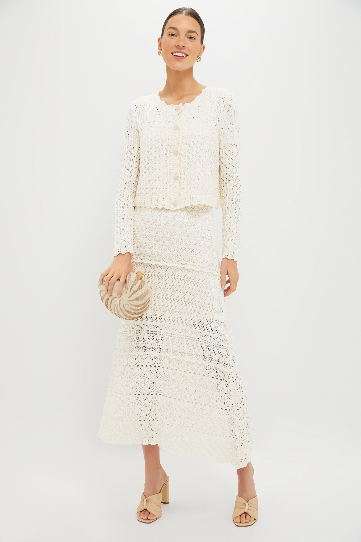 The Ecru Crochet Cardigan features a cropped silhouette, ric-rac detailing, and gorgeous crochet detailing throughout. This versatile sweater can be worn with jeans and flats or with the coordinating Ecru Crochet Cardigan, raffia heels, and a clutch!