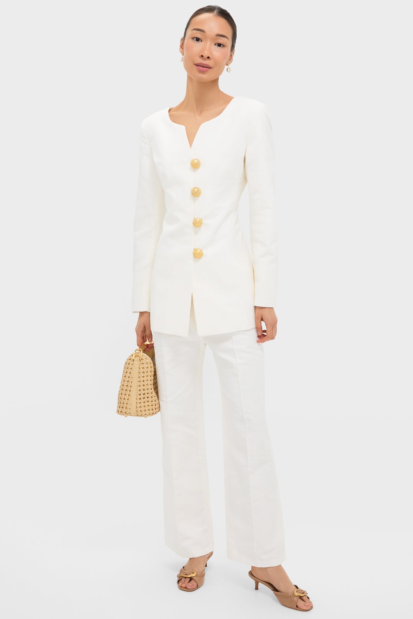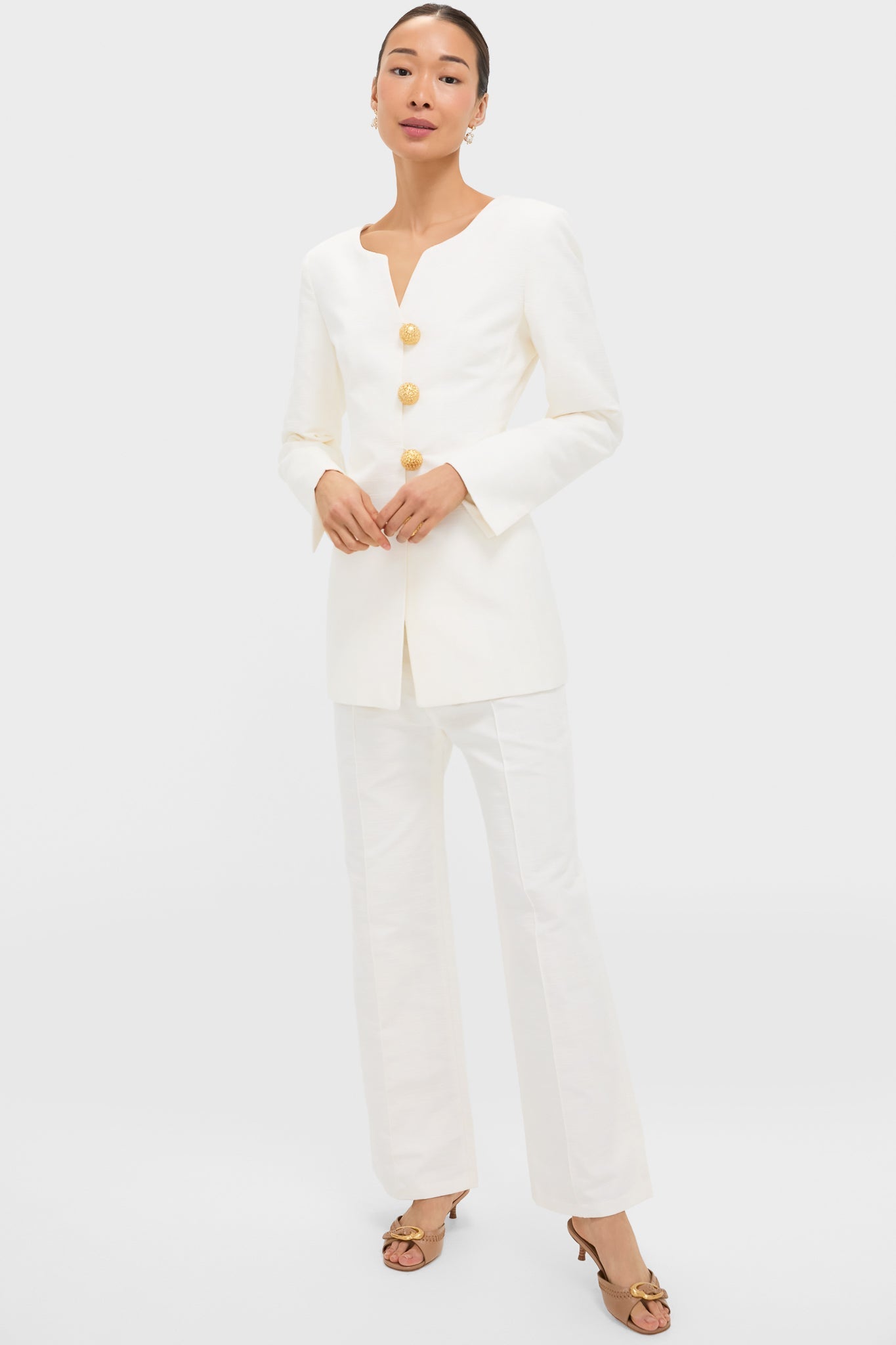 These trousers are inspired by minimalist and tailored design, with an elongated and refined silhouette. The Ecru Yoshitomo Textured Pantsare a fun and chic twist on the classic dress pant. Style with the matching Ecru Claude Textured Jacket for a fashionable matching set or with a fitted blouse and kitten heels for a formal work event.