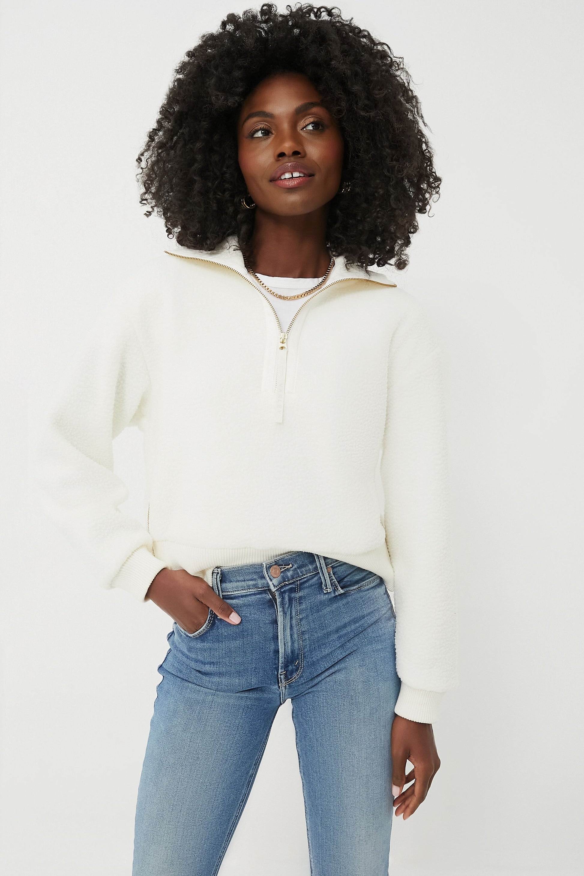 Immerse yourself in plush comfort in the Egret Roselle Half Zip Fleece, ensuring a cozy and warm experience no matter the weather. The neckline empowers you to adapt to changing temperatures with ease — unzip for a relaxed look, or zip up for added warmth and sophistication. Pair it with comfortable leggings or joggers, and throw on a knit beanie for a laid-back vibe or combine it with your favorite jeans and ankle boots for a relaxed yet stylish look.