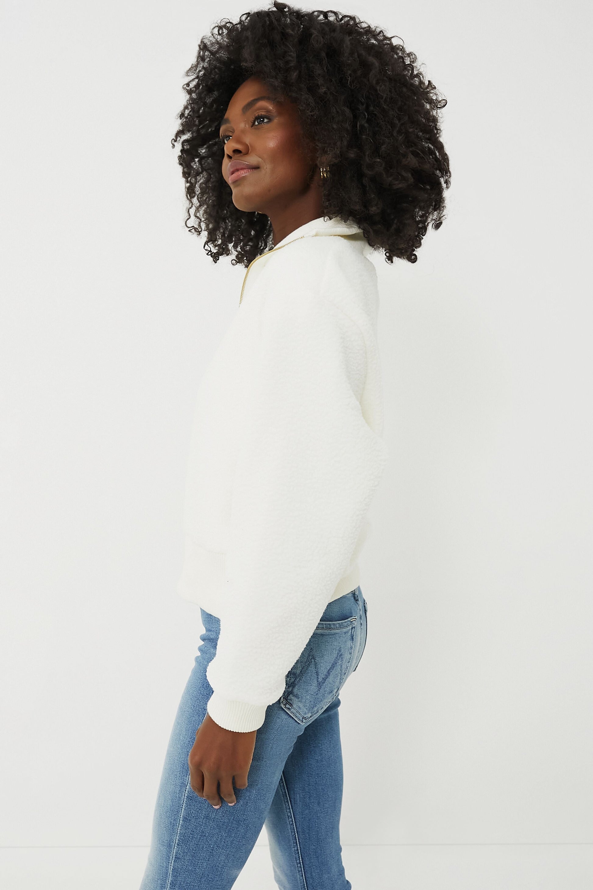 - Oversized collar with quarter zip closure