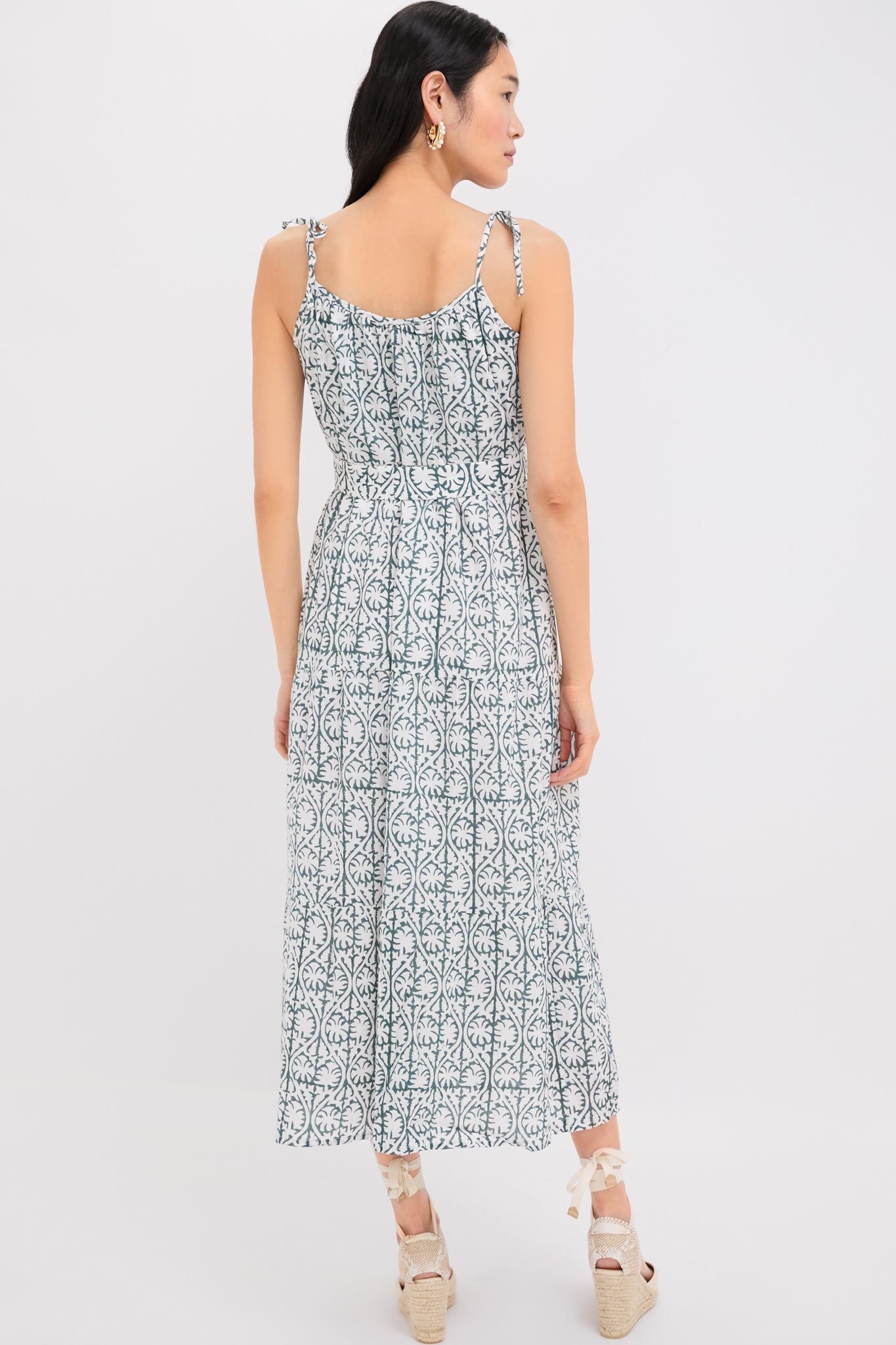 The Etoile Vine Forest Organic India Button Front Sundress features an easy, breezy fit. With a shirred, scoop neckline, high gathered waist, and self-tie belt, this dress can be thrown on with sandals and a tote for everyday wear, or dressed up with wedges and a clutch.