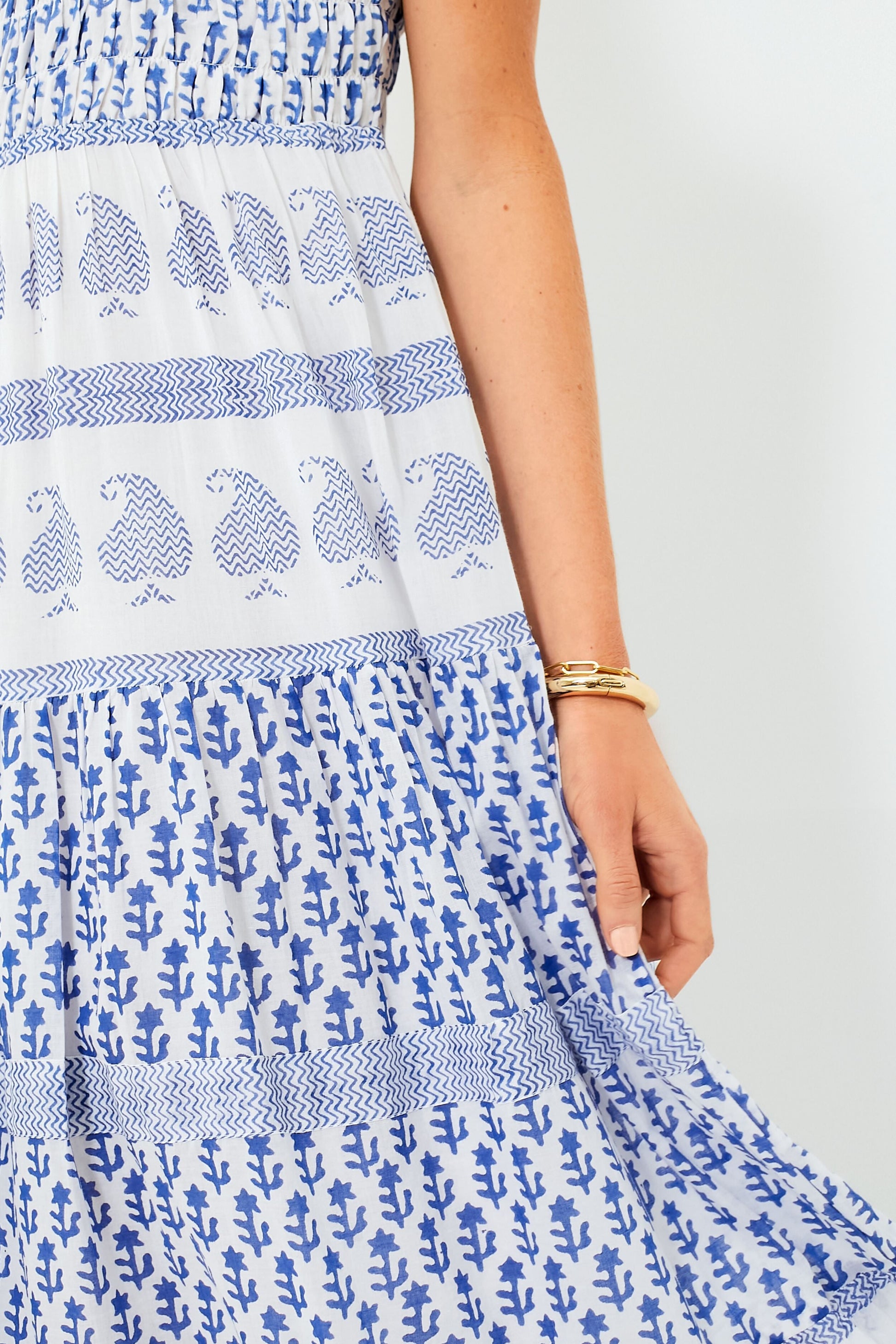 The ultimate warm-weather staple, and a best-selling style for good reason, the Exclusive Flora Blue Dress gets its charm from breezy cotton and a beachy block-print. With short flutter sleeves, a smocked bodice, and a tiered skirt that is ready for its moment in the sun, this boho-chic maxi is everything you've been searching for to complete your closet. Throw this effortless number on, then add some dancing shoes, grab a cocktail, and you’re ready for a night of fun with friends!