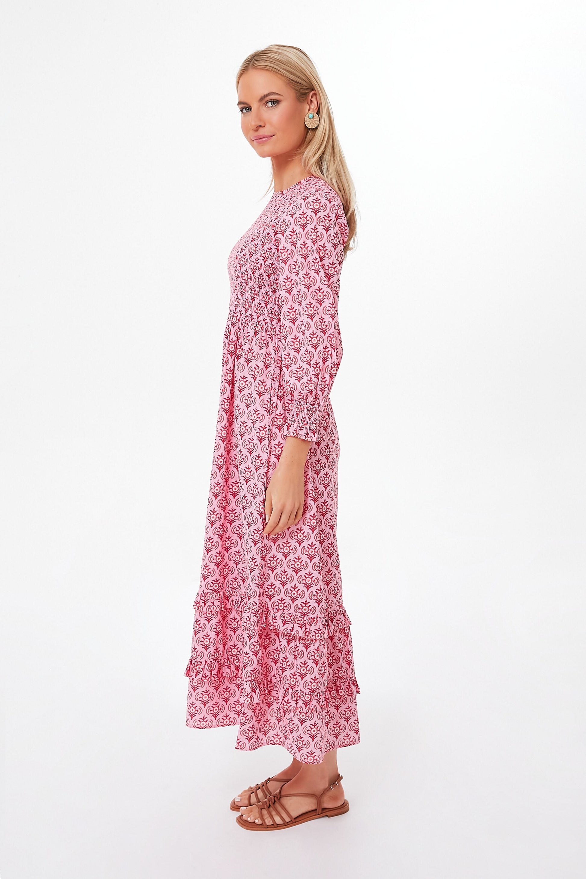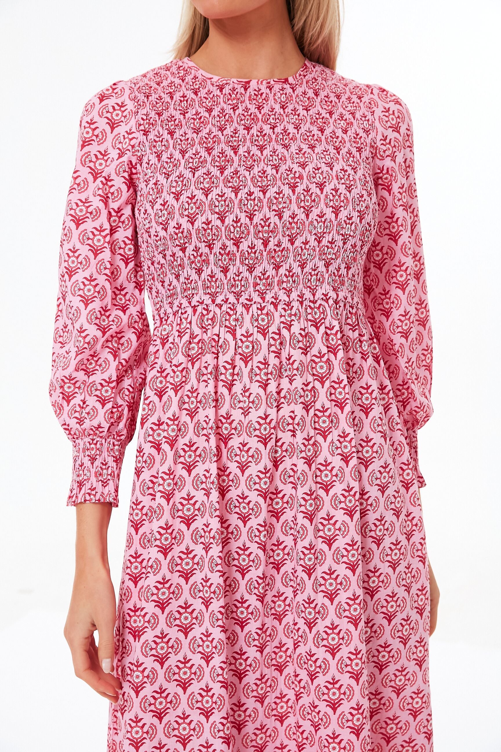 A Tuckernuck exclusive that is a favorite season after season, the Mogul Rose Isabel Dress brings a fresh, rosy pink print to a well-loved silhouette. A classic round neckline, flowing blouson sleeves, and a flattering smocked bodice ensure this midi is as comfortable as it is covetable. When styled with strappy sandals and raffia accessories, you have an ultra-chic look that works for vacations and celebrations, or wear it on a random Tuesday with white sneakers and sunnies.