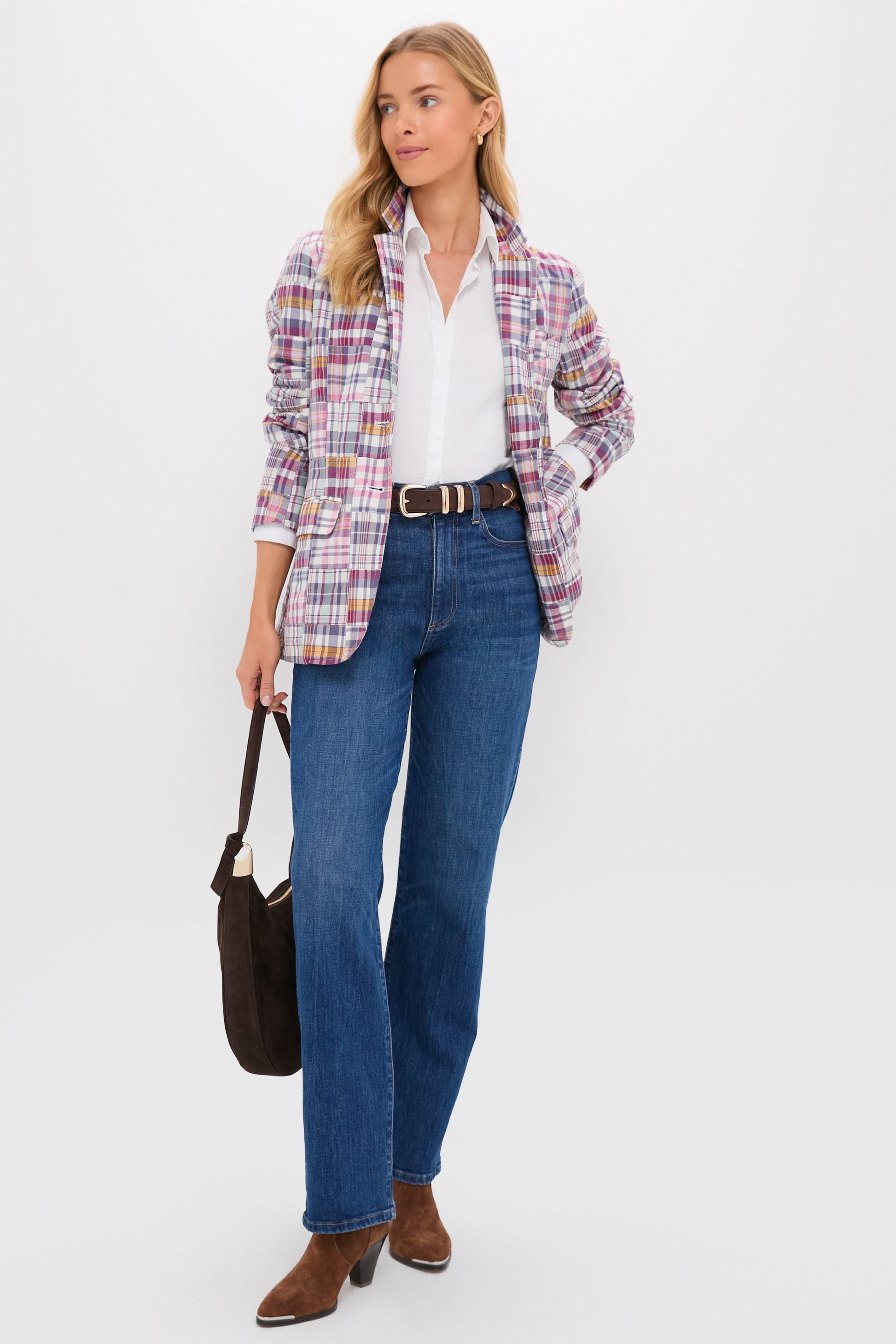 A relaxed patchwork blazer that adds character to any everyday look.