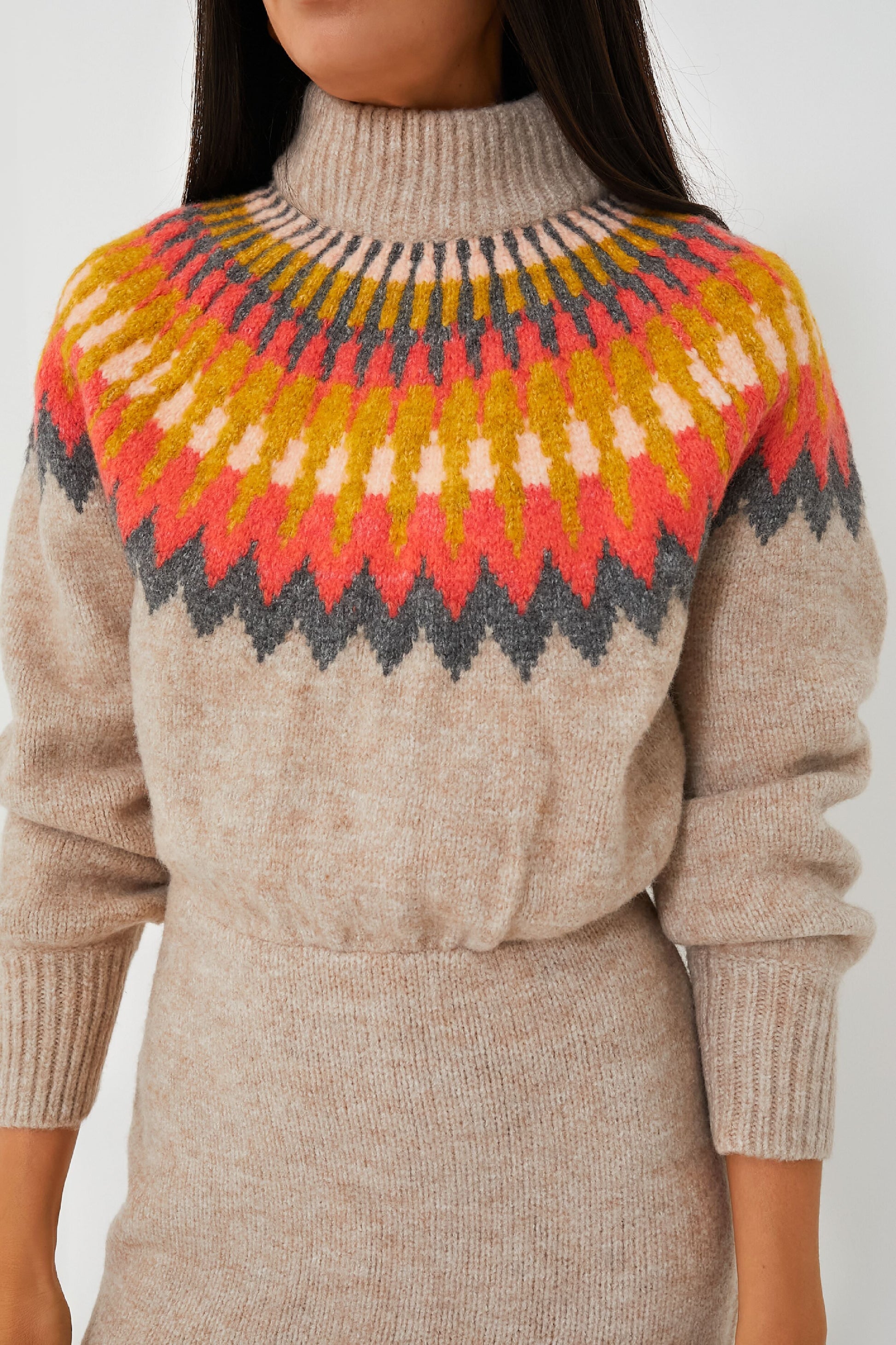 Love a good sweater but looking for an extra bit of polish? The Fall Multi Boshi Dress combines all the cozy aspects of a go-to knit with a touch of sleekness to create a special silhouette you'll return to time and time again. A ribbed turtleneck and a multicolor Fair Isle motif across the chest and shoulders gives off fireside relaxation energy, while a fitted skirt and a side slit hem brings a sultry element suited for date night. Pair with boots and gold jewelry for chicest results.