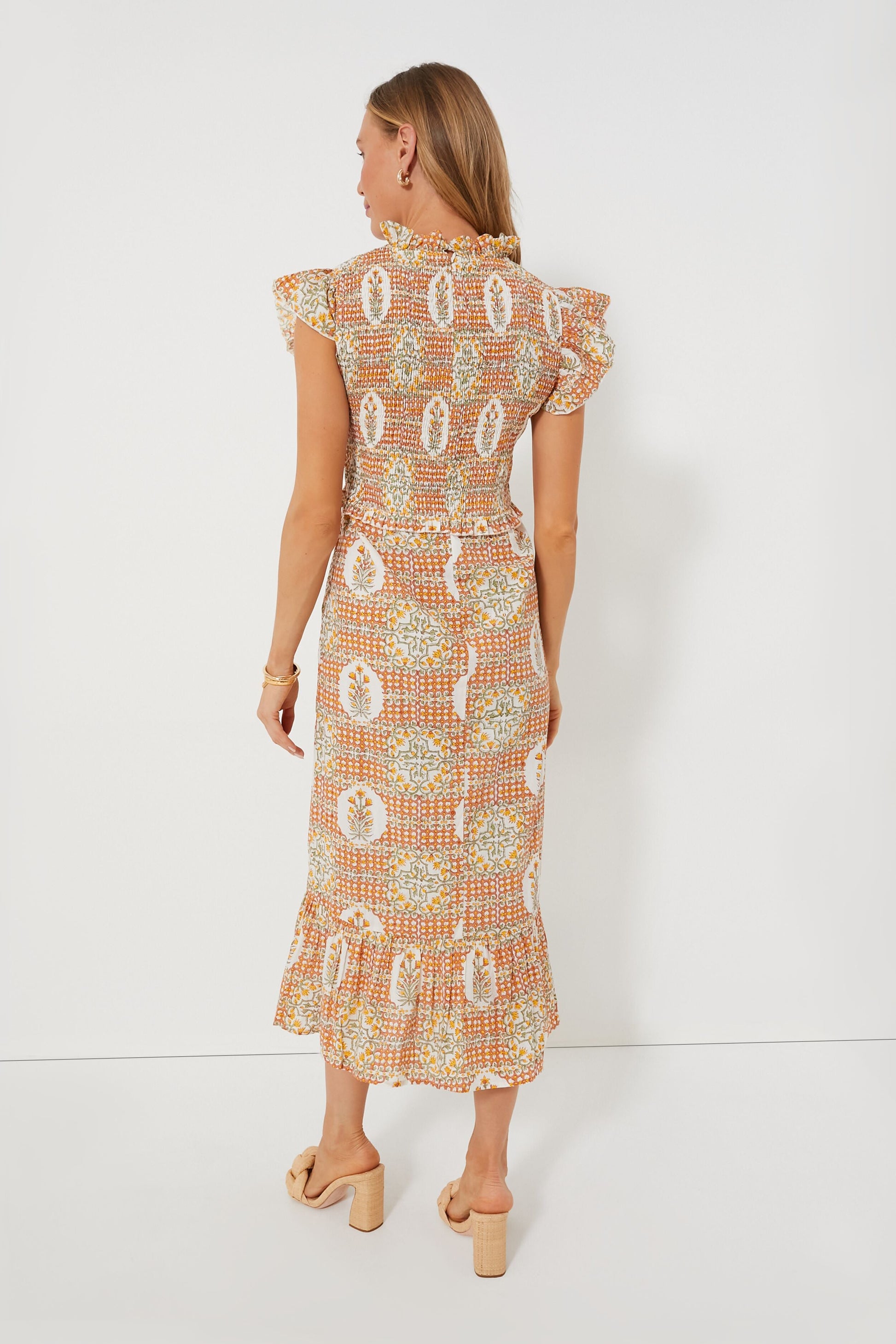 We are loving all the floral prints this season, and the Medallion Blakely Midi Dress is one of our favorites! This beauty is full of fun details like a ruffled collar, short flutter sleeves, an on-trend smocked bodice that is done by hand, so it is sure to become a go-to in your wardrobe. Effortless and airy, style this feminine silhouette with your favorite sandals, a light sweater, and tote for a transitional look for any season.