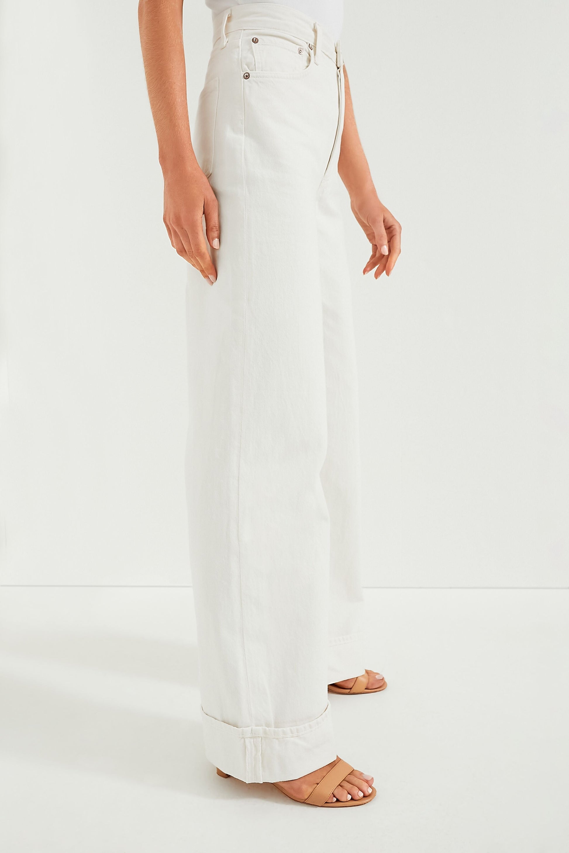 Made with zero-stretch organic cotton with a subtle drape, the Fortune Cookie Dame Jean ensures all day comfort and wearability. These classic bottoms feature a waist-accentuating high-rise, a relaxed, wide leg, and an untacked cuff. We are styling these jeans with sneakers and a graphic tee for an urban look, or pair with a bodysuit, loafers, and a blazer for a chic polished ensemble.