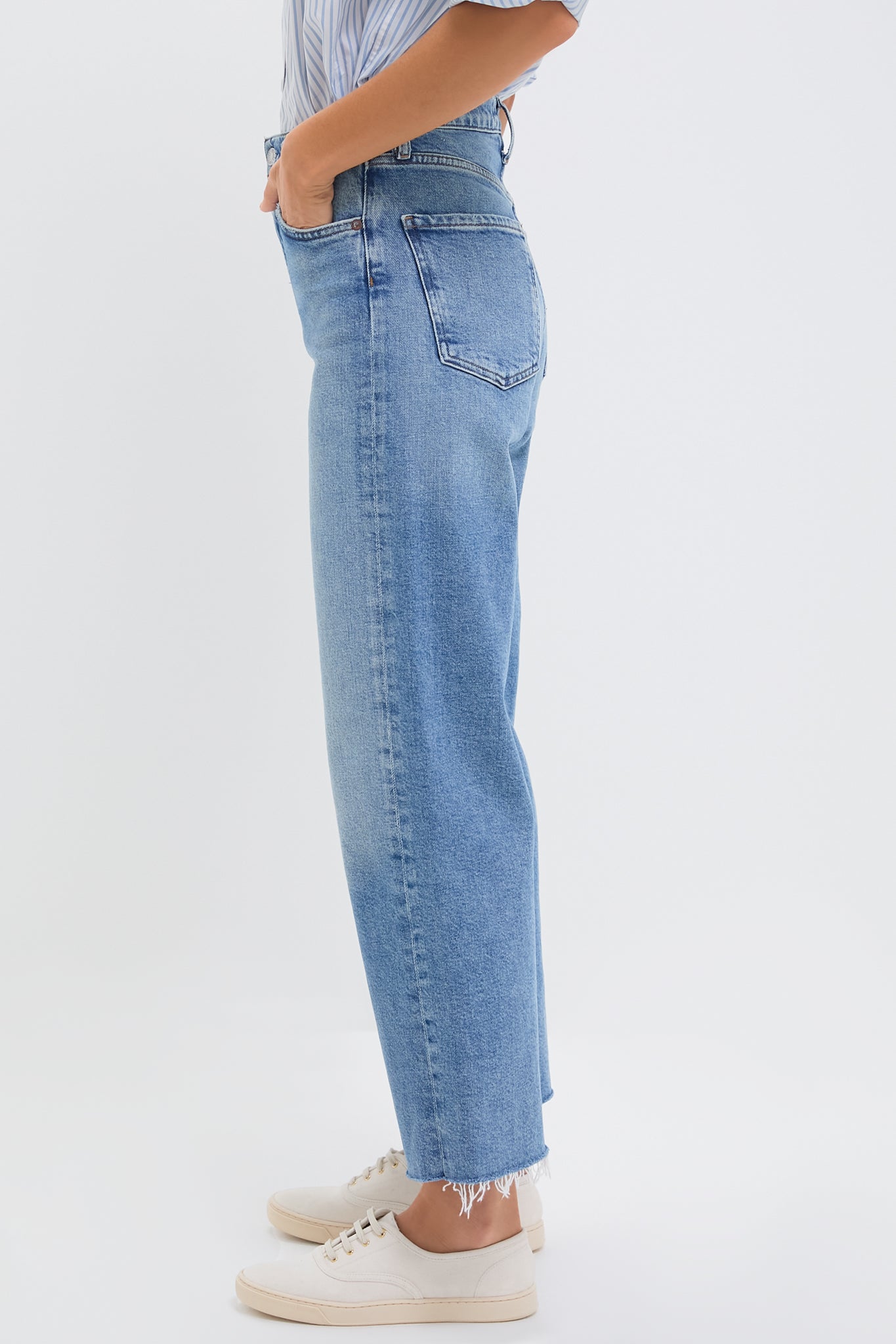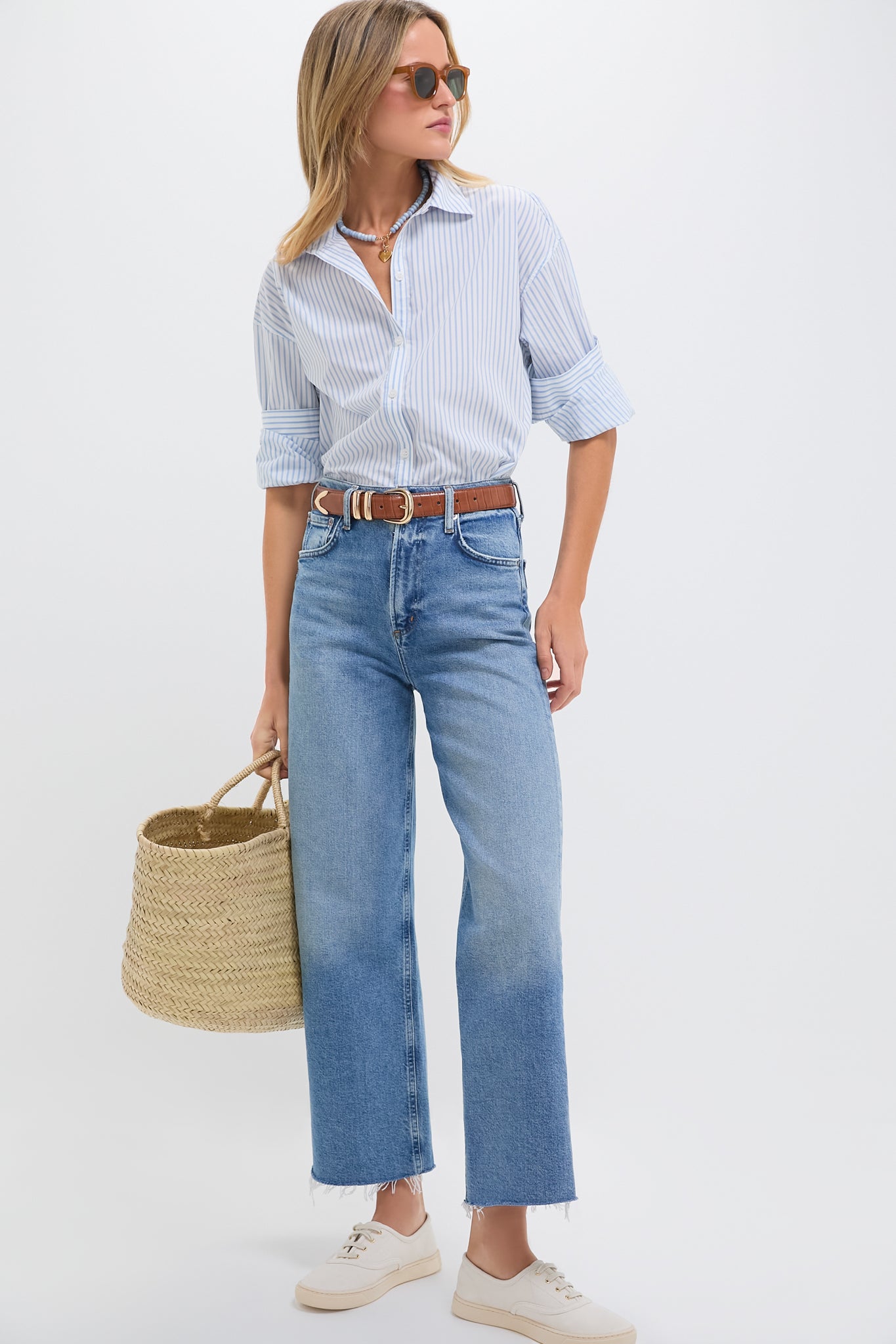 The Forum Ren Jean is ideal for everyday wear. With a high-rise, wide leg, and raw hem, these jeans are perfect for casual wear. We styled them with a button down, sneakers, and a tote for put together weekend look.