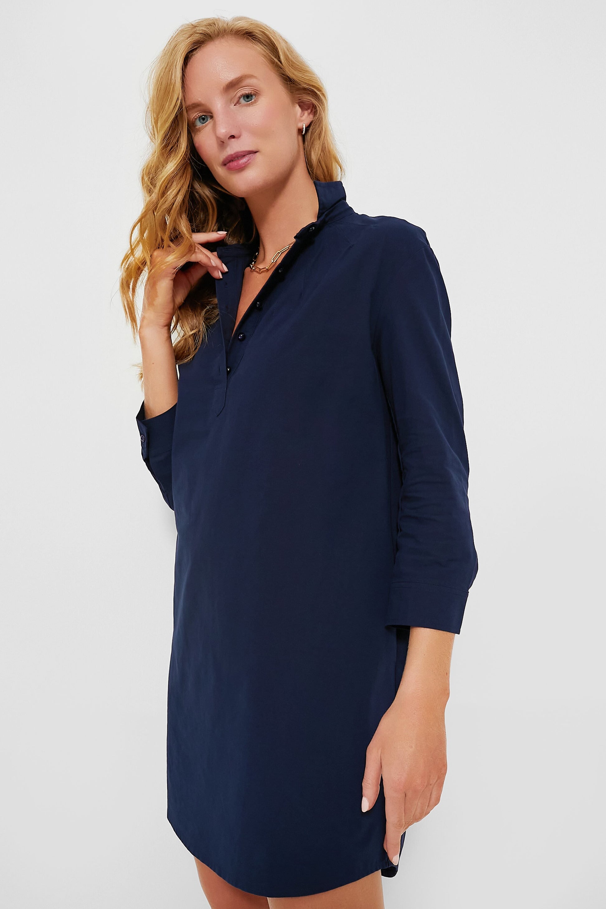 The Polly Dress is the ultimate closet staple! The three-quarter length sleeves and above the knee (but not too short!) hemline allow this silhouette to be worn almost anywhere. In classic navy that's perfect for year-round wear, we are wearing this easy mini with sandals and a sunhat for the day and dressing it up with heels and a statement bag for dinner with friends. Bonus: it has pockets!