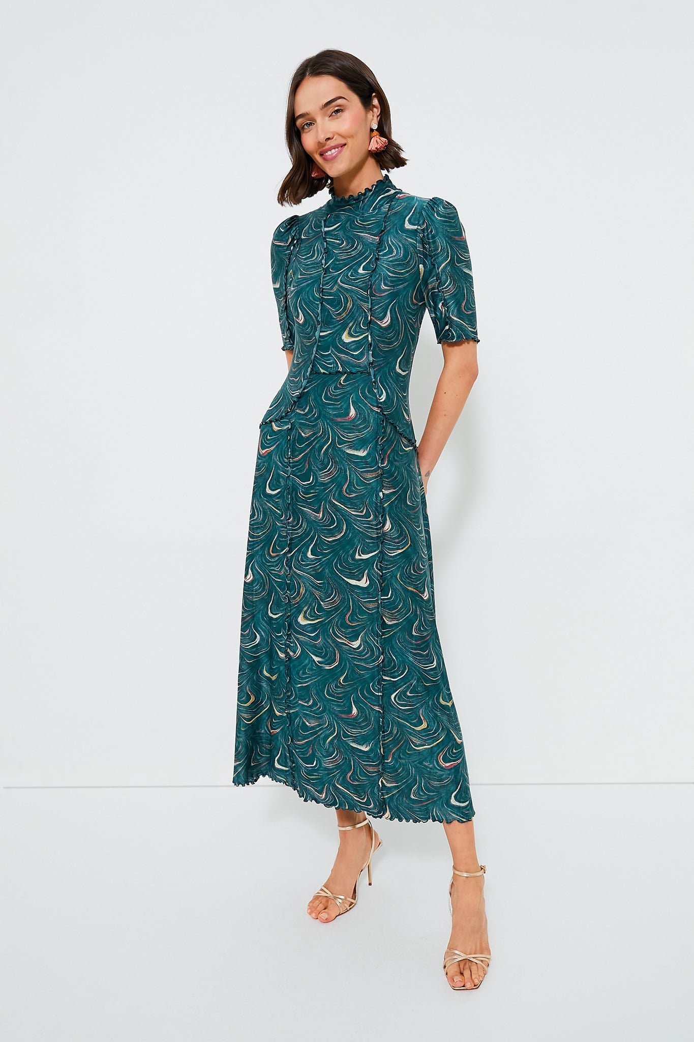 - Ballerina-length sleeves with ruffle hem
